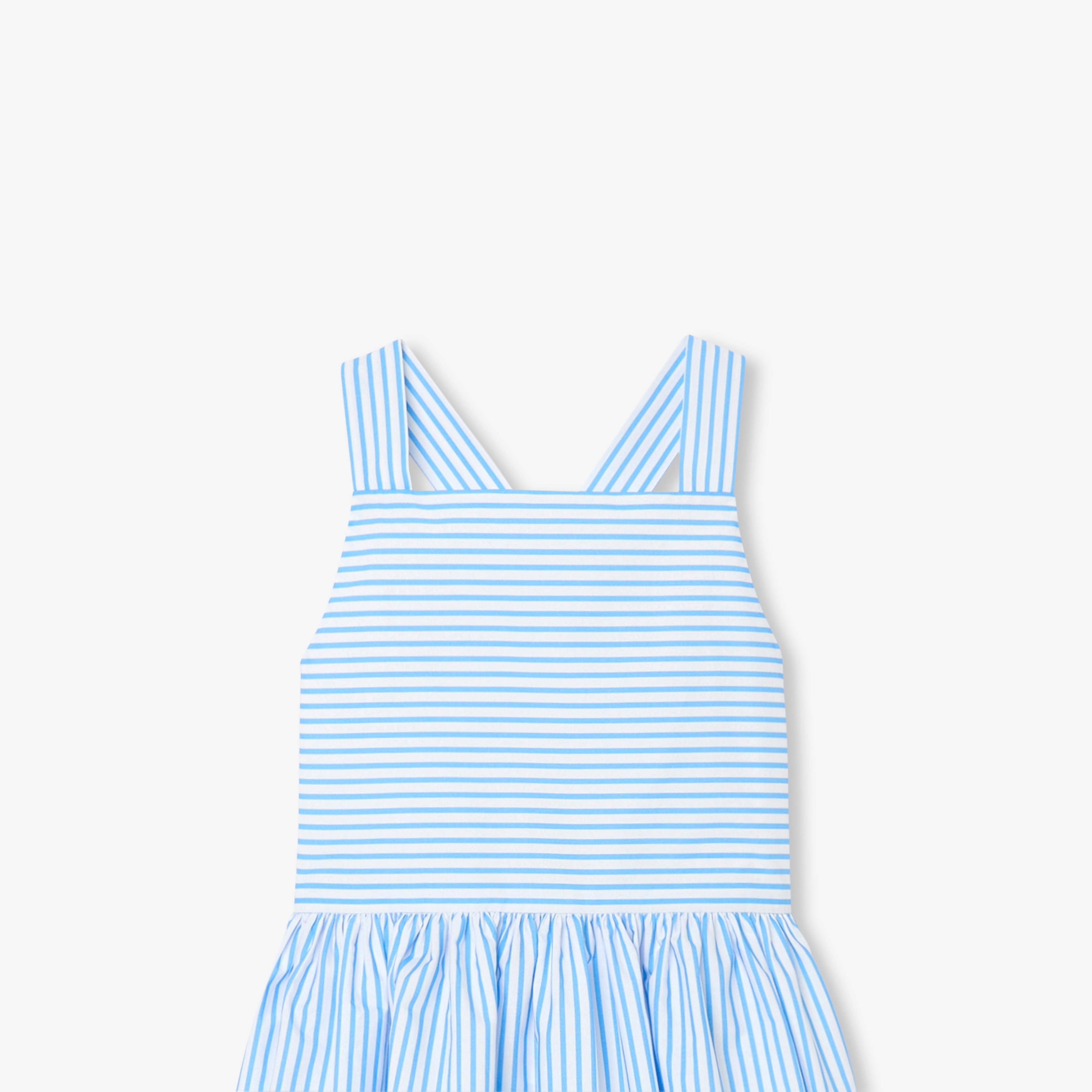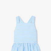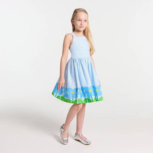 La collezione primavera-estate offre un viaggio nel cuore di un universo floreale, pop e frizzante con questo incantevole abito bambina. Ornato di sottili spalline incrociate sul retro, il tessuto in popeline a righe è dinamizzato da maxi fiori applicati sul fondo grazie a un'inedita tecnica di stampa. Autentico gioiello di know-how, da indossare nelle belle giornate estive, non può mancare nel guardaroba delle bambine.