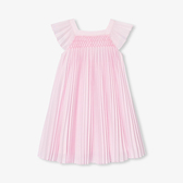 Senso innato dell'eleganza e dettagli lavorati, l'abito da cerimonia bambina svela tutto il suo stile per l'estate. Ultra contemporaneo con le sue pieghe permanenti ricamate sullo scollo e le maniche con volant, disponibile in rosa cipria o fucsia, abbina questo capo sartoriale a un cerchietto in taffetà e a graziosi sandali per comporre un outfit da cerimonia.