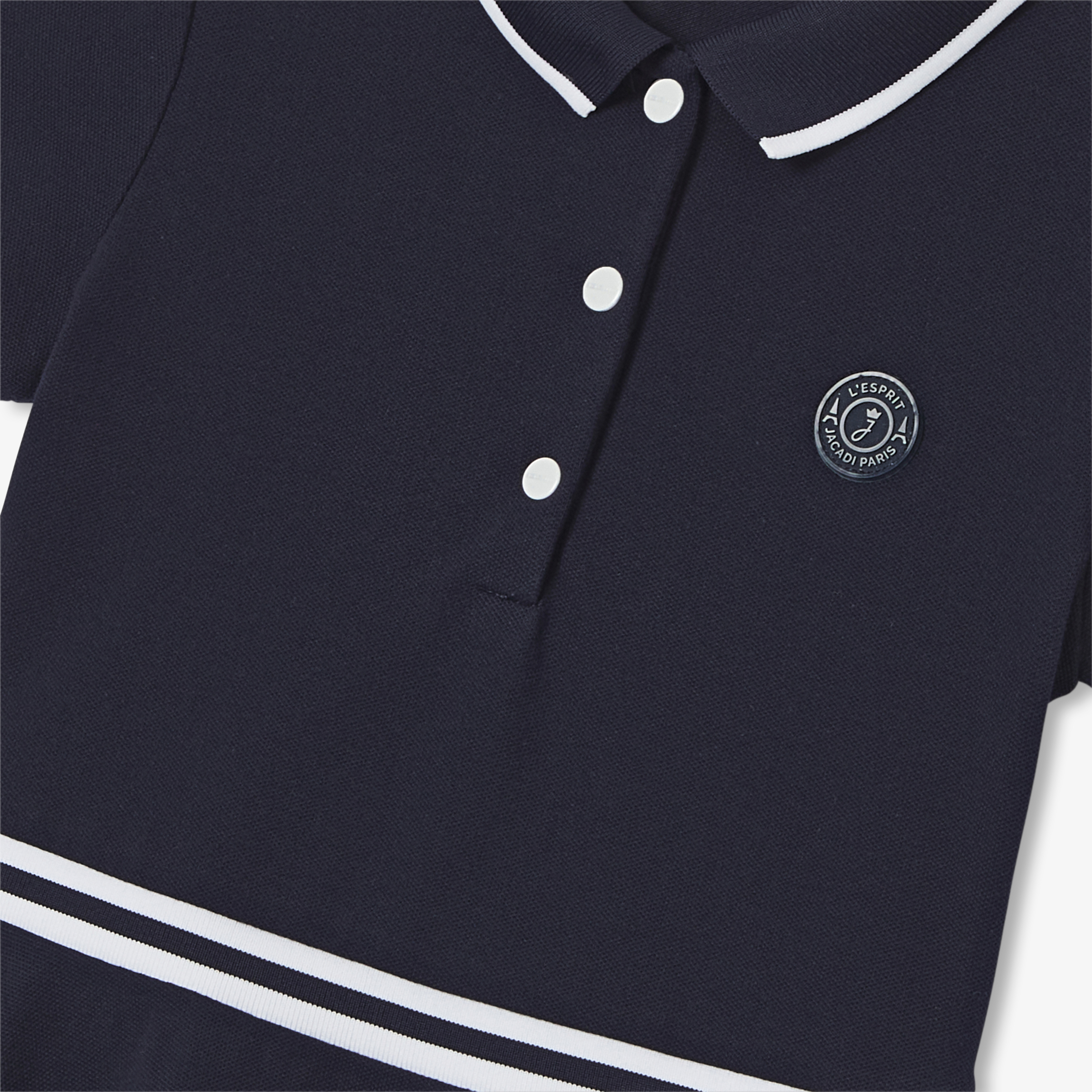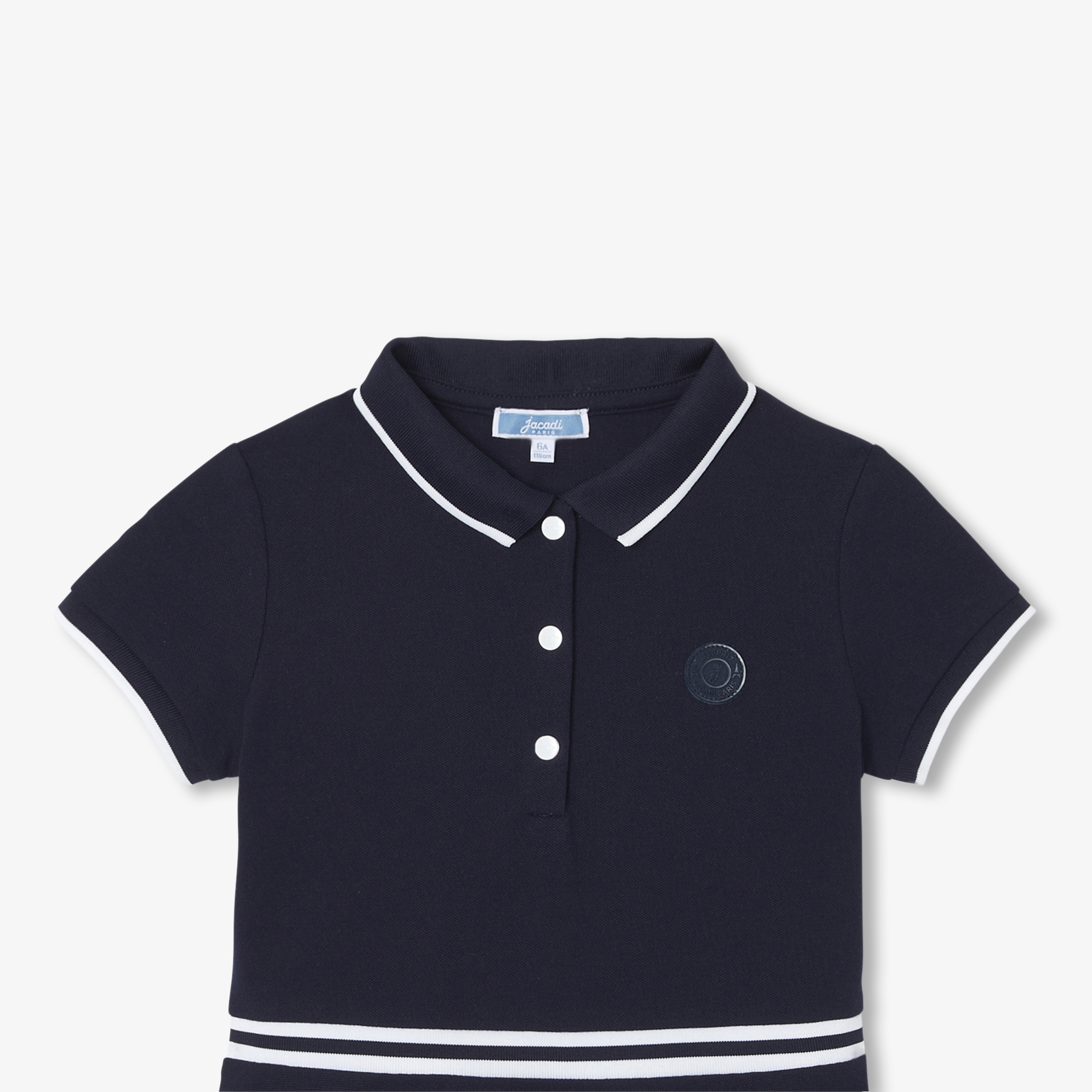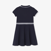 Ispirato all'abito da tennis con il suo colletto stile polo e i dettagli a contrasto, quest'abito bambina in maglia piqué attraverserà la stagione con eleganza. In versione color block o tinta unita, indossato con sneakers o sandali, accompagnerà le bambine fino al ritorno a scuola.