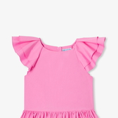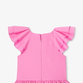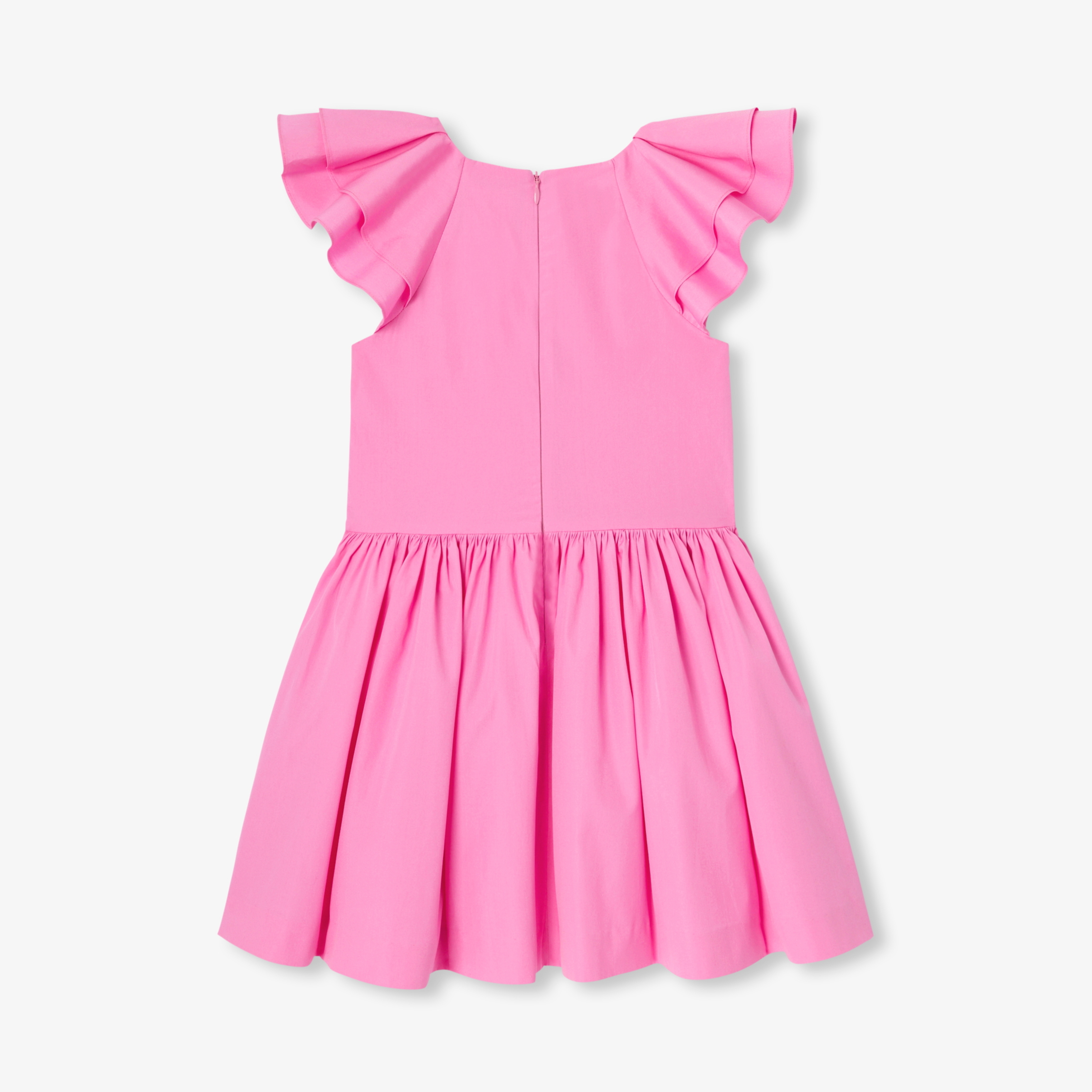 Maniche con volant oversize e colore intenso, quest'abito bambina in stile sartoriale annuncia una bella stagione. In popeline di cotone, arricciato in vita e foderato, potrà essere abbinato a un cardigan e a graziose scarpe con cinturino a T per la primavera e a sandali in piena estate, e sarà una bella idea regalo.