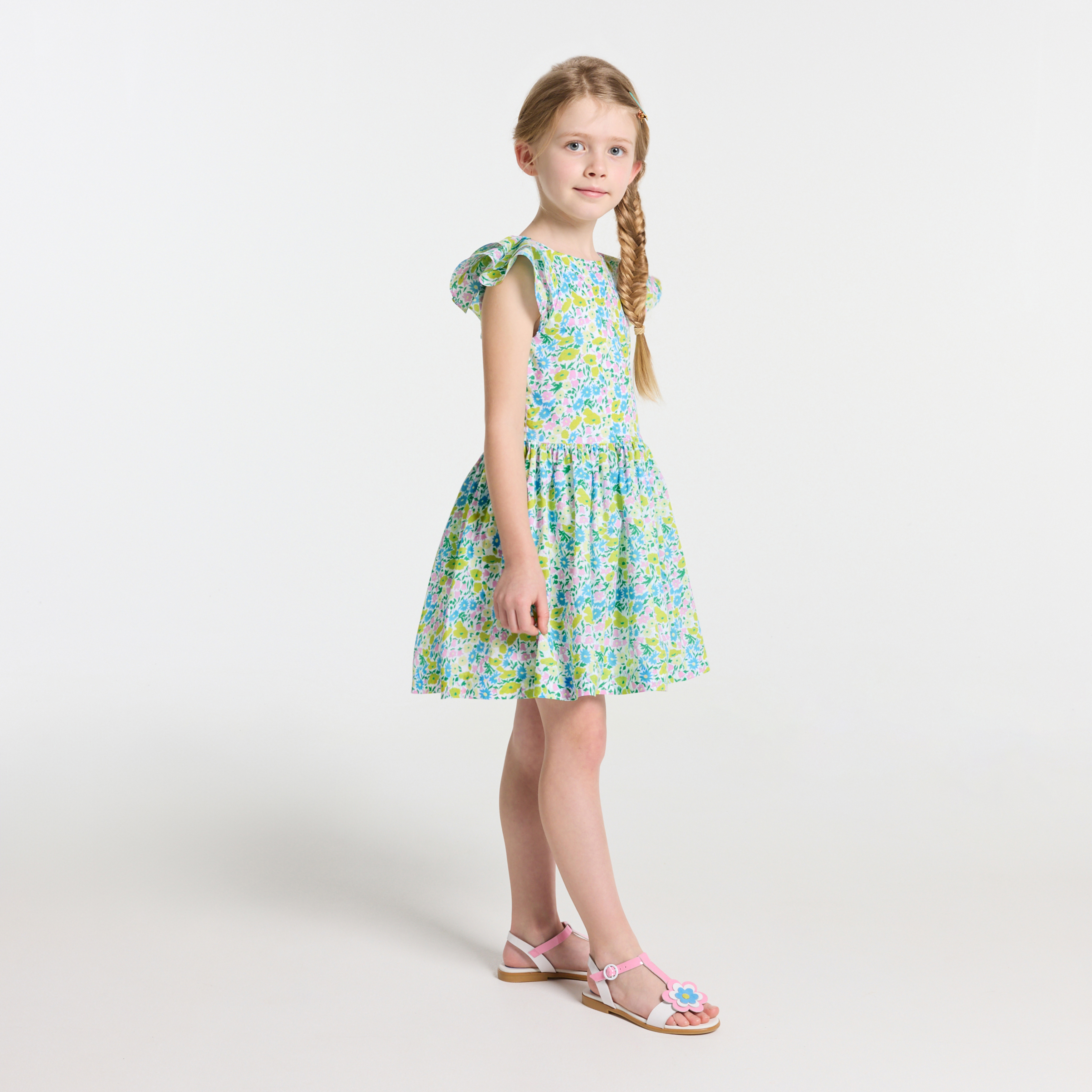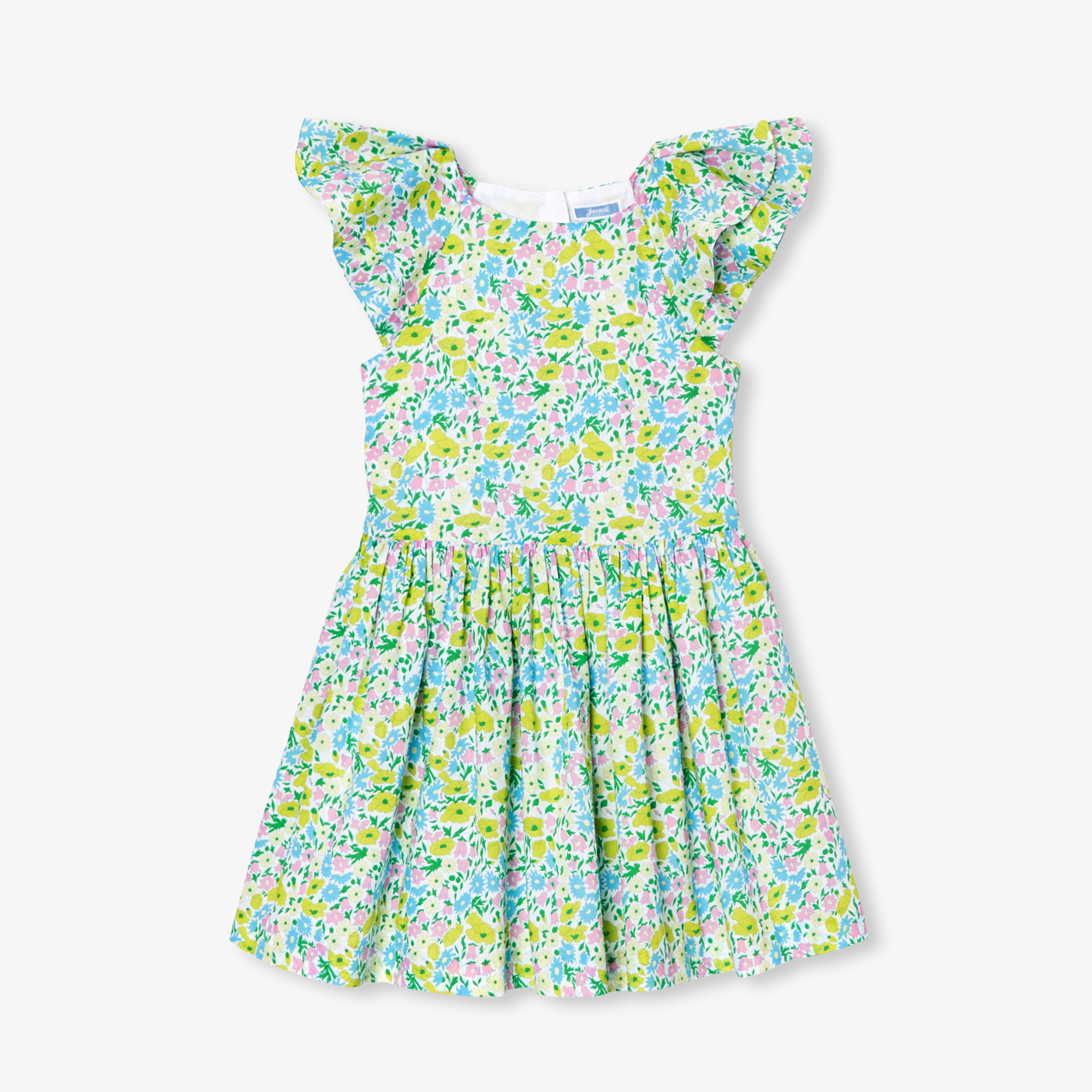 Romantico e dinamico, il guardaroba estivo delle bambine svela capi dall'eleganza lavorata come questo incantevole abito bambina. In tessuto Liberty morbido e leggero, maniche con volant, vita arricciata e fodera strutturano questo capo dinamico, da indossare durante tutta la stagione, per piccoli e grandi eventi.