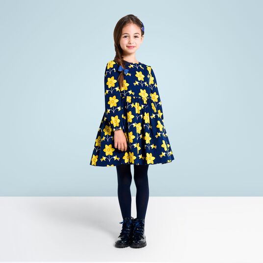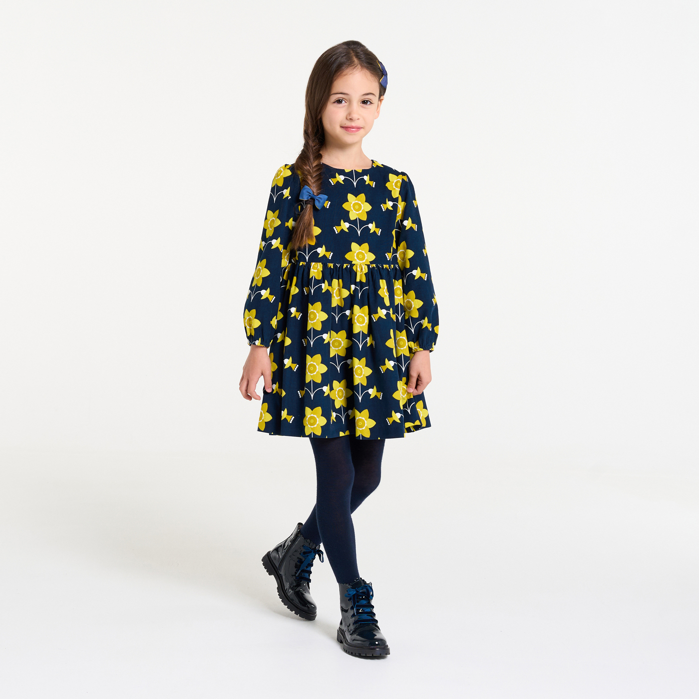 Questo abito bambina in velluto millerighe cattura tutta l'eleganza e il know-how di Jacadi. Caratterizzato da un esclusivo motivo di narcisi dai colori vivaci, è arricchito da un'arricciatura in vita. Foderato e facile da infilare, da abbinare a collant colorati e a un cappotto inglese per una look city e preppy-chic.