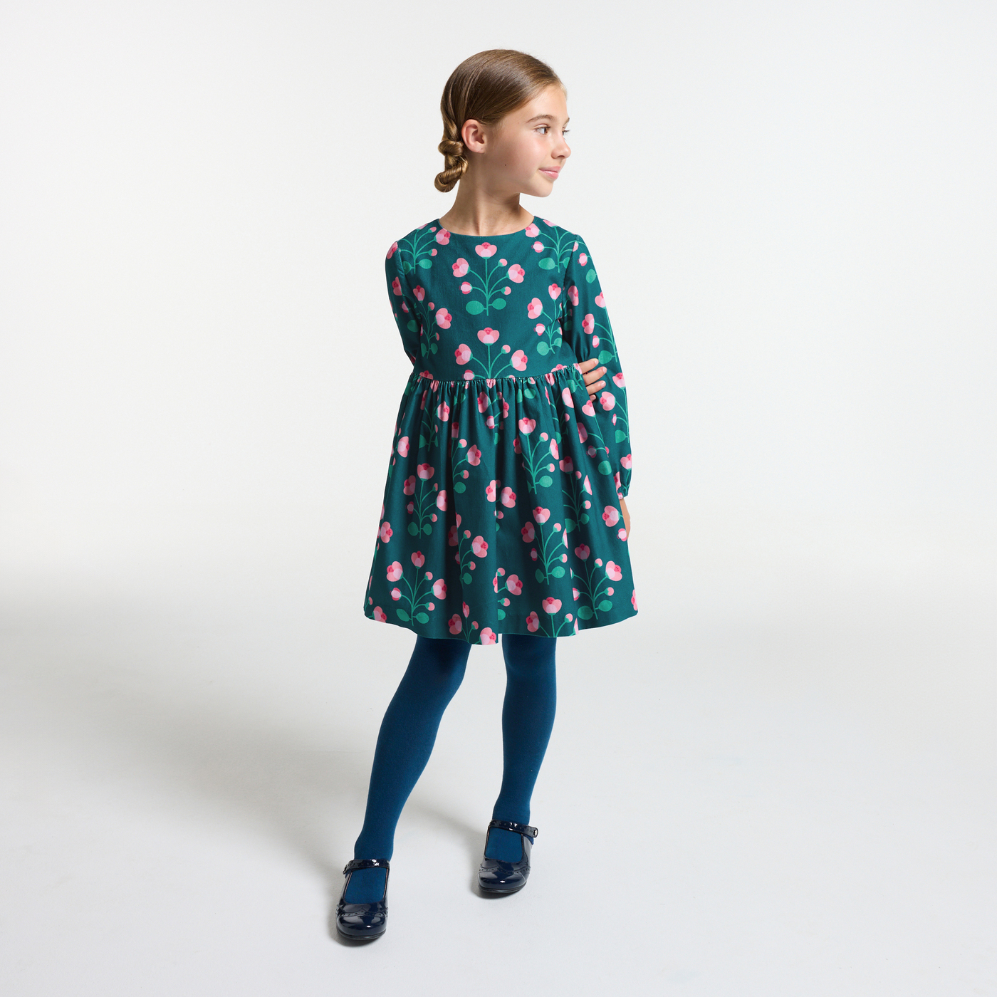 Un'ode moderna all'autenticità, Jacadi ha creato un abito bambina dall'eleganza rétro. In velluto millerighe e foderato in cotone, il motivo floreale art nouveau conferisce a questo capo un fascino unico. Indossato con graziosi collant e scarpe con cinturino a T, la stagione si preannuncia elegante e grafica.