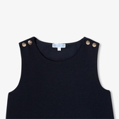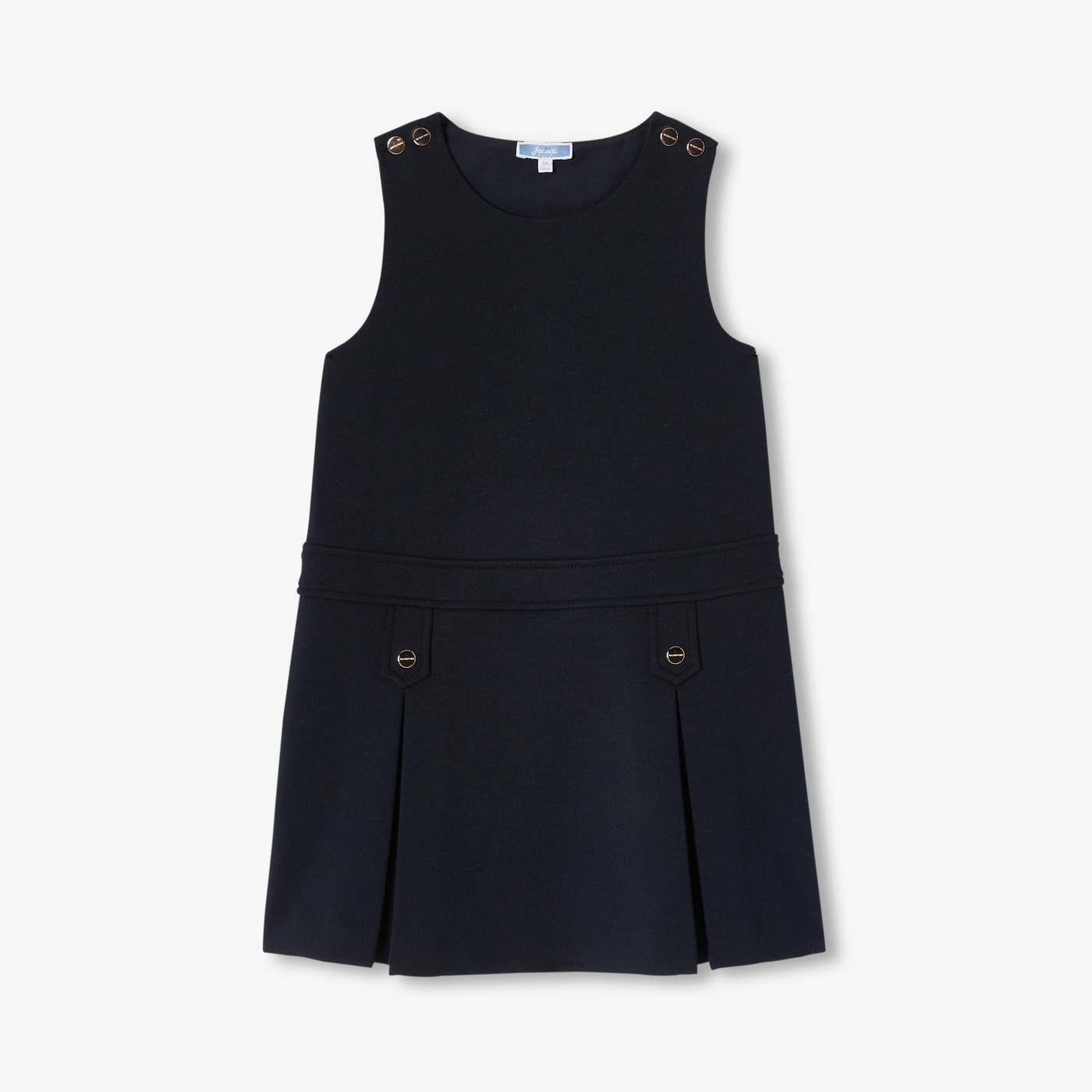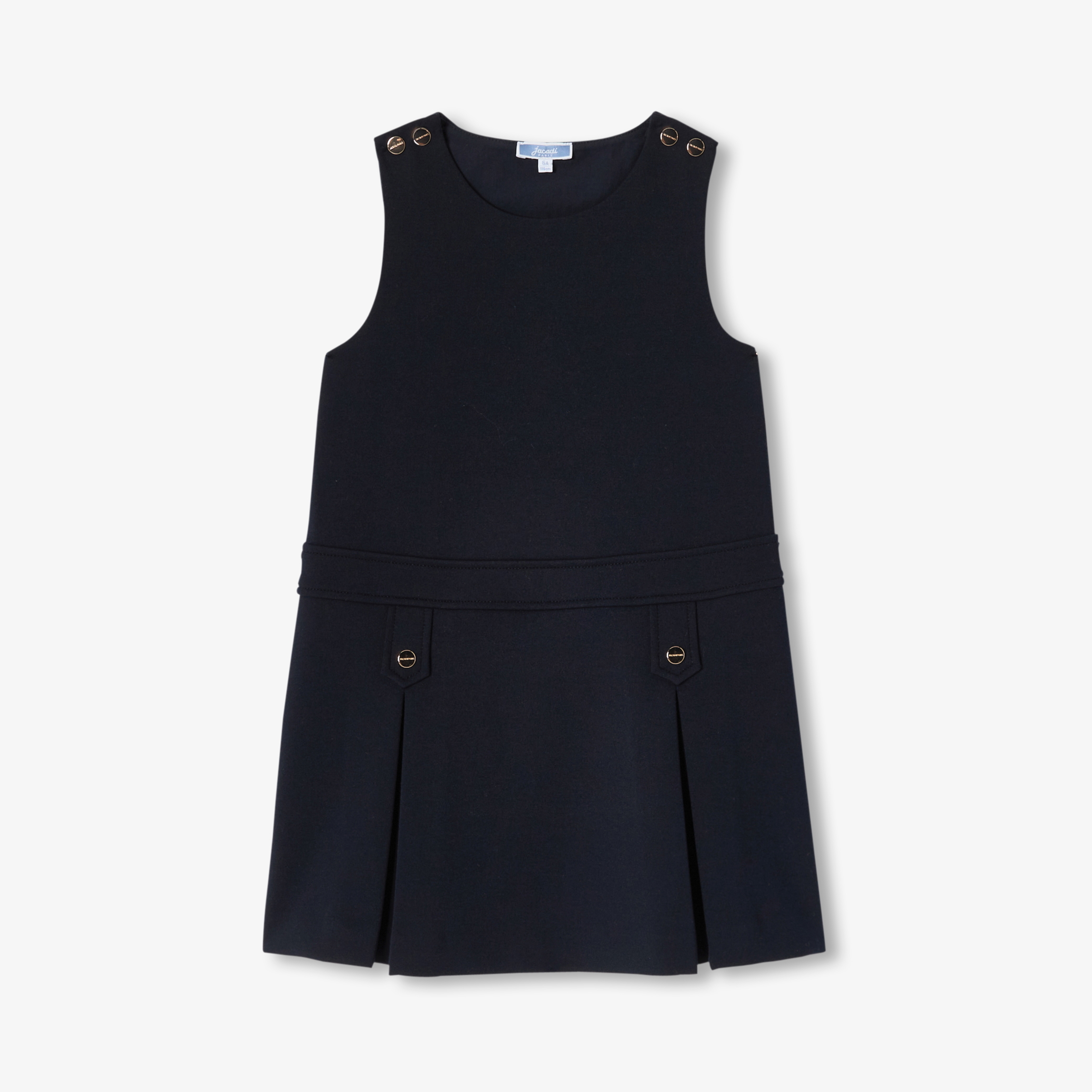 In stile sartoriale e ricco di fascino, l'abito scamiciato bambina sfoggia un look anni '60. In tessuto punto Milano morbida e piacevole, una vita marcata, una piega baciata e bottoni dorati strutturano quest'abito, comodo e pratico, da indossare sopra una t-shirt con volant sul colletto per un ritorno a scuola all'insegna dell'eleganza parigina.