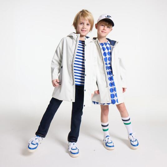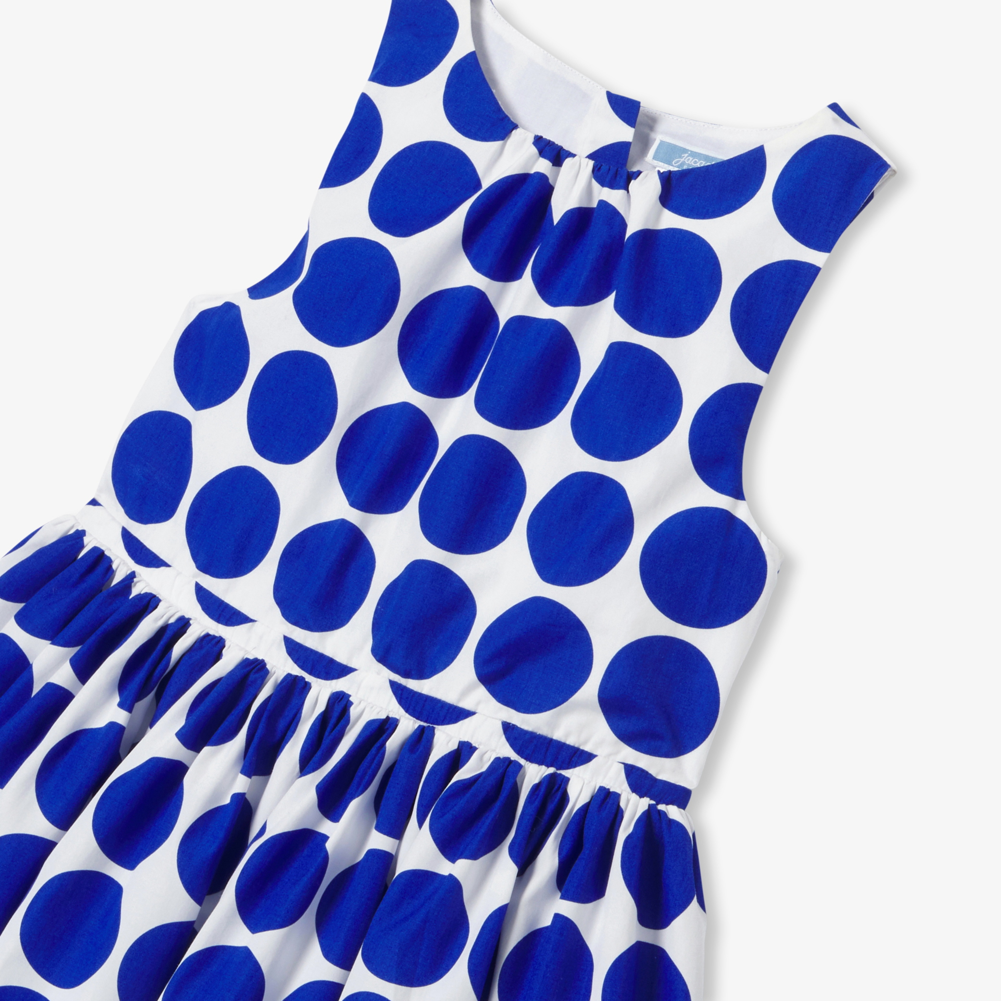 In stile sartoriale e ricco di fascino, quest'abito annuncia una stagione elegante e ipnotica con la sua stampa a maxi pois. In popeline di cotone, foderato in cotone e leggermente elasticizzato in vita, le bambine lo indosseranno in primavera con un cardigan e graziosi sandali aperti per andare a una festa di compleanno.