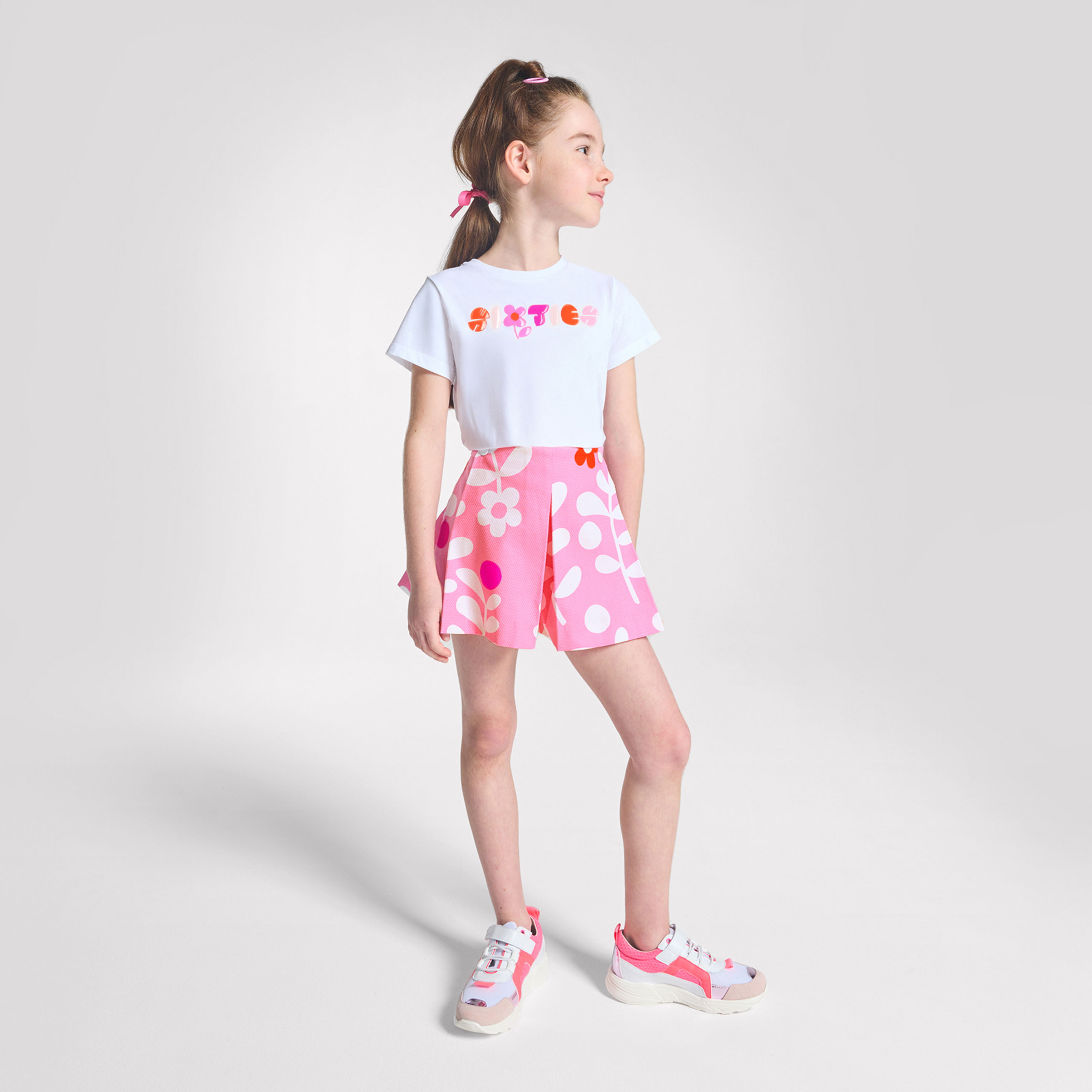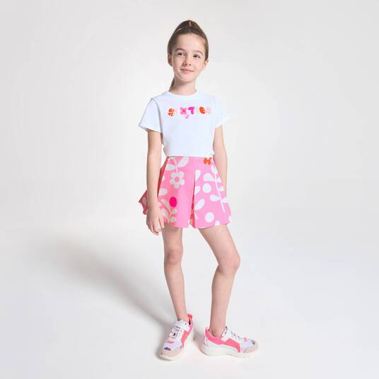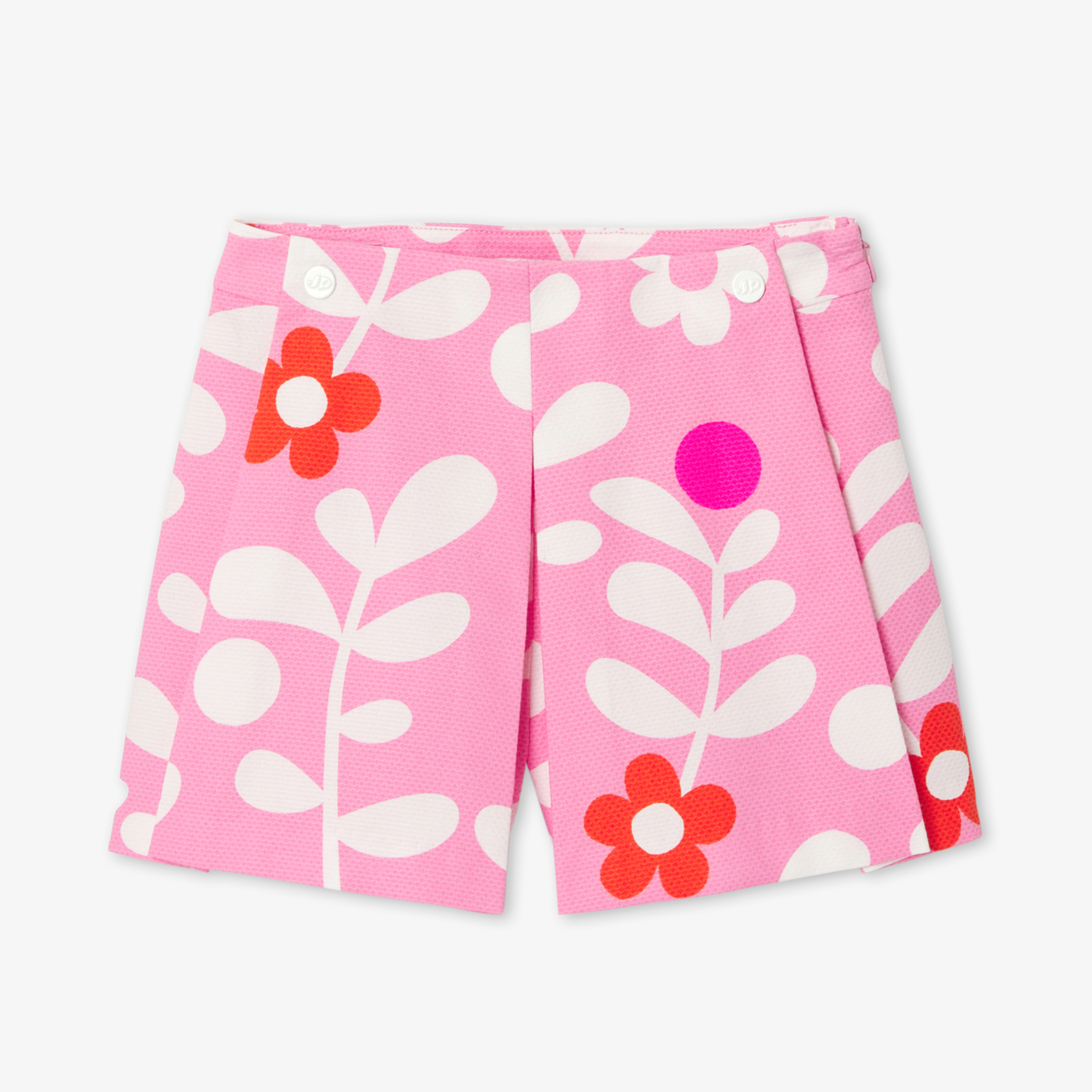 Alternativa pratica e chic alla gonna, la gonna pantalone bambina continua a piacere. Rétro-chic con il suo inedito motivo vegetale, è disponibile in piqué di cotone a nido d'ape. Perfetta per l'outfit quotidiano, le bambine la indosseranno con una t-shirt e scarpe da tennis per un look city e colorato.