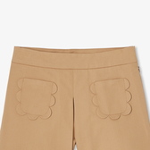 Jacadi ha rivisitato la gonna pantalone bambina in una versione anni '60 per il rientro a scuola. In gabardine di cotone biologico, i dettagli smerlati, la piega baciata grafica e le borchie rivestite in tessuto contraddistinguono questo capo chic e confortevole. Indossata con una T-shirt e un cardigan, creerà un look city dal fascino decisamente parigino.