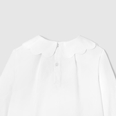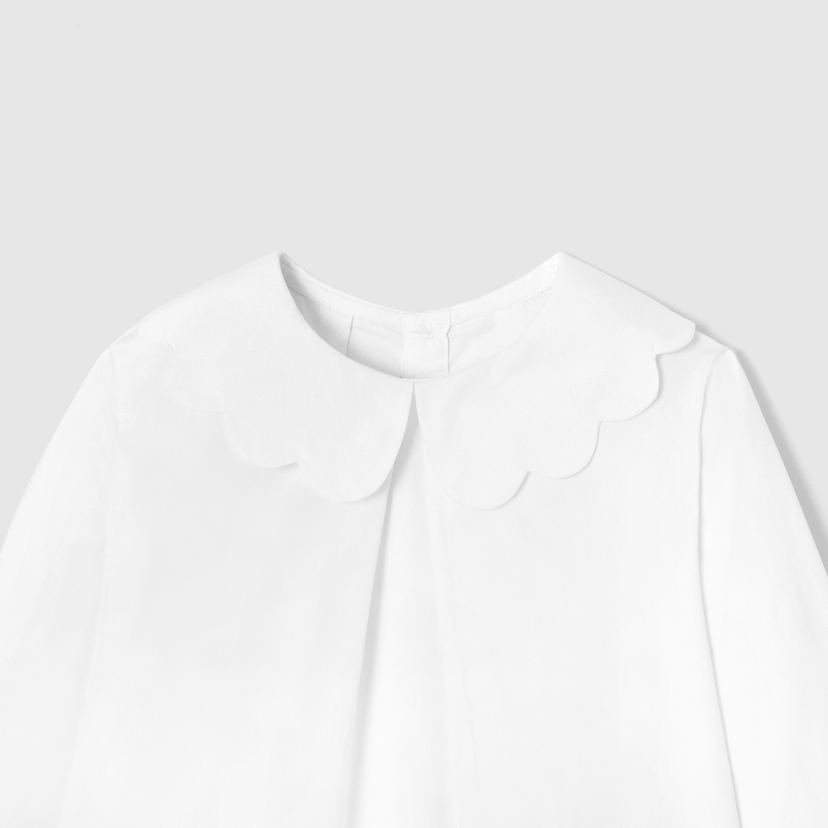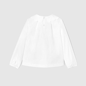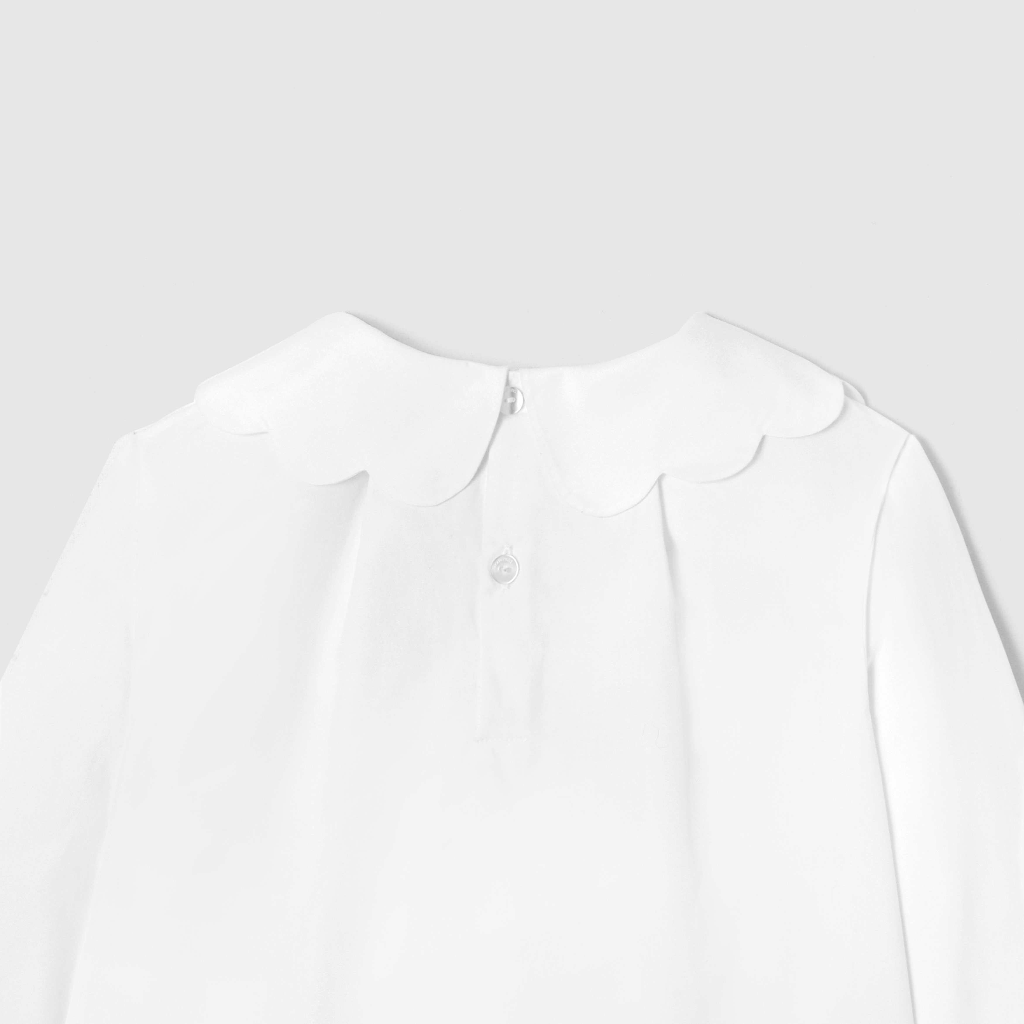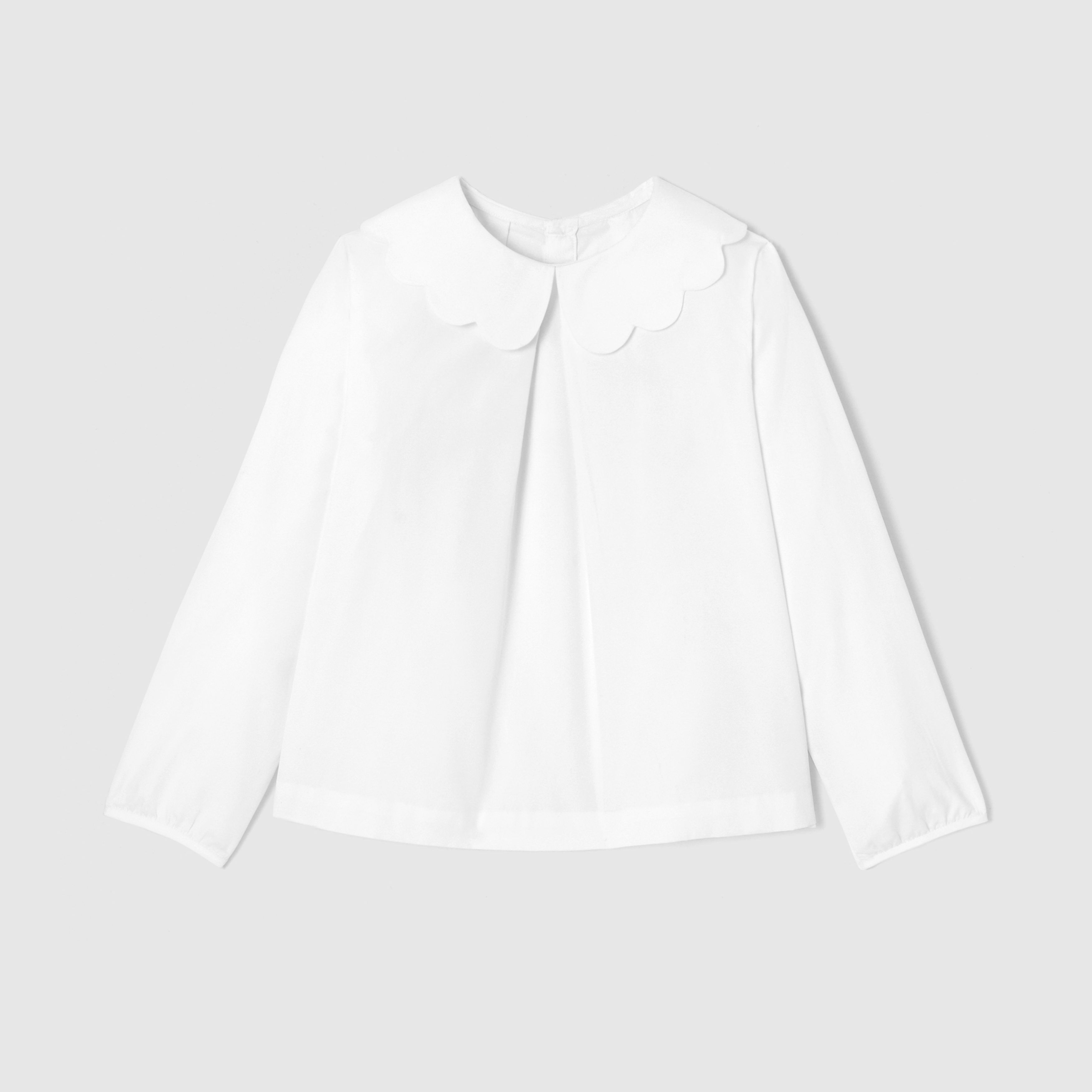 Elegante e grafica, questa blusa in popeline di cotone biologico è abbellita da un doppio colletto fantasia con piccoli smerli. Con il suo look essenziale si abbinerà a meraviglia a graziosi shorts per godersi gli ultimi giorni d'estate o a un cardigan e pantaloni scampanati per il ritorno a scuola.