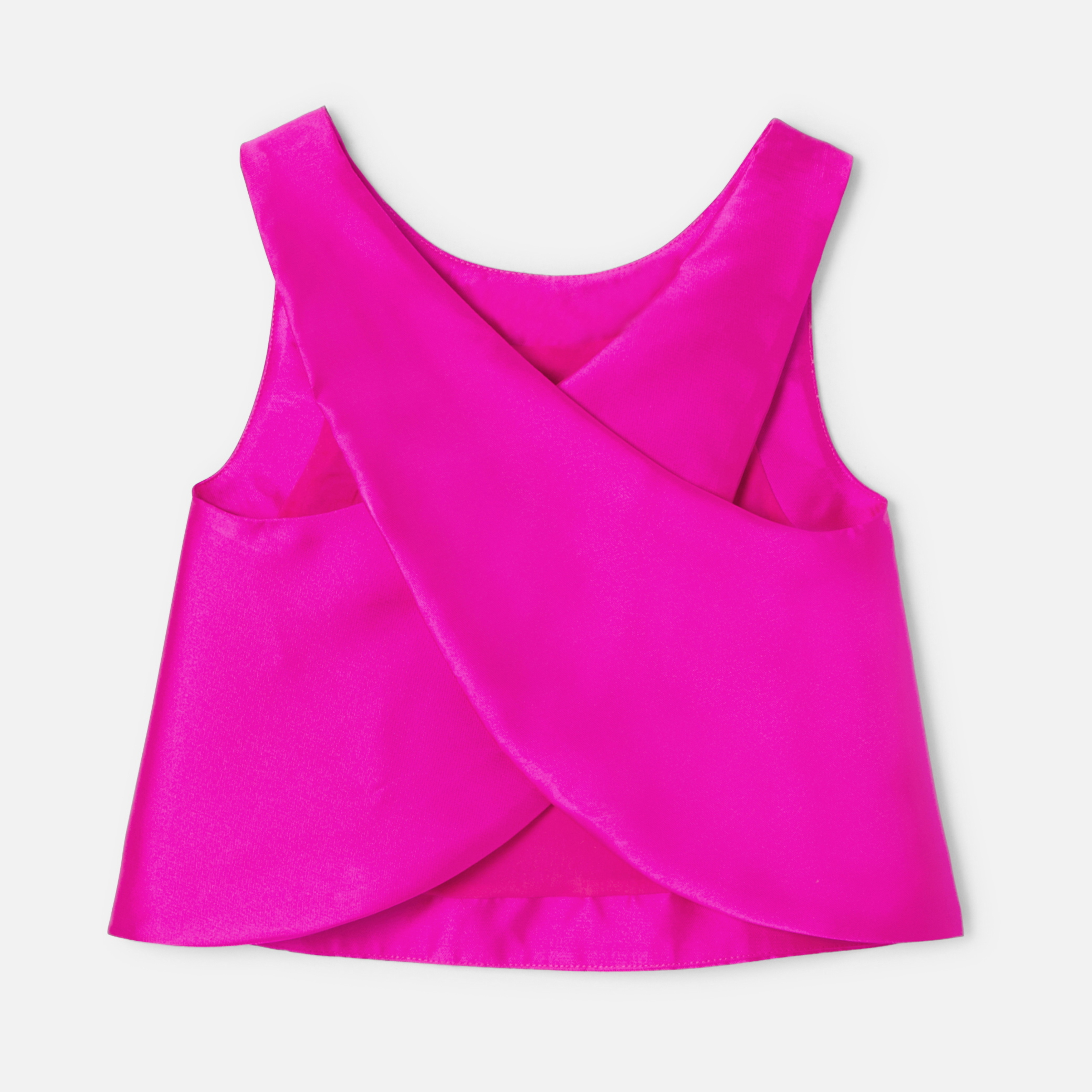 Essenziale, grafico ed elegante, questo top bambina sarà perfetto per le cerimonie. In raso Mikado made in Italy e disponibile in colori pop, rivela un'elegante schiena scoperta per un tocco di modernità. Abbinato alla gonna coordinata, un bel cappello e sandali lamé completeranno l'outfit per il grande giorno.