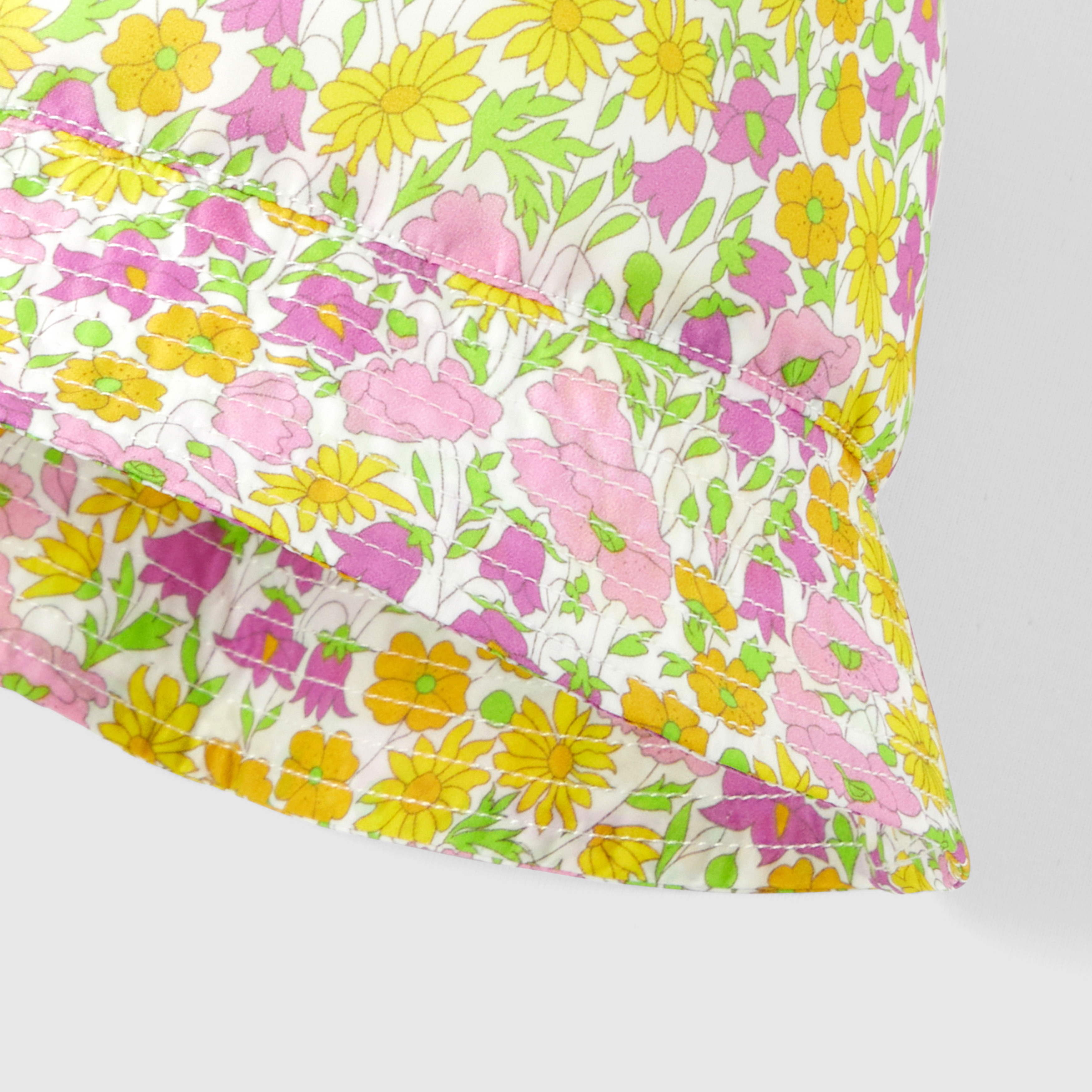 Il cappello alla pescatora di questa stagione è abbellito da un'allegra stampa Liberty. Immancabile nella bella stagione e realizzato in nylon per l'occasione, si abbinerà a meraviglia al costume da bagno coordinato.
