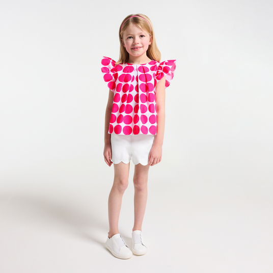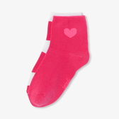 Un cuoricino e maxi pois rosa fluo dinamizzano queste due paia di calzini bambina. In cotone biologico e facili da infilare, potranno essere abbinate a scarpe con cinturino a T o a un paio di sneakers per la primavera.
