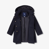 Il guardaroba per il ritorno a scuola si arricchisce di capi eleganti e pratici come questo incantevole cappotto bambina. In stile cappotto inglese in lana coprente, è dotato di tasche trompe-l'oeil e vere tasche con patta, cappuccio staccabile, di una fodera e di una leggera imbottitura per offrire il massimo calore. Indossato su un abito in jeans o con pantaloni ampi e scarpe con cinturino a T per un look preppy e city, è perfetto per tutti i giorni.