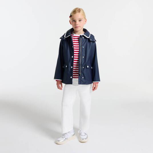 Scopri tutta l'eleganza francese e il DNA Jacadi con questa incantevole cerata bambina. Dall'effetto opaco e messa in risalto da profili a contrasto intorno al collo e sul fondo manica, è foderata in jersey per offrire il massimo comfort. Pensata per gli acquazzoni, le bambine aspetteranno con impazienza le prime gocce di pioggia.