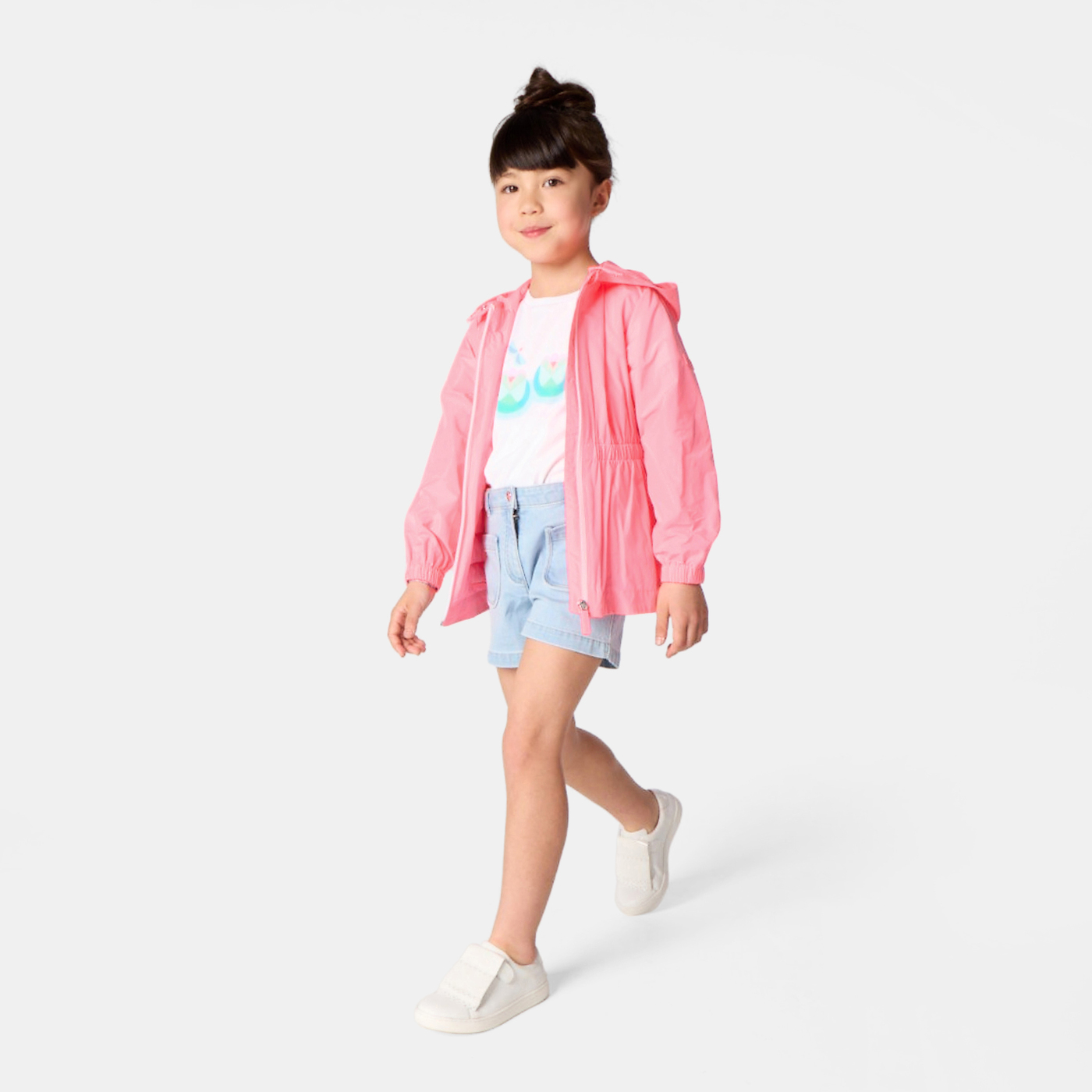 Questa impeccabile giacca a vento accompagnerà le bambine per tutta la stagione.  Idrorepellente ed effetto 2 in 1, è composta da un cappotto impermeabile e da un piumino staccabile che potrà essere indossato da solo. Ideale per l'outfit quotidiano e facile da abbinare a una felpa o a un pullover, questa giacca a vento è disponibile in colori pop e luminosi.