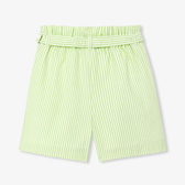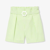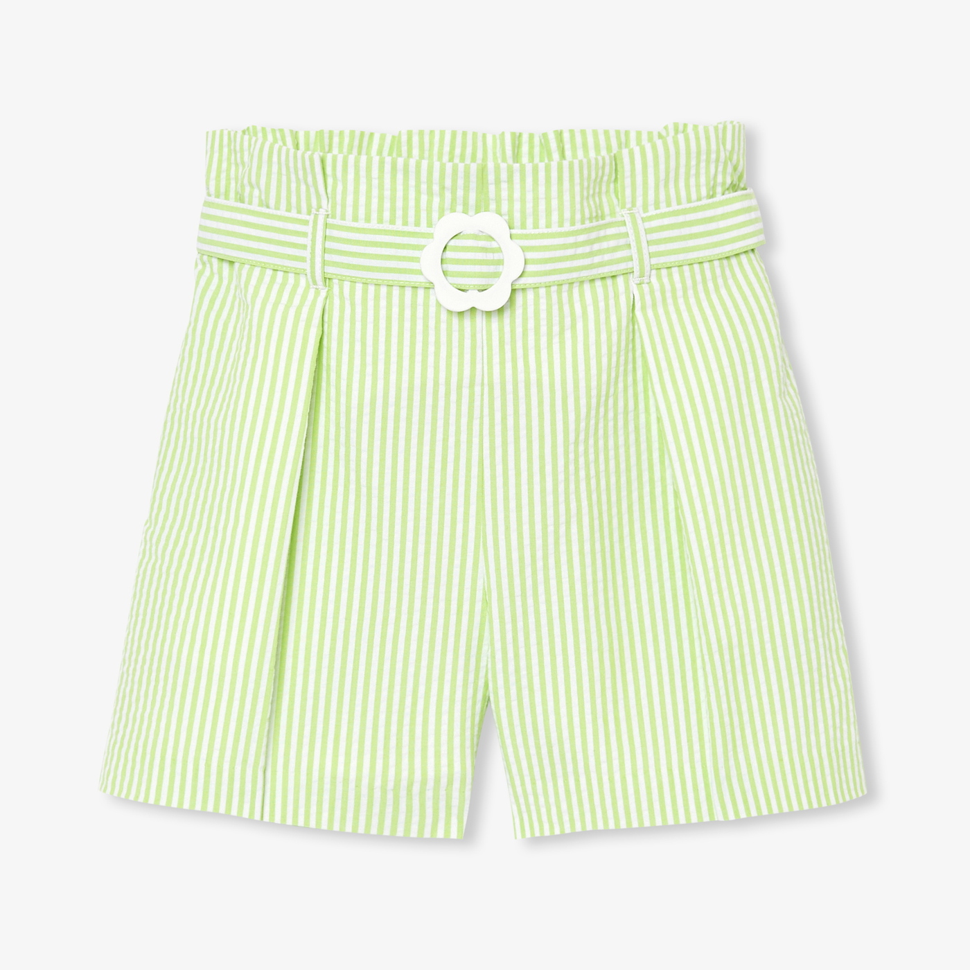 Un tessuto piacevole per l'estate grazie alla sua morbidezza e leggerezza, il seersucker veste gli shorts bambina per l'occasione. Abbelliti da una tonalità verde pastello e da una cintura con fibbia a fiore che segna il punto vita, gli stilisti creano gli shorts perfetti da indossare con una t-shirt e graziosi sandali per un delizioso look preppy.