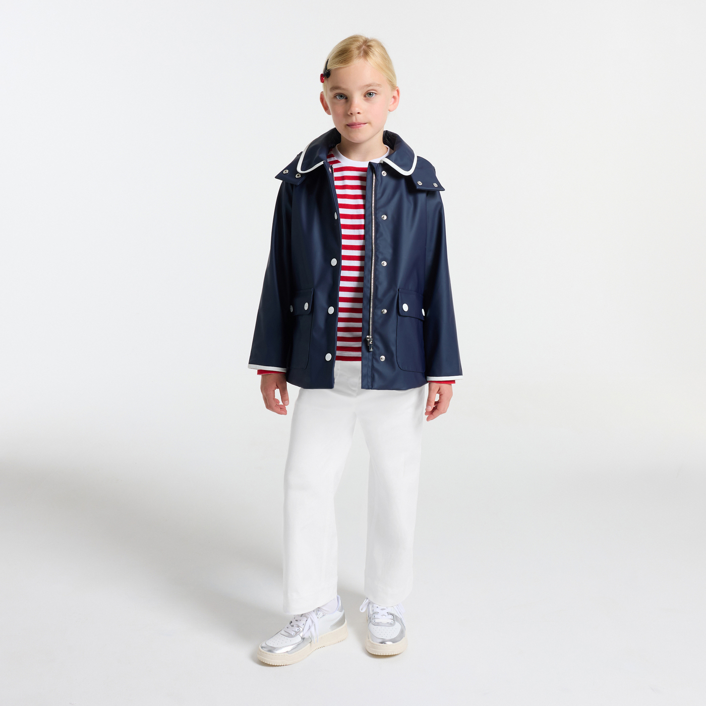 Un modello ampio, preso in prestito dal guardaroba degli anni '60, questi pantaloni sailor bambina saranno perfetti per tutta la stagione. In twill di cotone elasticizzato e dotati di tasche rotonde applicate sul davanti e sul retro, abbinali a una felpa e a scarpe da running per un look casual-chic e city dal tocco francese.