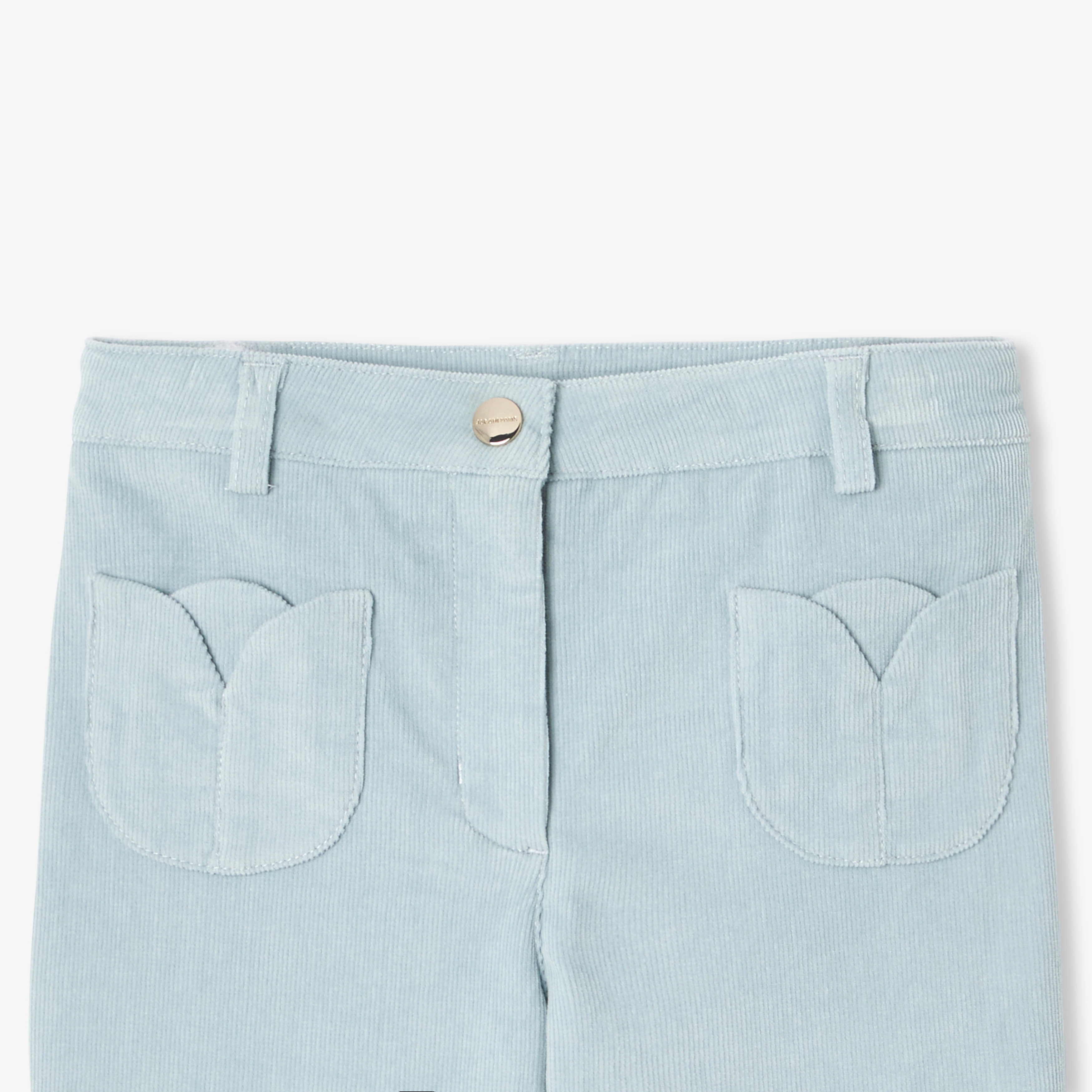 Alternativa retro-chic ai jeans, gli stilisti reinterpretano i pantaloni di tutti i giorni per creare modelli eleganti e confortevoli. Realizzato in morbido velluto millerighe con tasche a forma di fiore e taglio ampio, questo modello è perfetto da abbinare a una blusa e a un cardigan per un look chic e city.