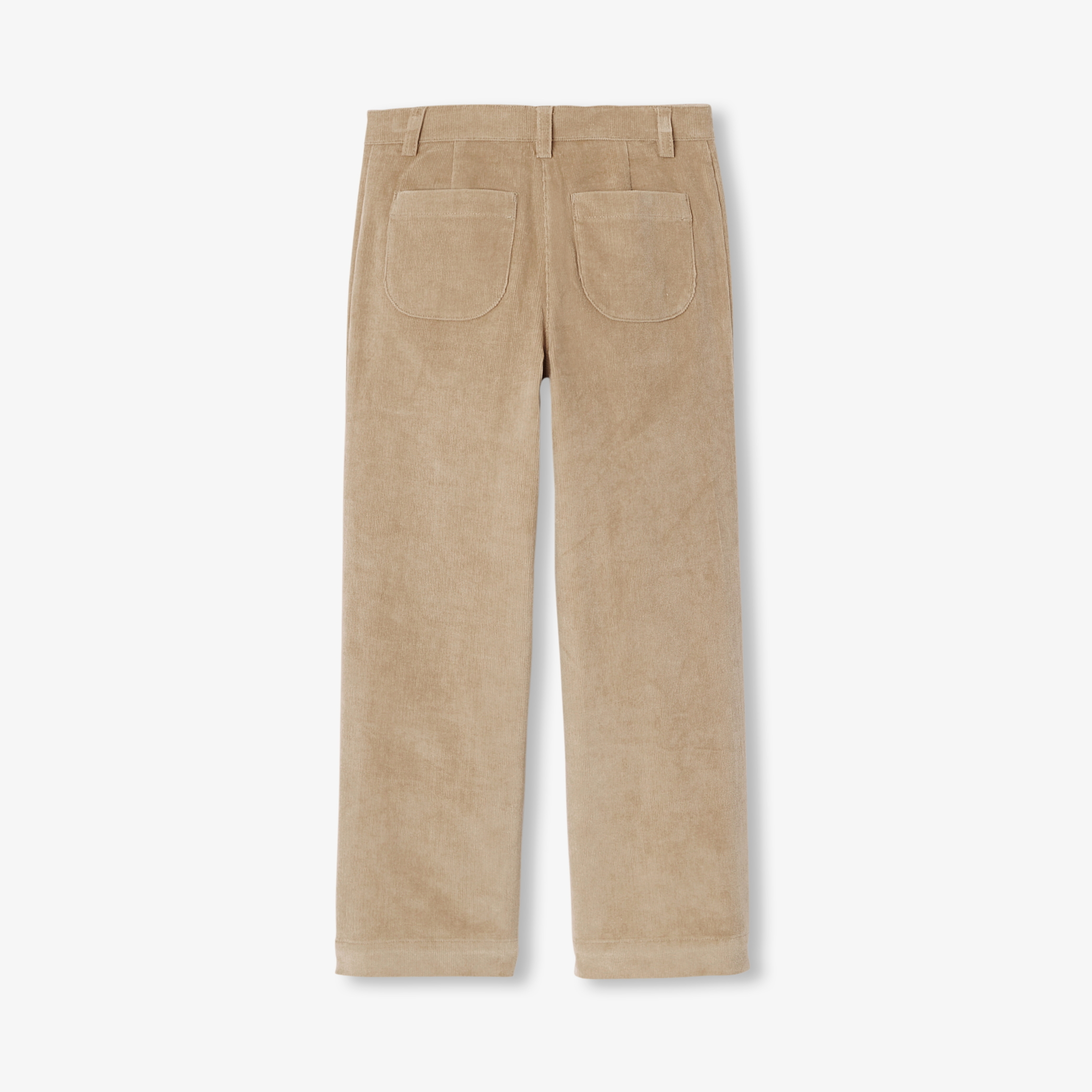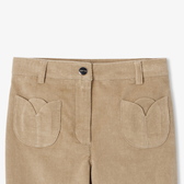 Alternativa retro-chic ai jeans, gli stilisti reinterpretano i pantaloni di tutti i giorni per creare modelli eleganti e confortevoli. Realizzato in morbido velluto millerighe con tasche a forma di fiore e taglio ampio, questo modello è perfetto da abbinare a una blusa e a un cardigan per un look chic e city.