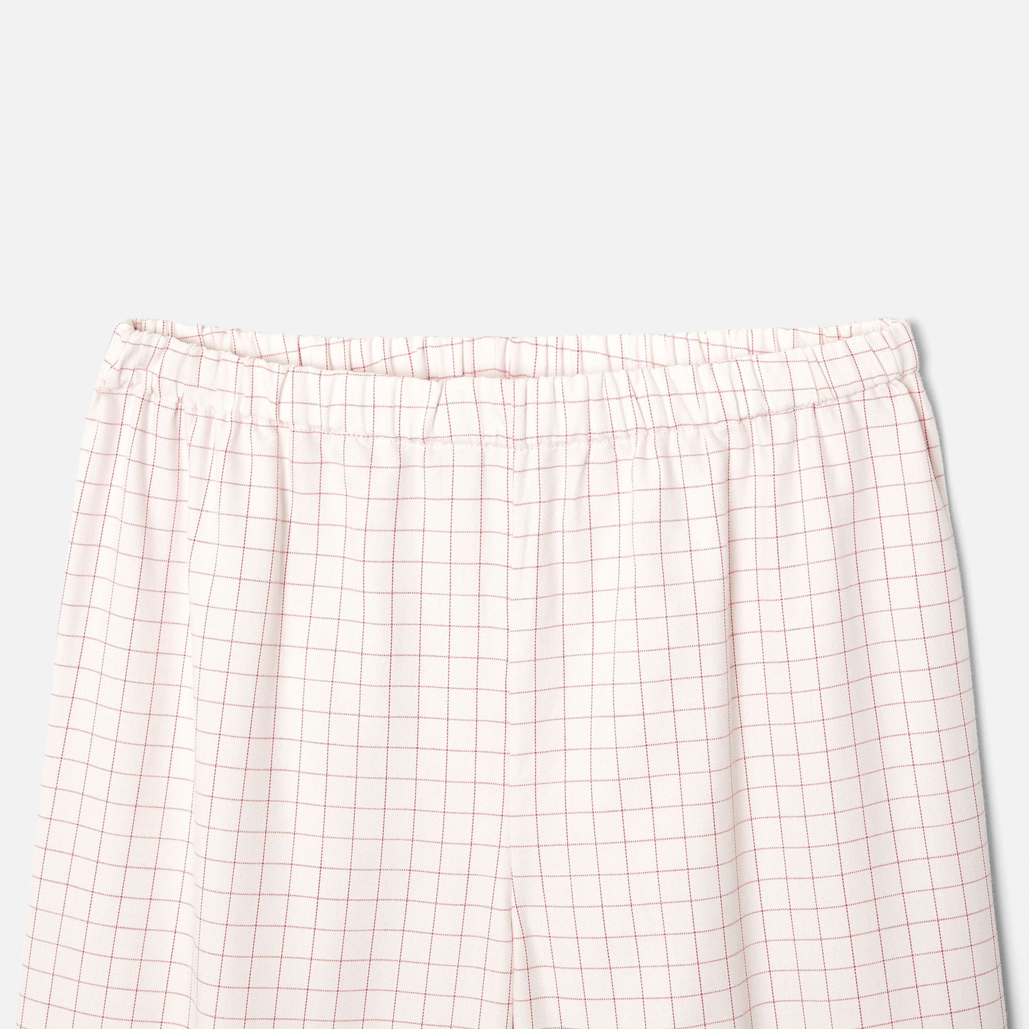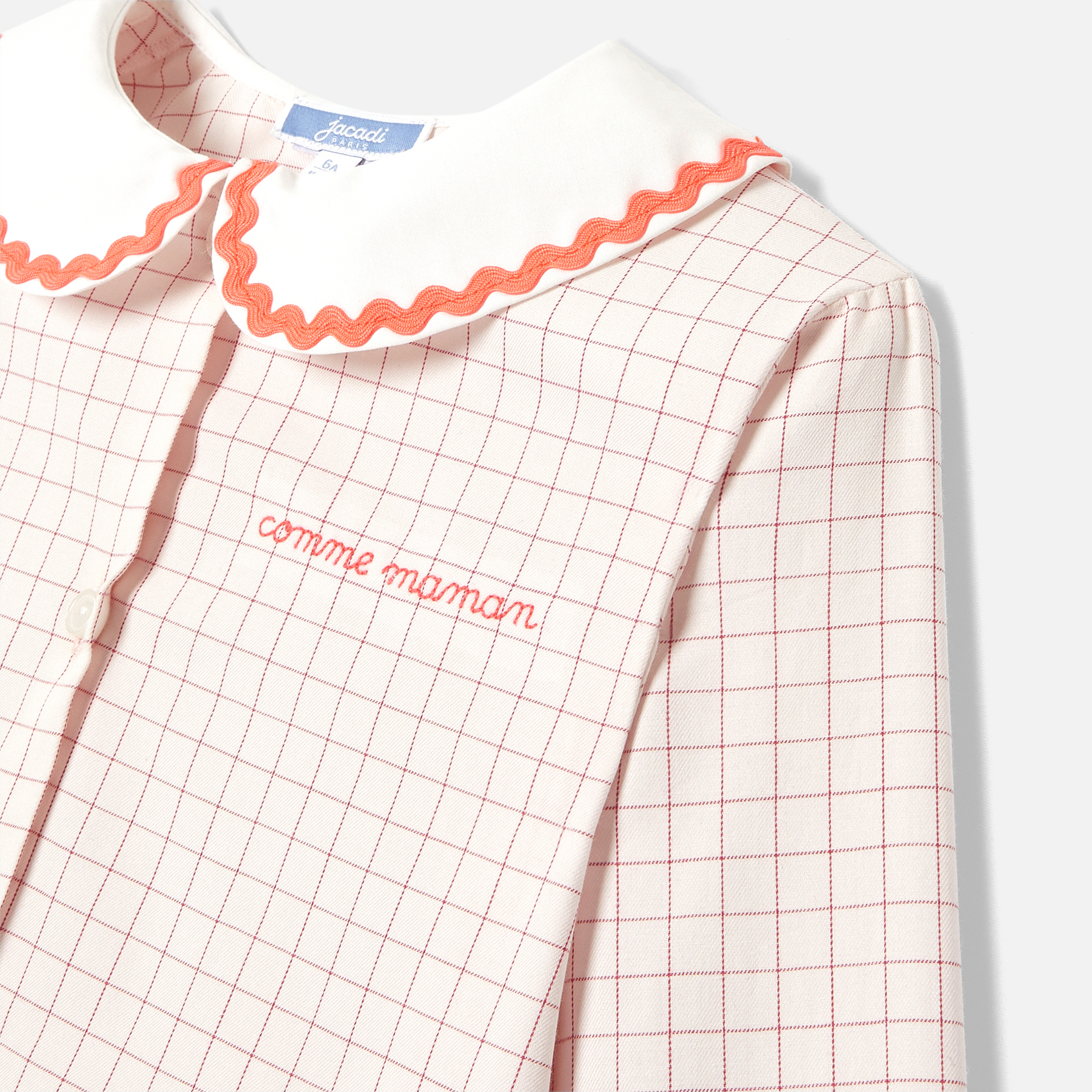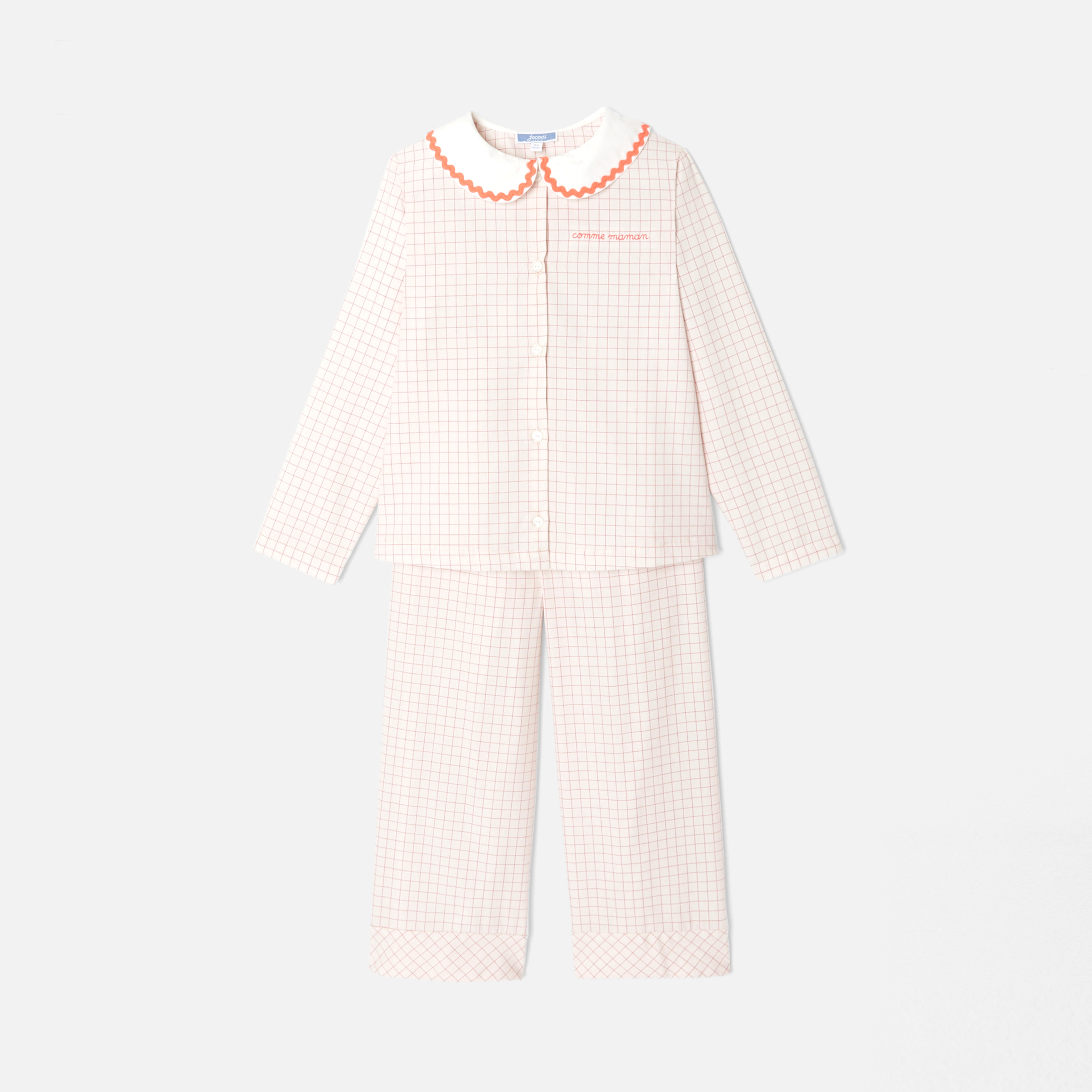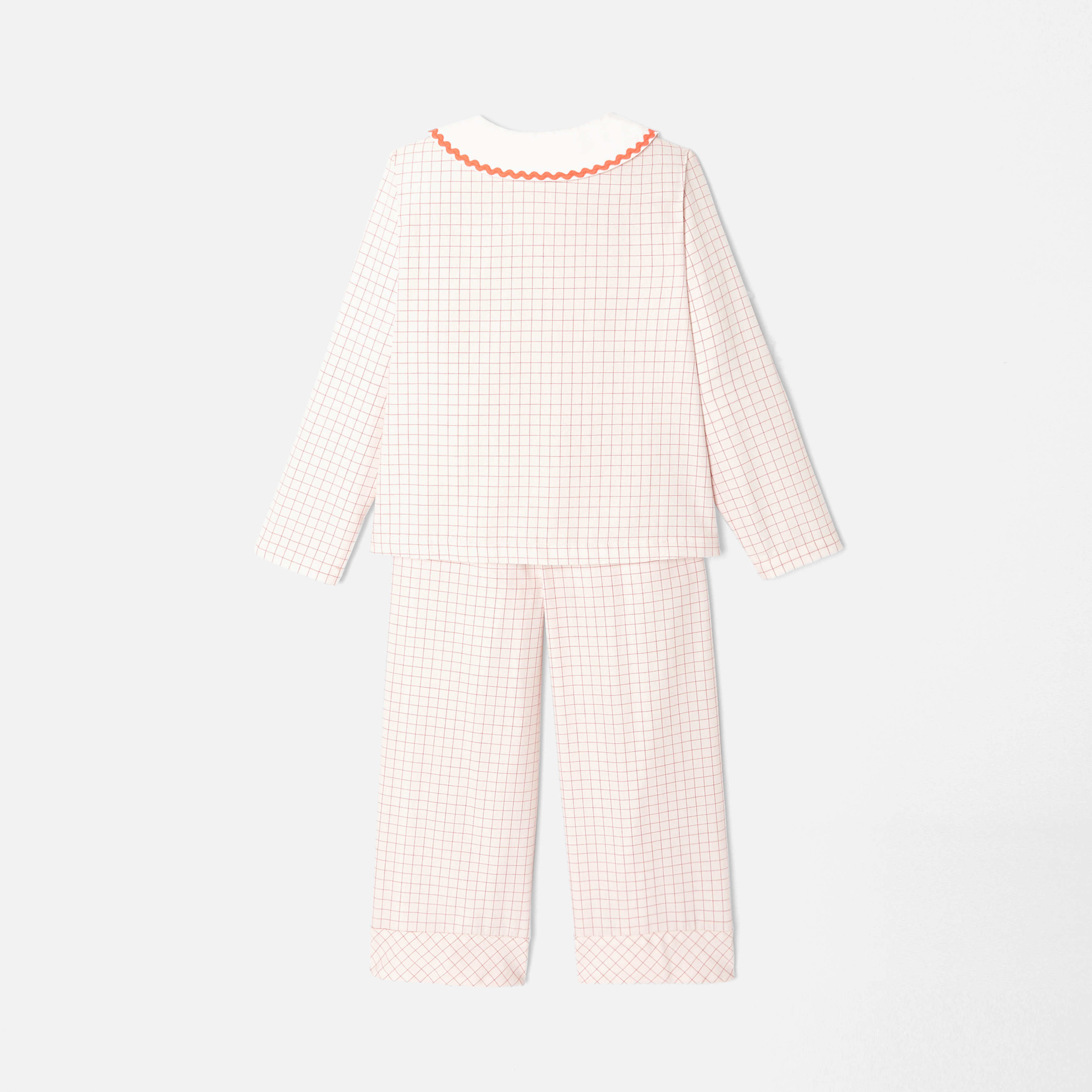 Dolci notti e sogni d'oro con questo incantevole pigiama di flanella a quadri. Composto da una camicia ornata di un colletto tondo in popeline con passamano rosa fluo e da pantaloni ampi con elastico in vita, le bambine lo indosseranno volentieri dopo il bagno per giocare prima di cena.
