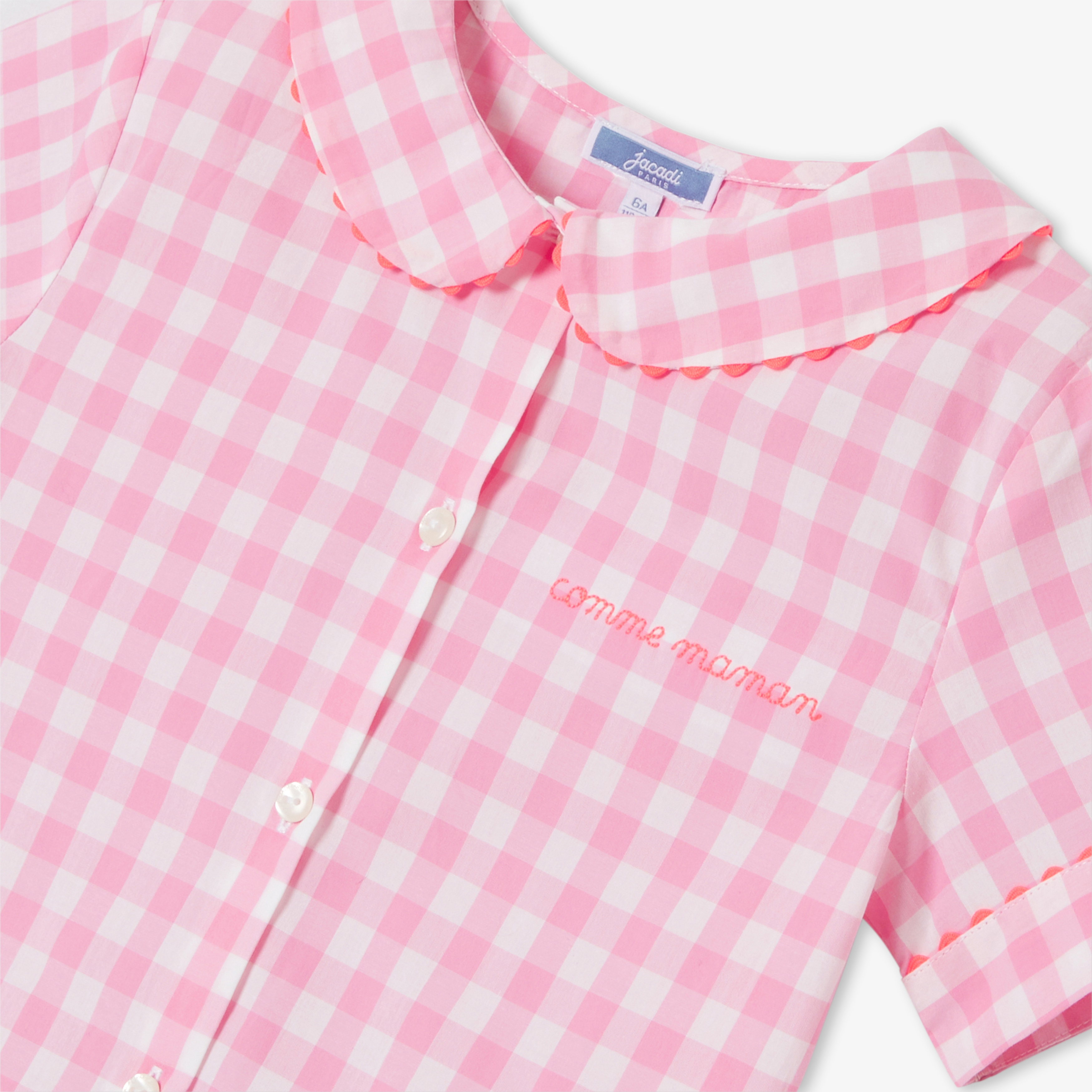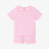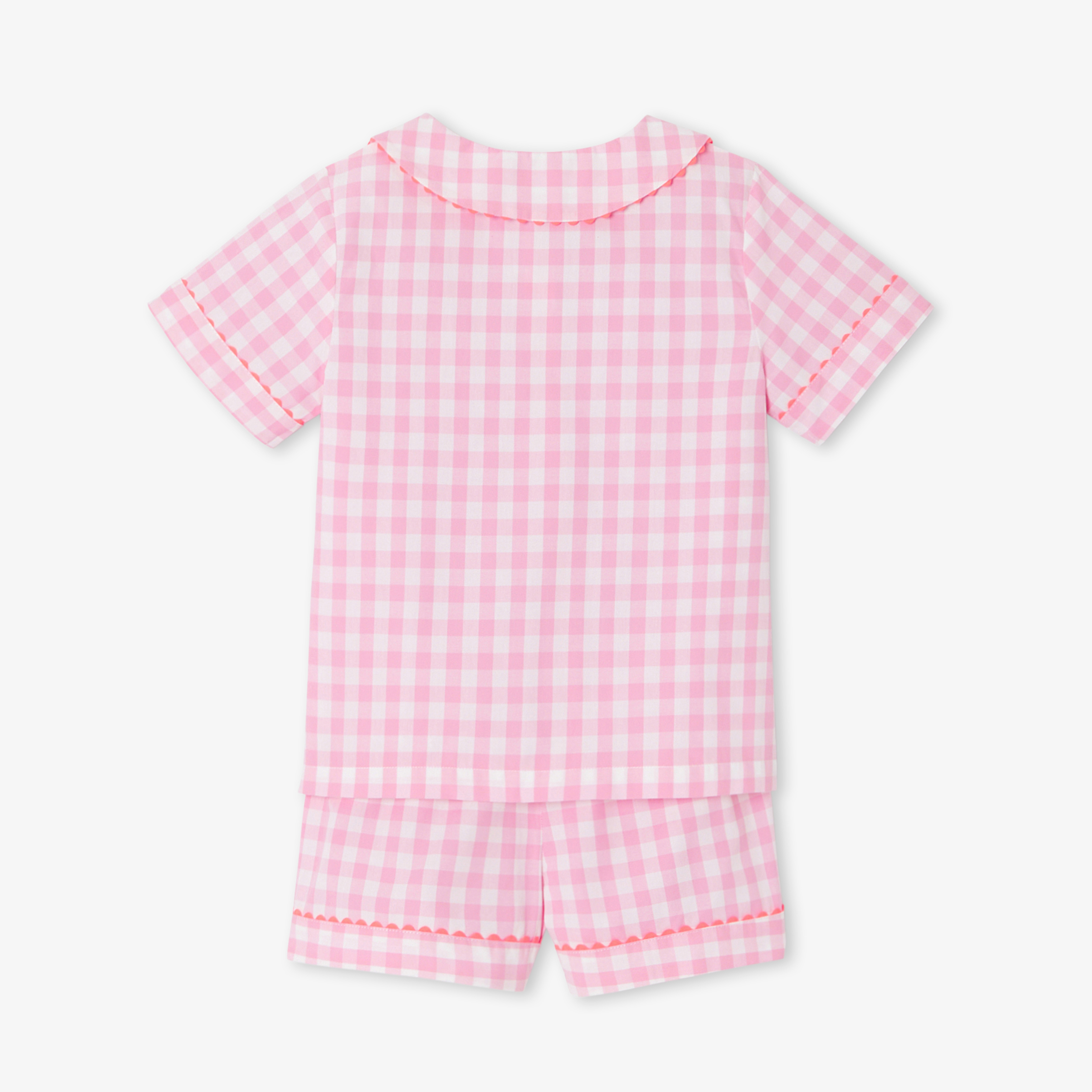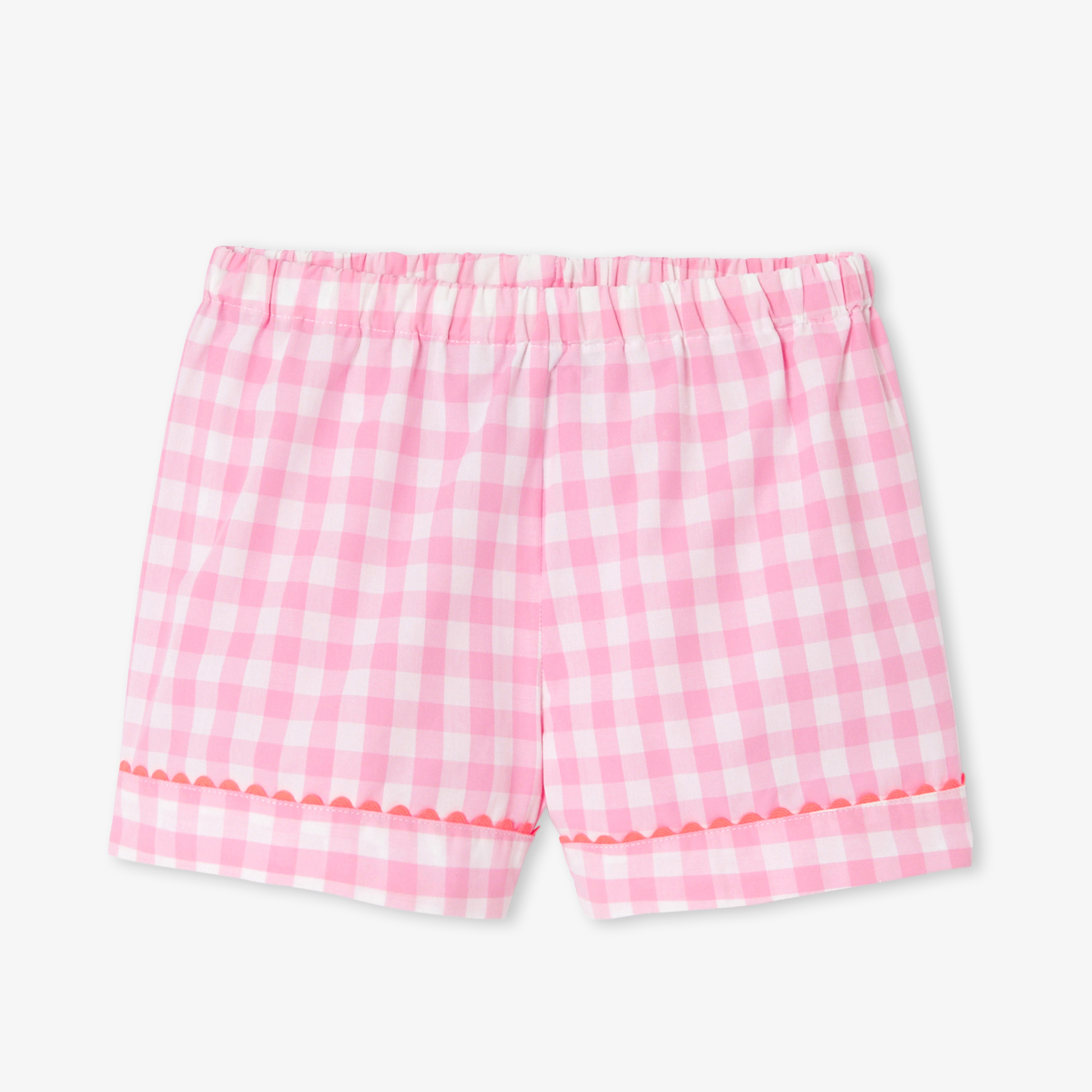 In cotone biologico, questo pigiama con pantaloncini bambina è dinamizzato da un incantevole motivo a quadretti Vichy. Composto da una camicia a maniche corte ornata di un colletto tondo e da shorts con elastico in vita, nastri a serpentina fluo completano questo must-have dell'estate.