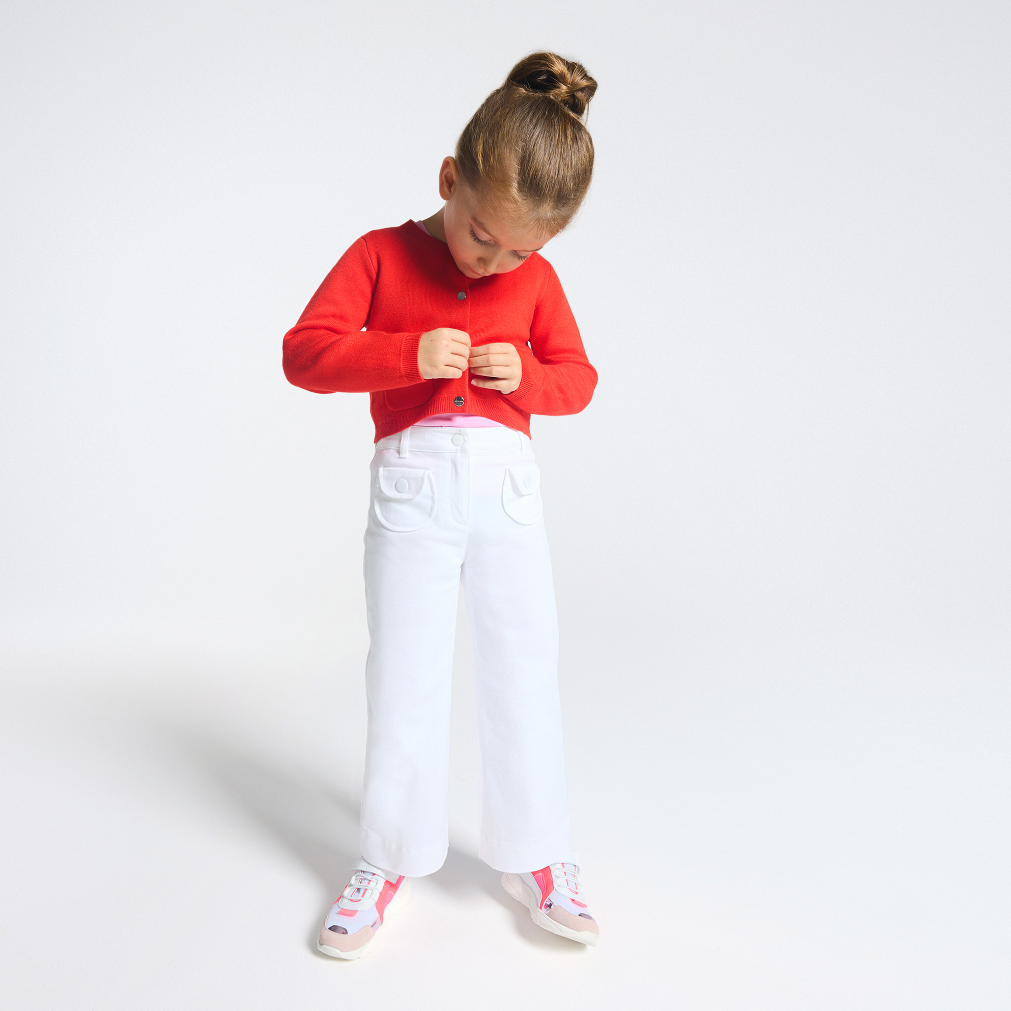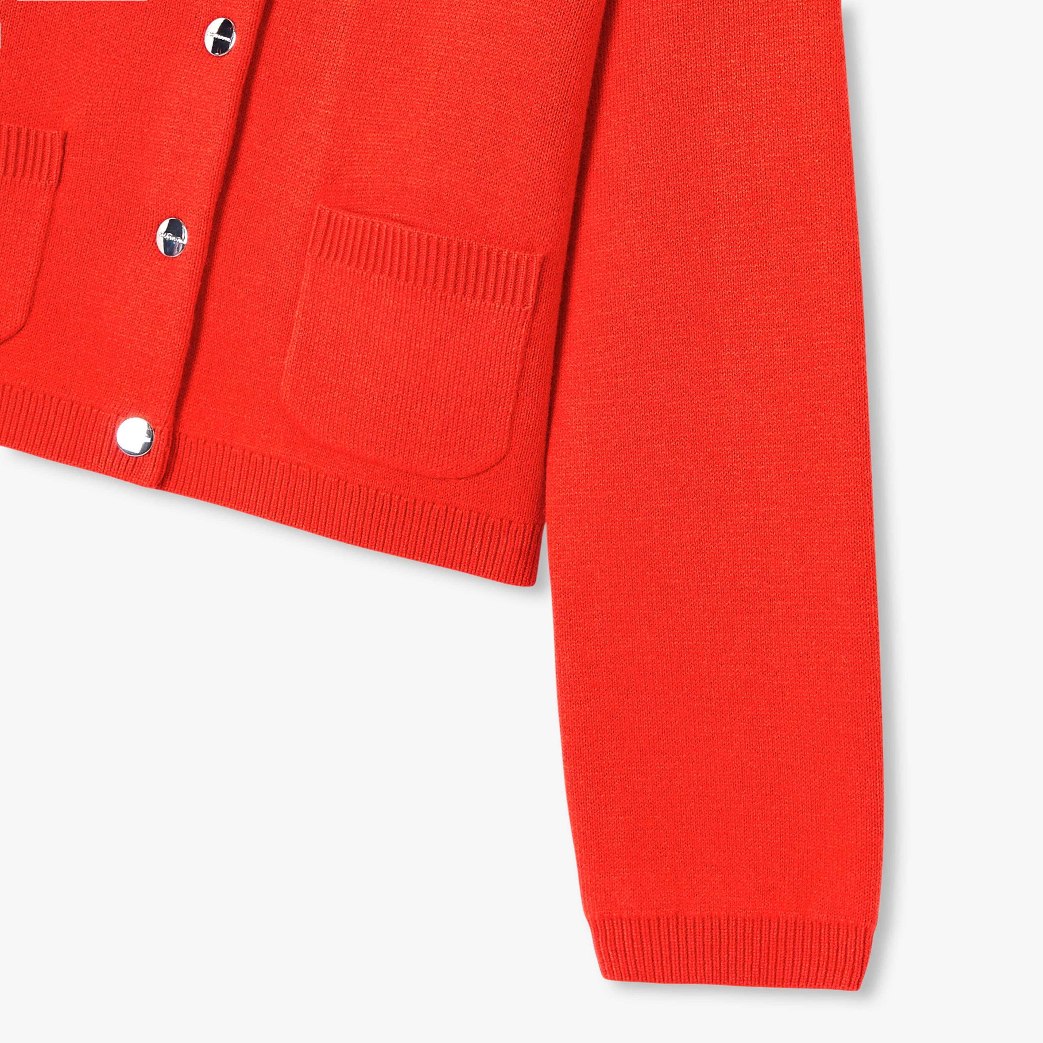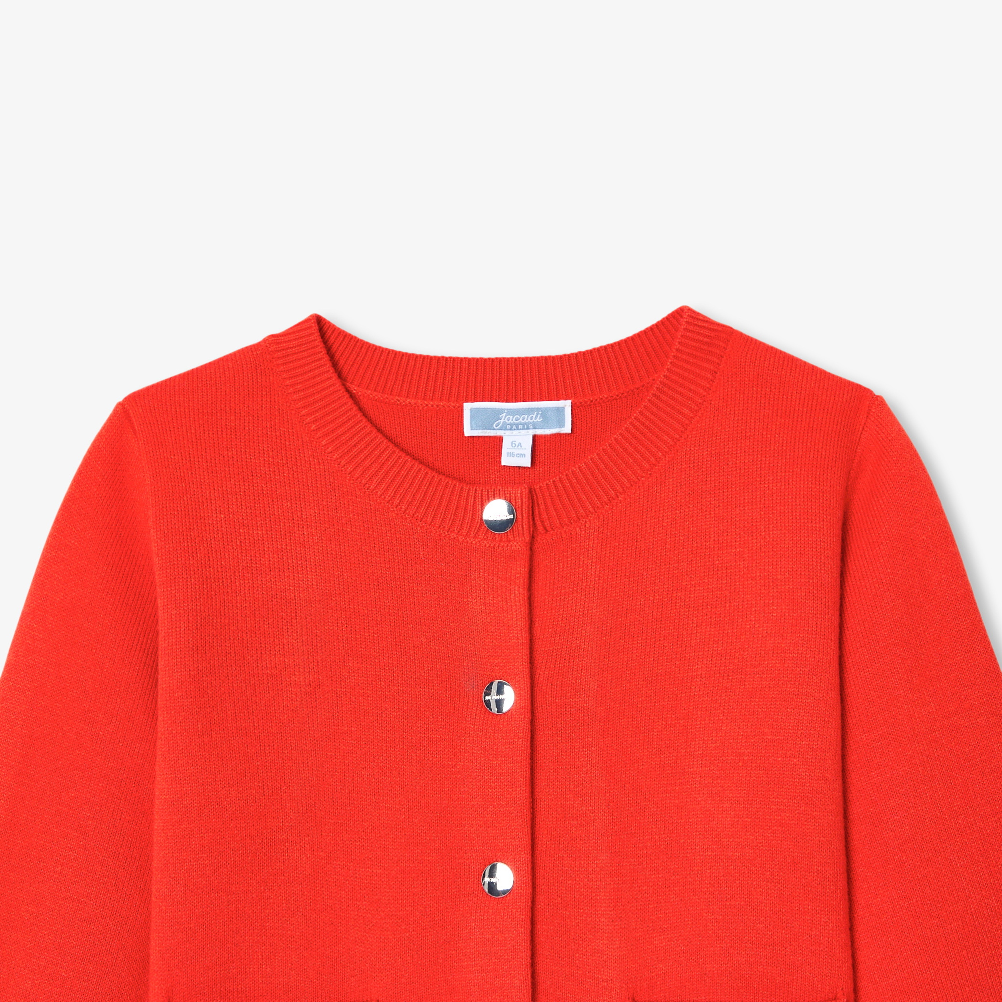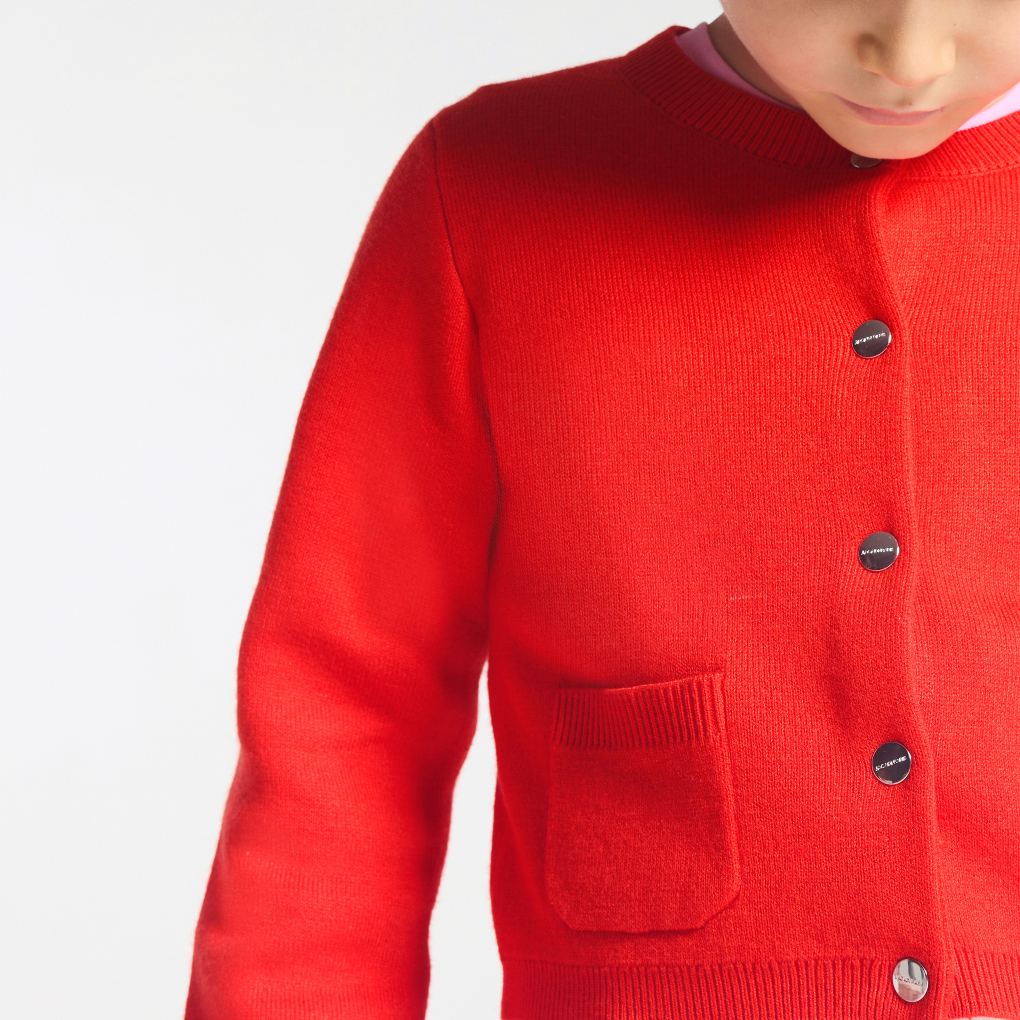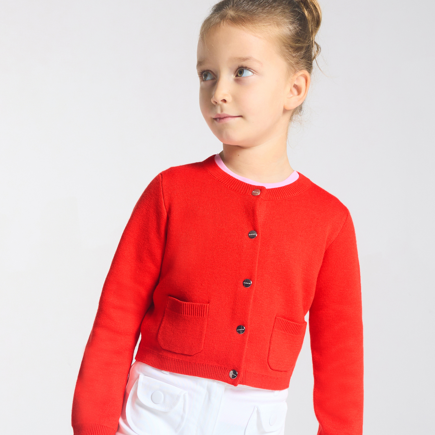 Immaginato come una giacchetta, questo cardigan bambina completerà tutti i suoi outfit primaverili. Arricchito da tasche applicate e da bottoni automatici, punta su un look monocromo abbinando il suo colore intenso all'abito coordinato.