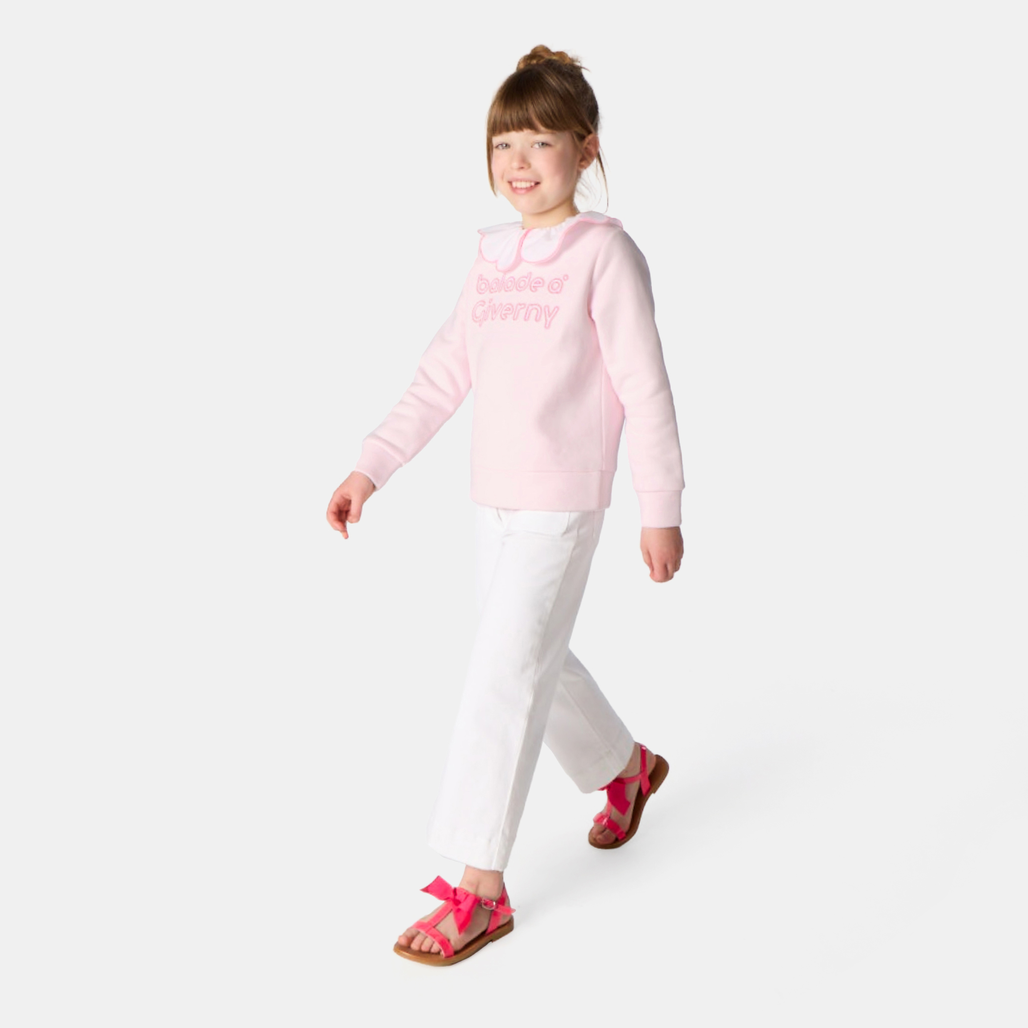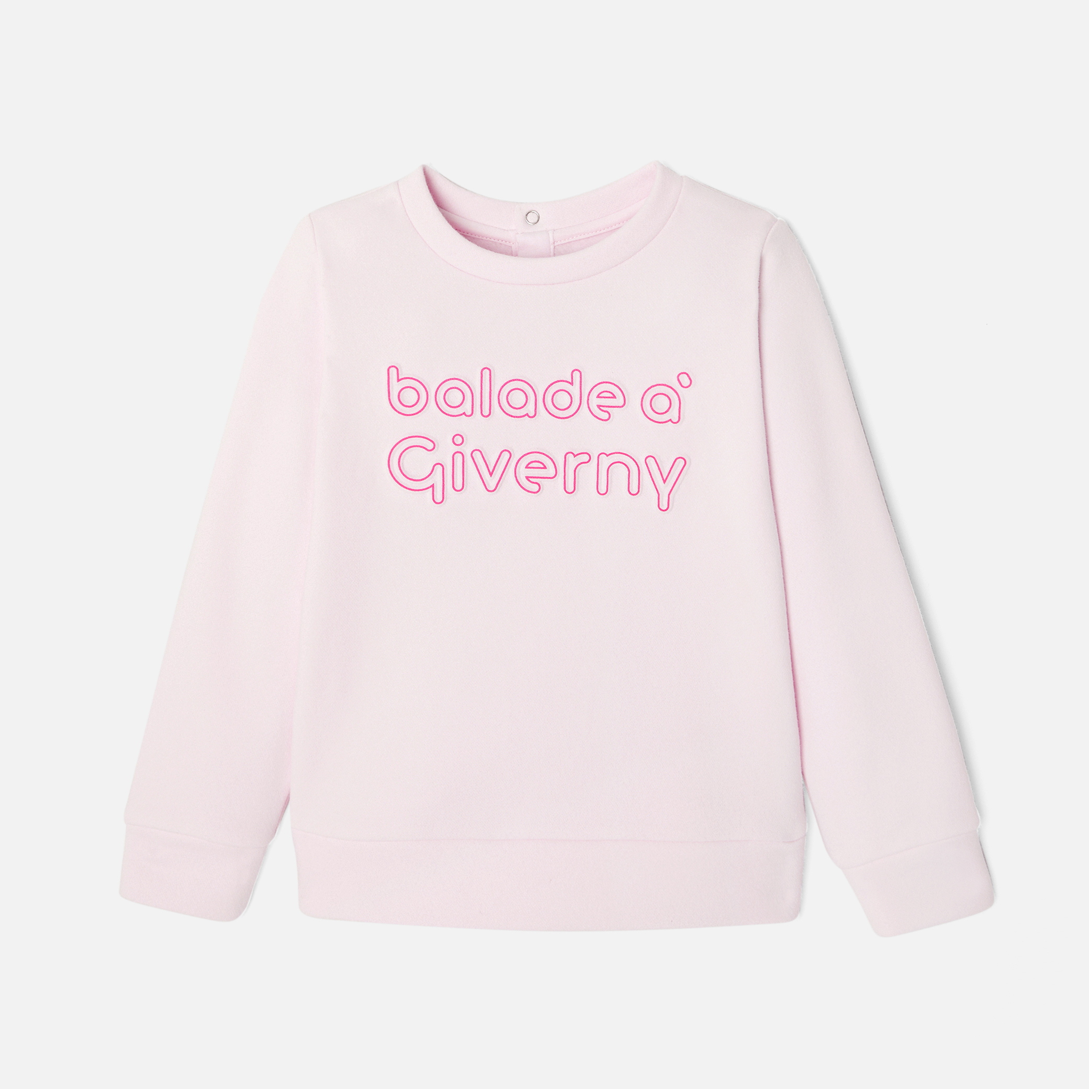 Di un bel lilla ultra contemporaneo, una scritta goffrata modernizza la felpa bambina di questa stagione. Da indossare con sneakers e shorts in denim per una serata di fine estate, sarà perfetta anche per la scuola con jeans ampi per un'outfit dal fascino parigino.