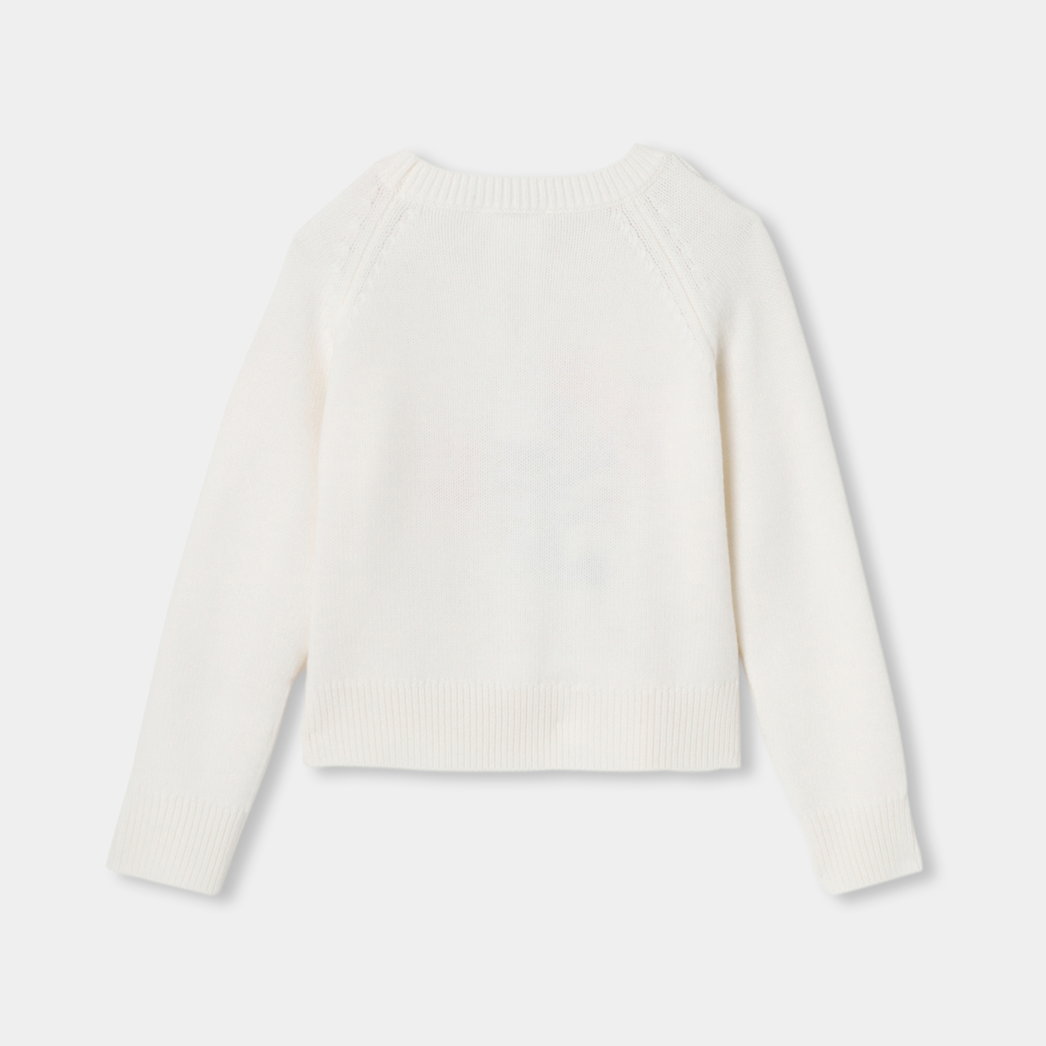 Immancabile in ogni guardaroba invernale, questo maglione trasporterà le bambine in un mondo confortevole e romantico. In morbida lana coprente, è impreziosito da un delizioso bouquet di fiori intarsiati in stile art nouveau e da trecce sulle maniche. Il capo preferito di questa stagione, da indossare con shorts a spina di pesce o pantaloni di velluto, aggiungerà un tocco chic a qualsiasi outfit.