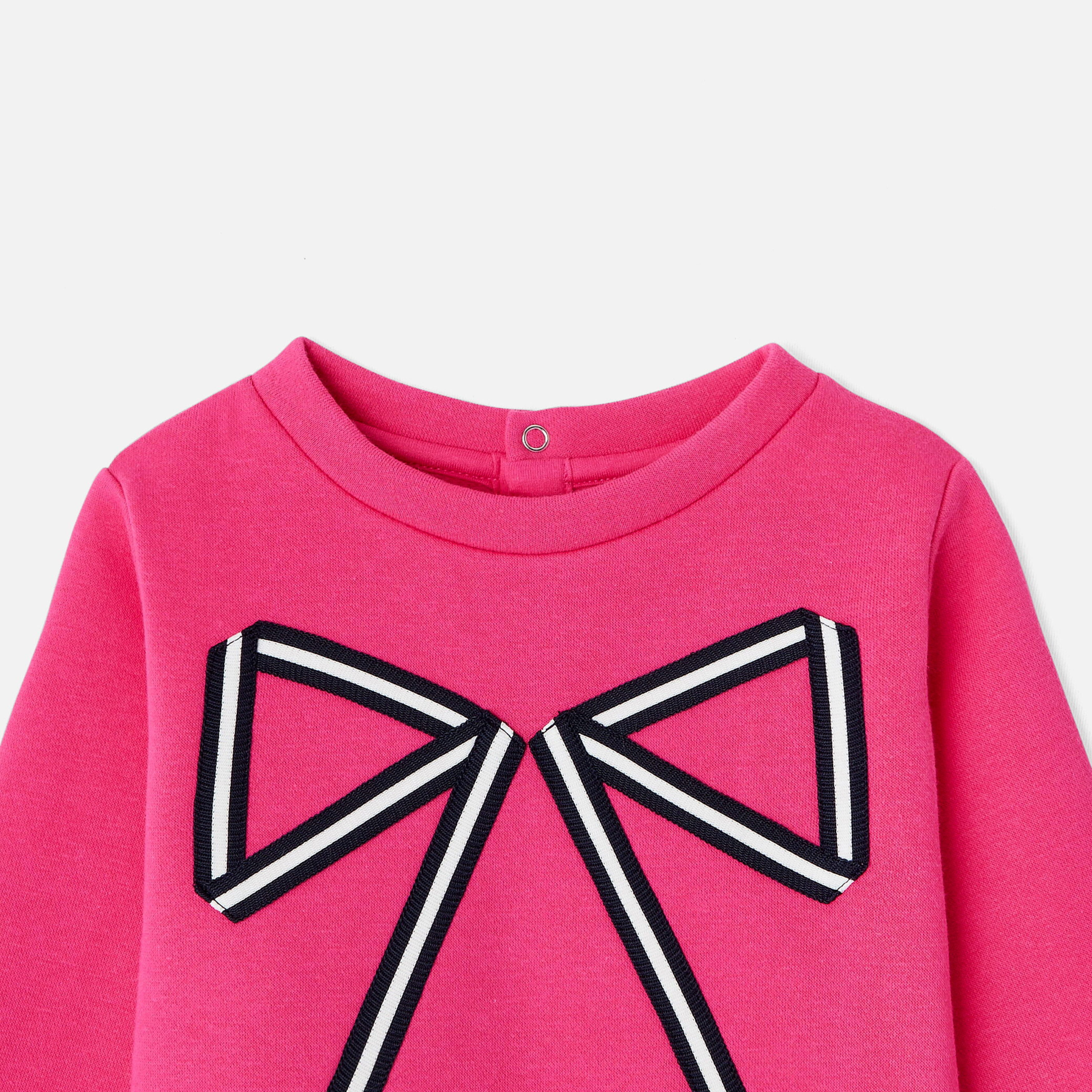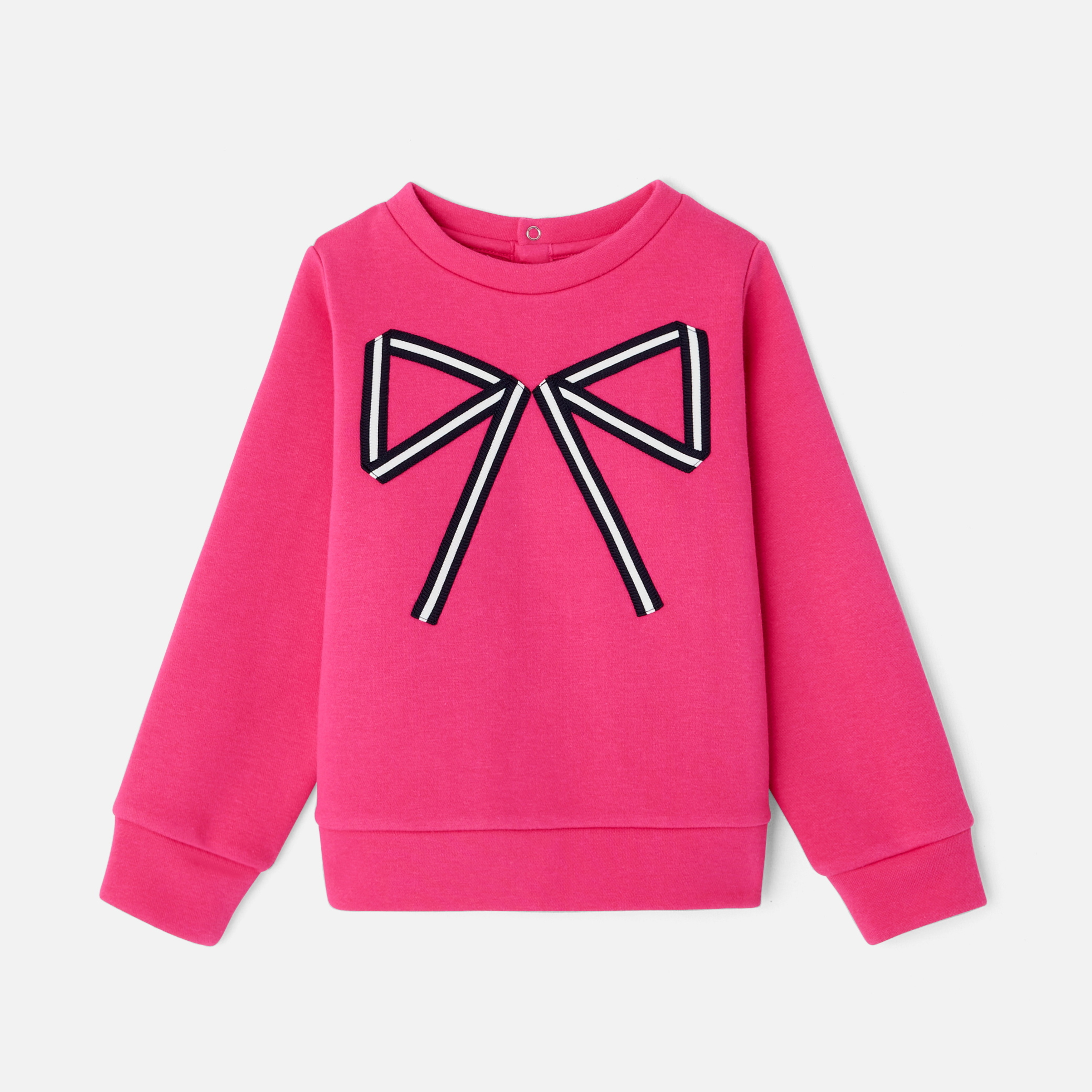 Un ritorno a scuola grafico e chic con questa nuova felpa bambina. In morbido tessuto felpato, è abbellita da un elegante fiocco bicolore applicato. Ideale per il ritorno a scuola, le bambine la indosseranno con pantaloni scampanati per un look preppy-chic impeccabile.