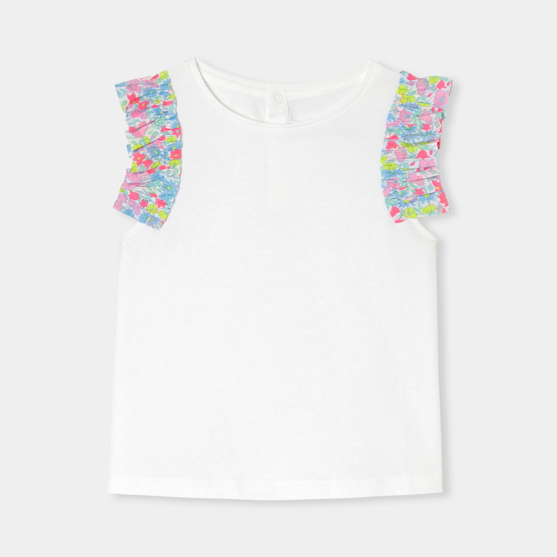Dal bianco morbido al blu cielo, passando per il rosa cipria, la morbidezza è d'obbligo. Tinta unita, con motivi, con messaggi o a righe, i nostri modelli di magliette e polo sfoggiano anche dettagli affascinanti. Maniche a sbuffo, maniche plissettate o maniche a palloncino, colletto festonato, collo Claudine, collo a petalo o collaretto a volant. Difficile resistere. I motivi Liberty si fanno strada con orgoglio nelle nostre collezioni di magliette e polo per ragazze, con piccoli tocchi. Sulle maniche, sul collo questi motivi floreali illuminano ancora di più le giornate estive della tua deliziosa bambina.