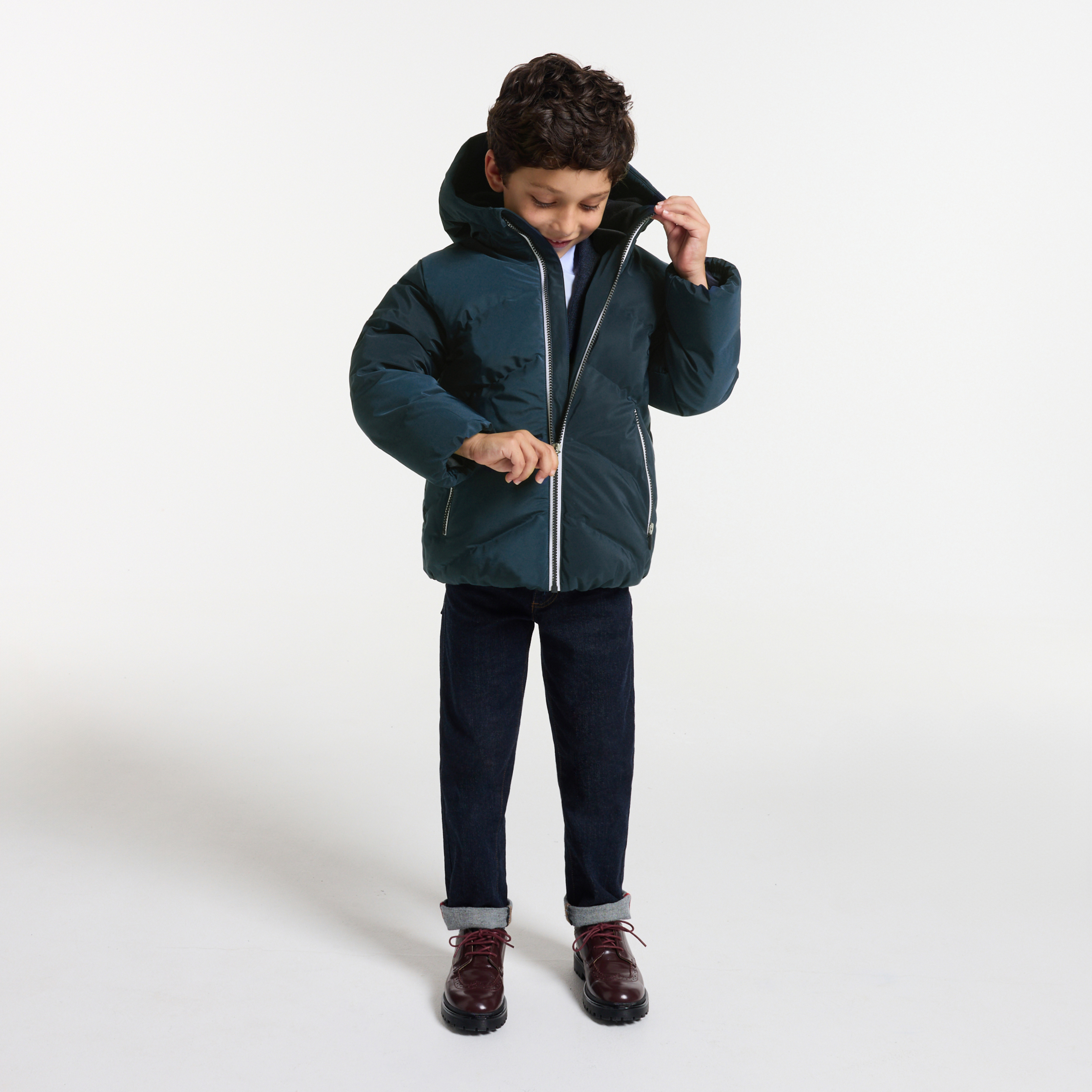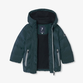 Molto amato dai piccoli in città, il piumino da bambino adotta un'estetica minimal e sporty chic per l'autunno. Idrorepellente e foderato in micropile, l'imbottitura in poliestere riciclato offrirà la massima protezione. Dotato di cappuccio con profilo in jersey e chiusura zip, questo capo da indossare in città o sulle piste da sci resisterà al freddo intenso e potrà essere indossato già in autunno.