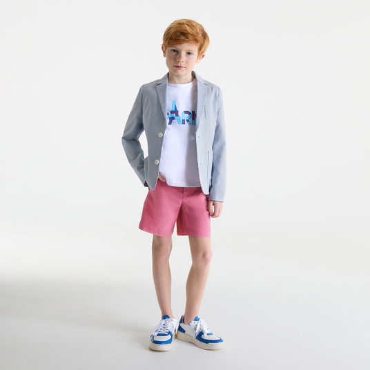 Realizzati in tela, un materiale apprezzato per la sua robustezza, scegli lo stile casual-chic di questi shorts bambino per l'estate. Immancabili nel guardaroba quotidiano e disponibili in colori audaci, abbina questi shorts versatili a una t-shirt, una polo o una camicia per un look casual o preppy.