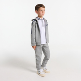 In tessuto felpato piqué e foderati in morbido velluto, i joggers di questa stagione presentano una gamba affusolata per un look urbano. Dotati di vita elasticizzata regolabile dall'interno e fondo gamba a costine che rimane in posizione sulla caviglia, tasche e bordi a costine internamente in vita completano questo modello da abbinare alla felpa con zip coordinata.