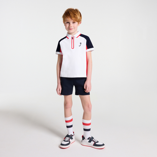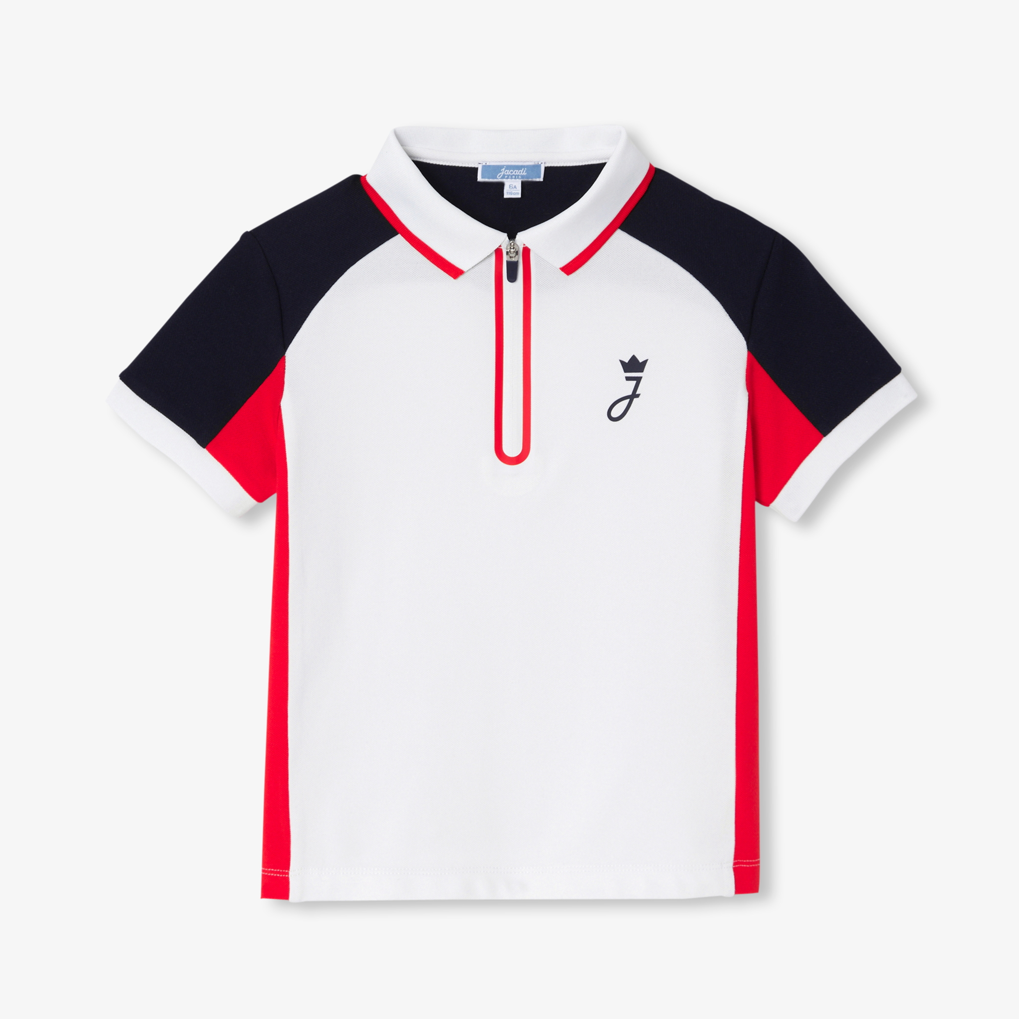 Quest'estate, la polo bambino punta su un look color block ultra contemporaneo. Nei campi sportivi o per l'outfit quotidiano, inserti a contrasto, colletto con bordo a coste e zip in framis modernizzano questo modello leggero, in piqué di cotone con elastan, che si abbinerà a meraviglia a shorts o joggers.