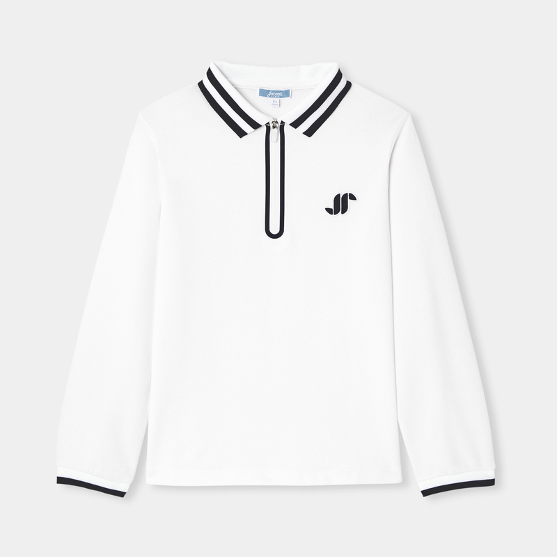 La polo è il più delle volte a maniche corte, chiusa da due, o talvolta da tre bottoni. A Jacadi, la polo bambino è disponibile in colori classici ed eleganti: belle tonalità di blu, dal cielo all’oltremare profondo; passando naturalmente per il bianco, che Jacadi combina con qualche dettaglio colorato e ben scelto per colletto e maniche. Le polo da bambina giocano a reinventare i dettagli, per ispirarsi alla moda. Colletti doppi, deliziosamente arrotondati come petali di un fiore di campo. Per le più piccole, la polo è anche senza maniche e ricamata con dettagli colorati – chi ha detto che un capo base deve essere essenziale? Questa delicatissima e stilosa versione di un grande classico dell’abbigliamento bambino (maschio e femmina) rende la polo uno dei capi emblematici di Jacadi.
