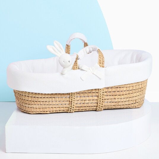 Cesta per neonato in vimini. Rivestimento in cotone e supporto in legno venduti separatamente. - Dimensioni: L 85 x l 44 x H 30 cm. Avvertenze: questo articolo è adatto per un bambino che non sa sedersi da solo, rotolare su se stesso, alzarsi in piedi in appoggio sulle mani e sulle ginocchia. Peso massimo del bambino: 9 kg.