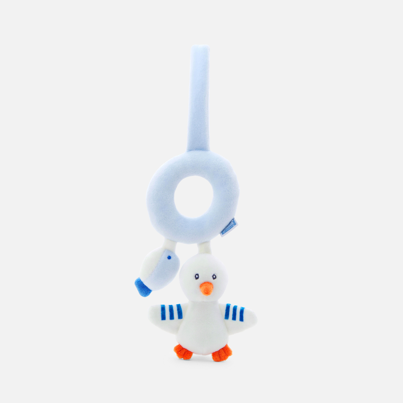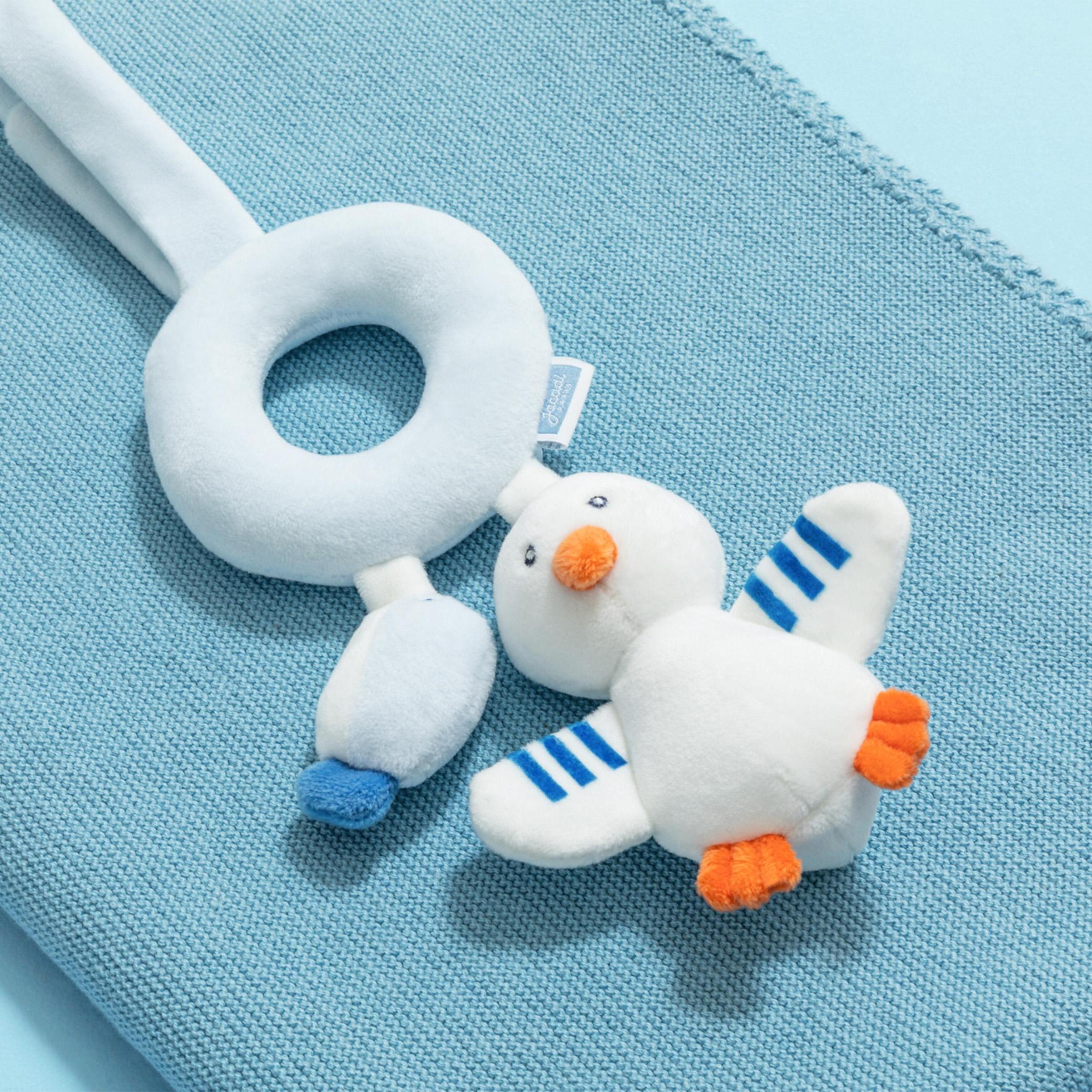Questo morbidissimo sonaglio accompagnerà i più piccoli sin dai primi giorni. Piccolo e facile da afferrare, è stato immaginato per essere fissato al passeggino o al seggiolino auto grazie ai pratichi cinturini a strappo. Arricchito da un morbidissimo gabbiano con un campanellino e da un pesciolino, questo sonaglio susciterà subito l'interesse dei più piccoli. Perfetto per sviluppare la motricità del neonato, le sue dimensioni ridotte consentono di portarlo ovunque con sé.