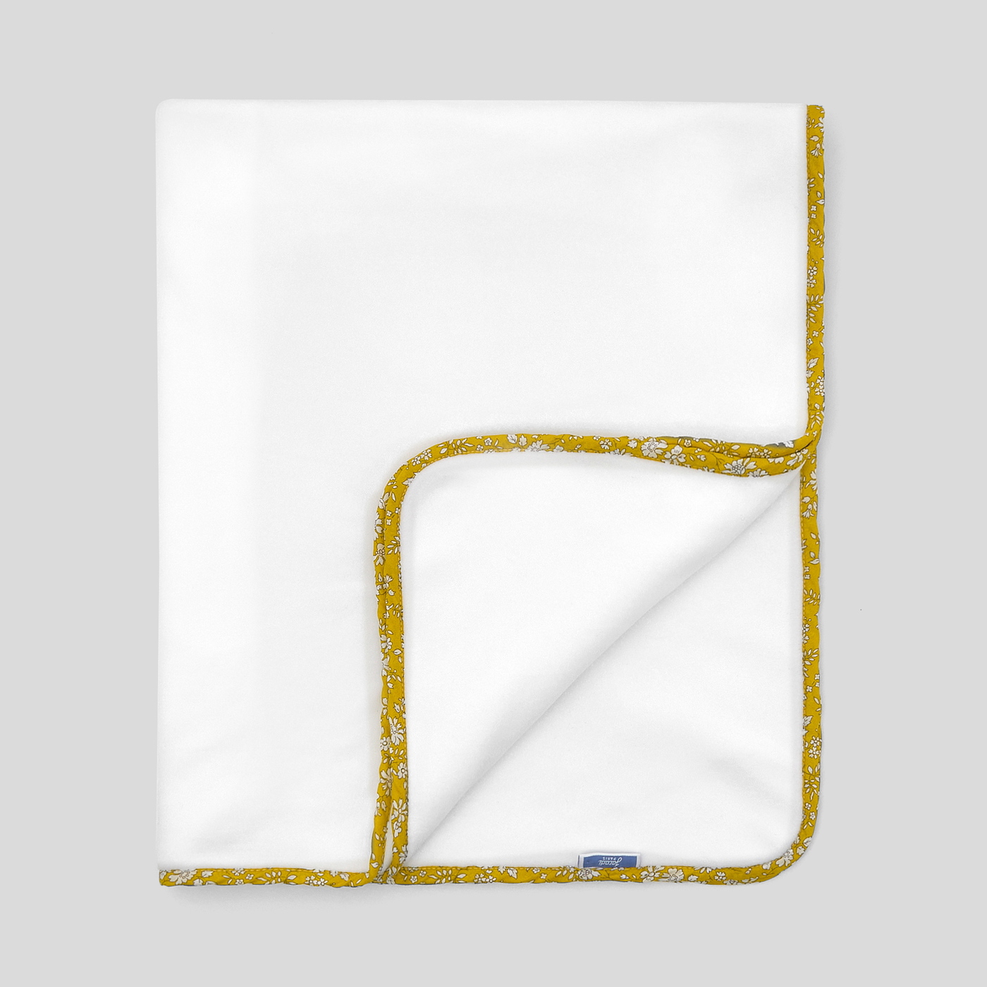 Minimalista ed essenziale, un profilo in tessuto Liberty abbellisce questa incantevole copertina neonato. Ideale in viaggio e per la casa, questa copertina morbida e rassicurante è una bella idea regalo per la nascita di un bambino.