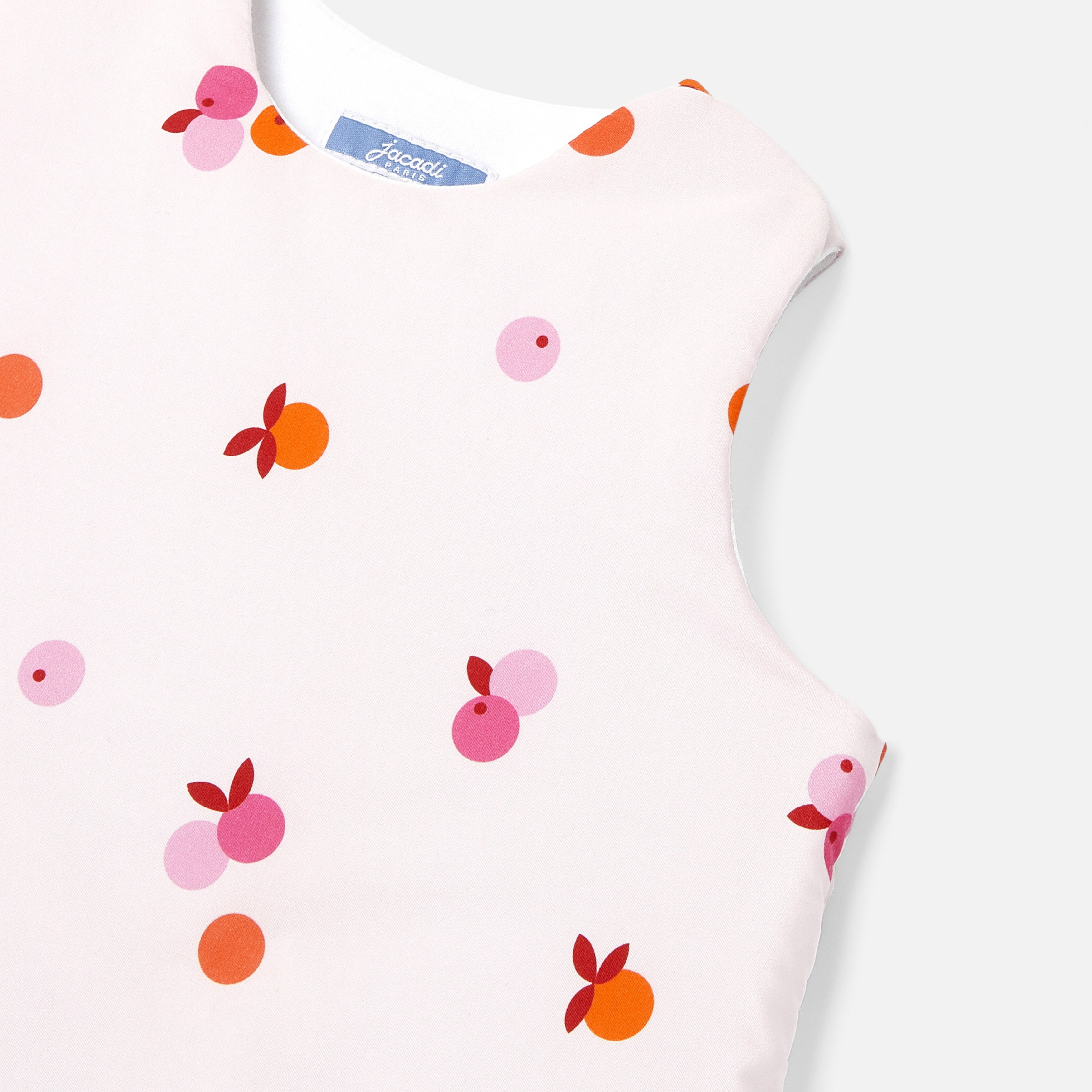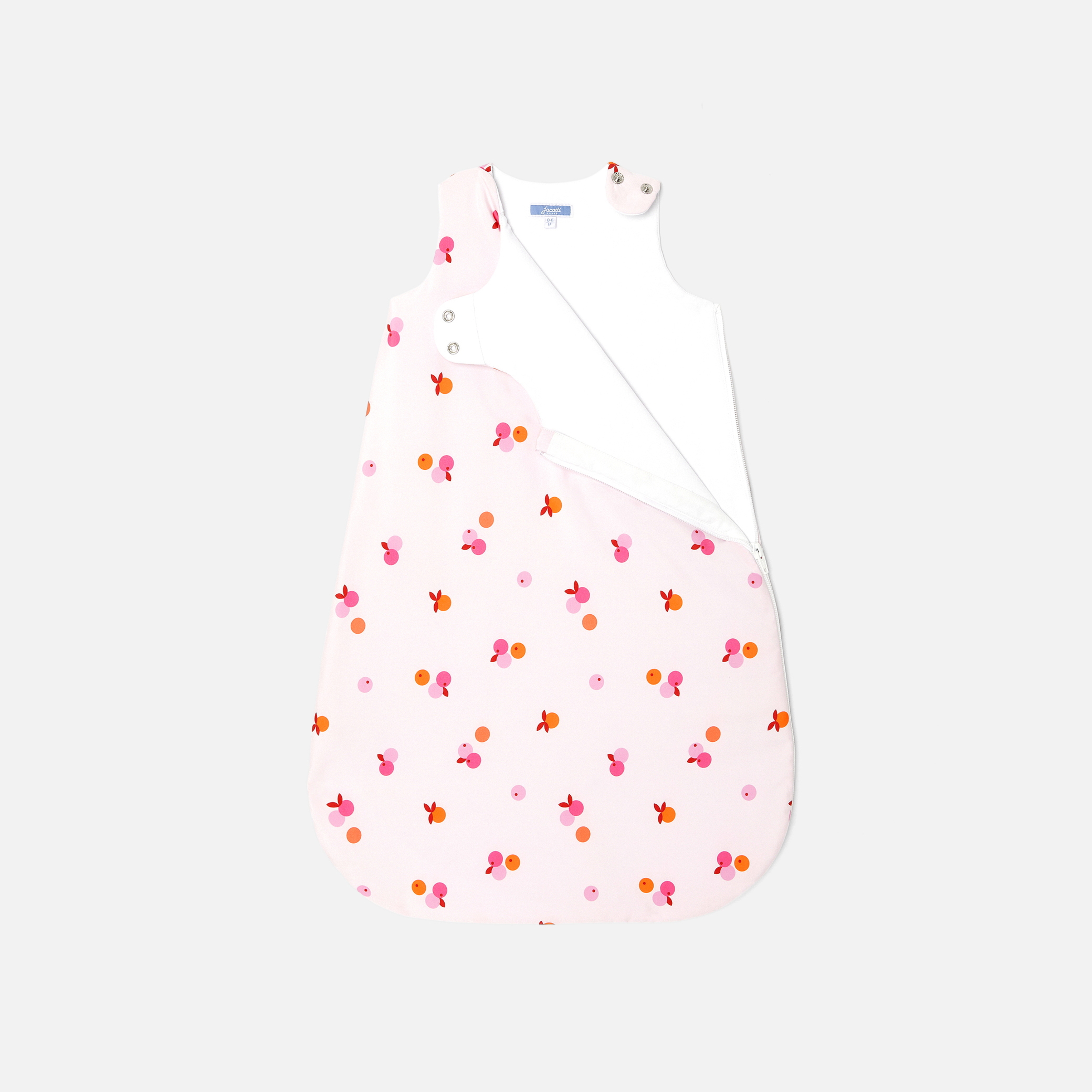 Sacco nanna nascita in morbidissima popeline di cotone dinamizzato da un'esclusiva e golosa stampa Jacadi, fodera in cotone, imbottitura leggera, zip laterale e automatici sulle spalle; Regalo nascita ideale, Popeline di cotone