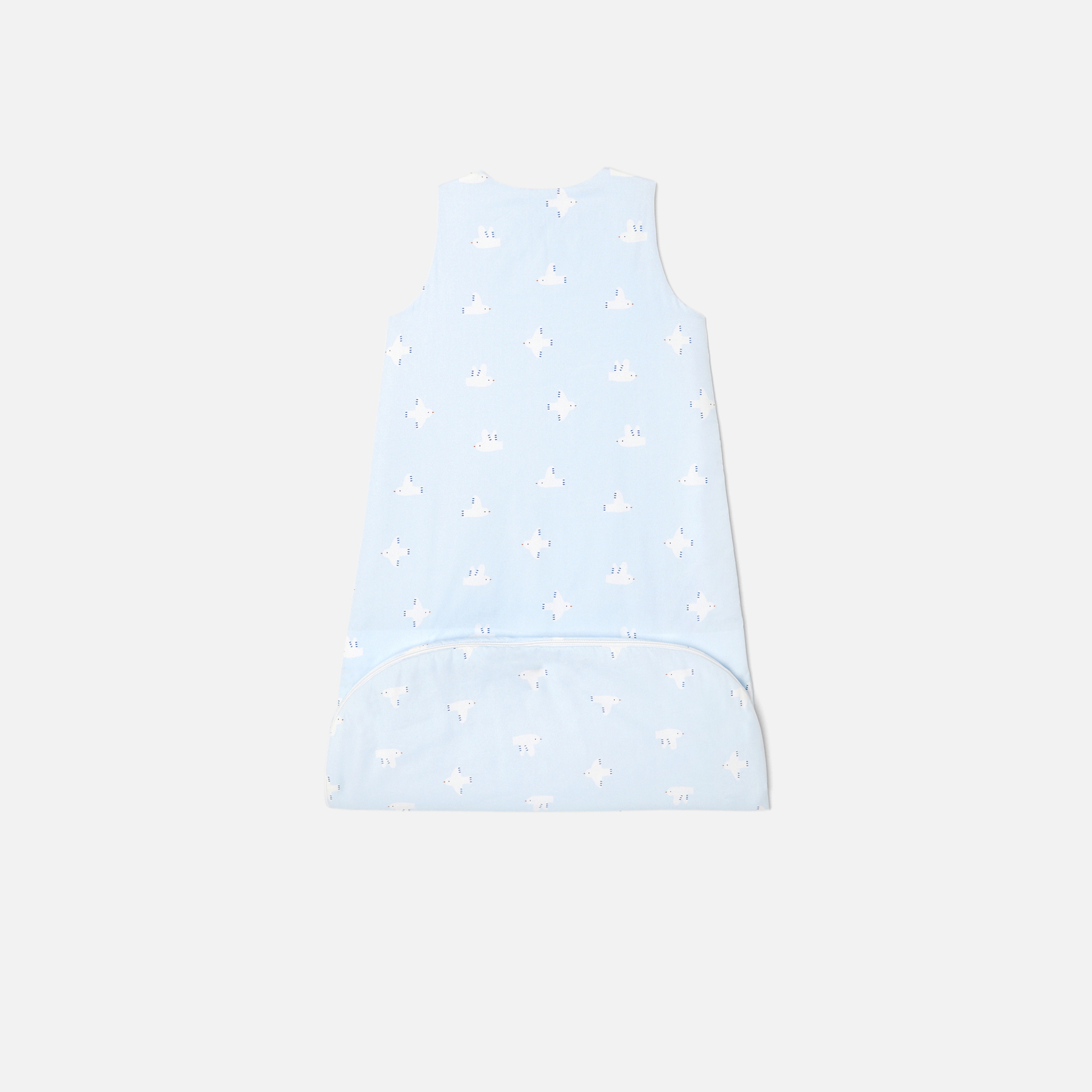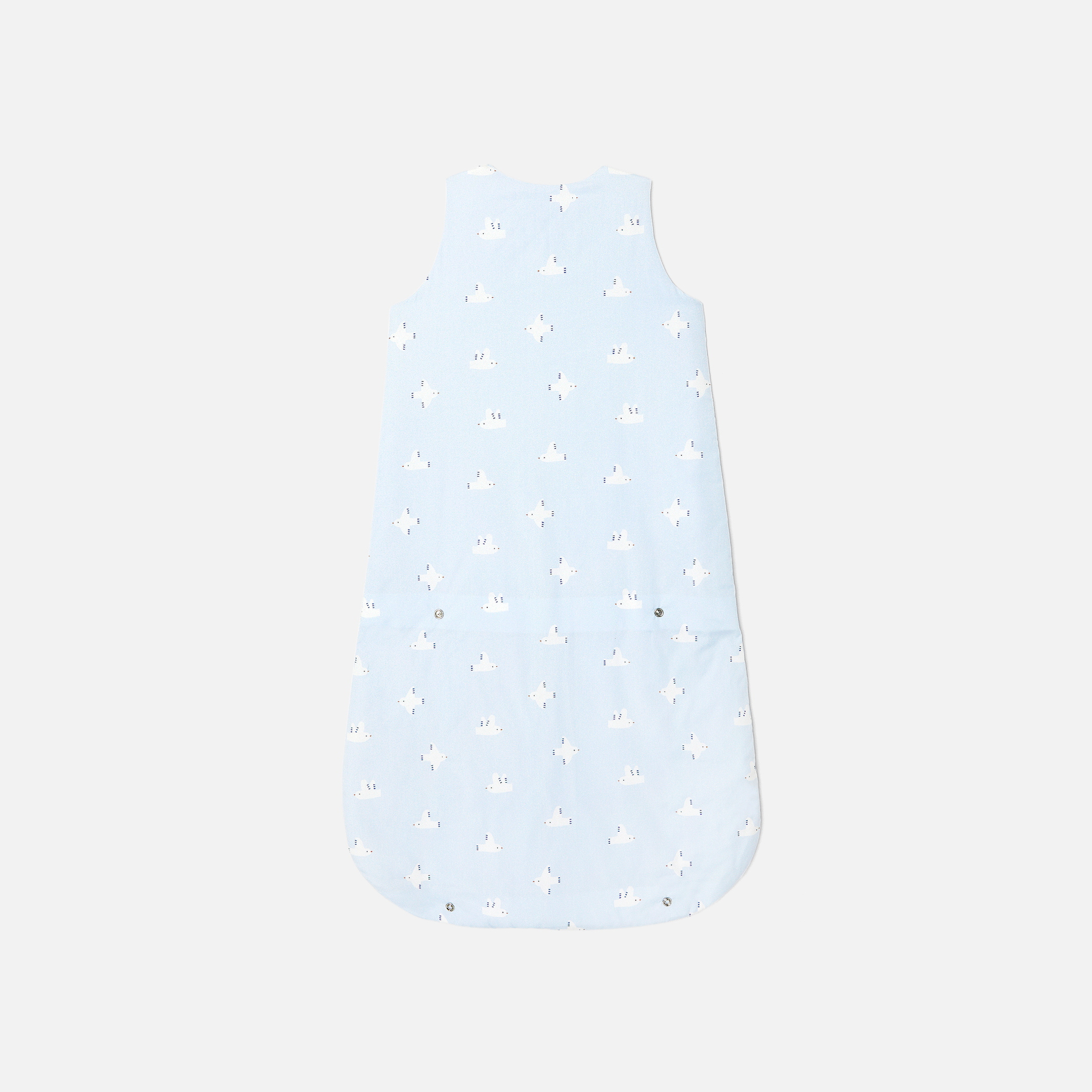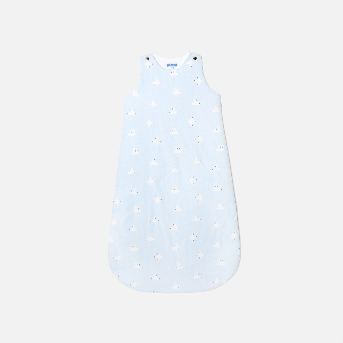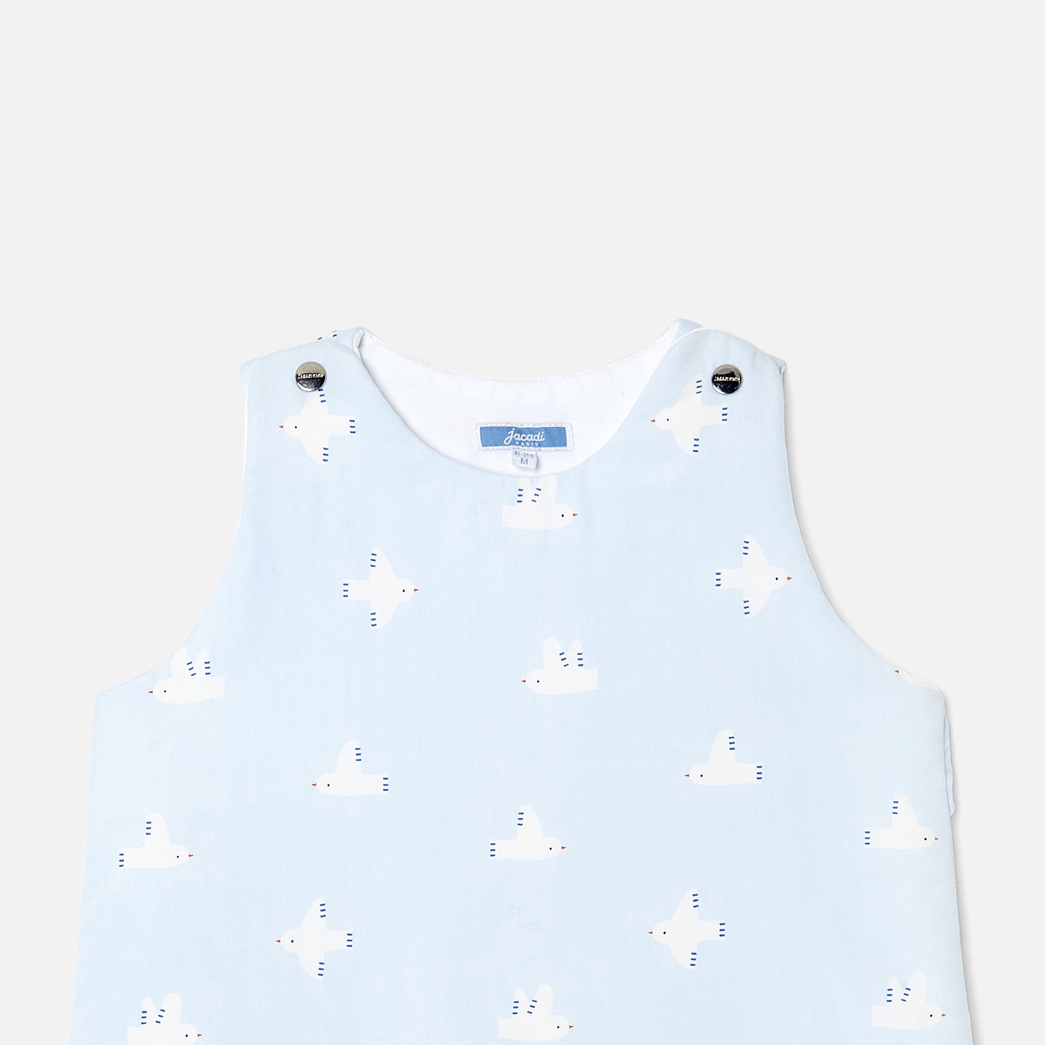 In stile navy con gabbiani che volano su un riposante fondo azzurro, questo sacco nanna evolutivo in morbido cotone è leggermente imbottito; zip laterale, automatici sulle spalle e sul retro per regolare la lunghezza.