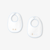 Questa coppia di bavaglini in morbida spugna accompagnerà con tenerezza le prime pappe del bambino. Caratterizzati da uno inserto in popeline a righe, uno presenta adorabili orsetti all'ora della merenda, mentre l'altro presenta un orsetto e una piccola scritta ricamata. Facili da chiudere con un bottone automatico, da infilare nella borsa fasciatoio e da tenere a portata di mano per l'uso quotidiano, sono perfetti per comporre il primo corredo del bambino.