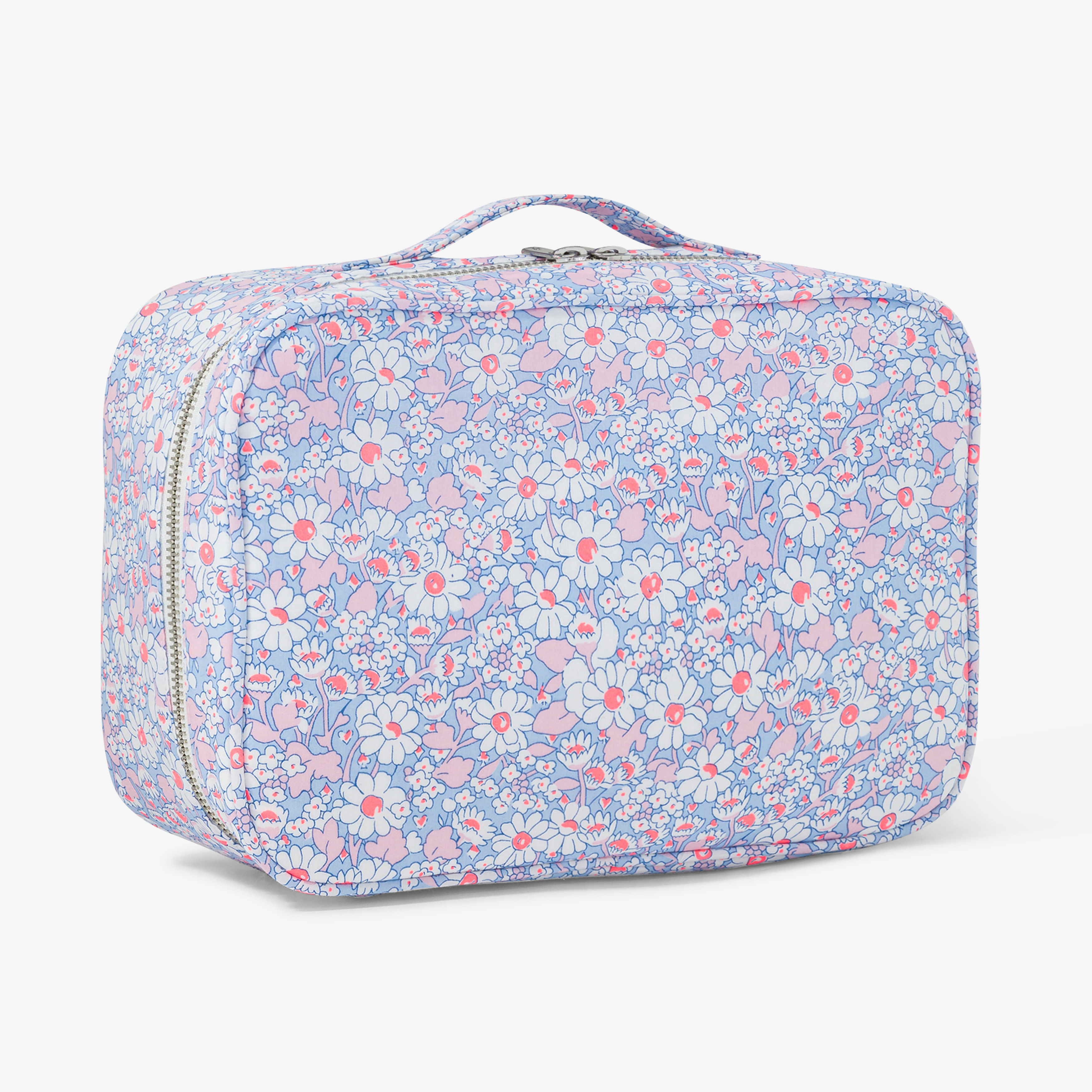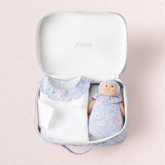 La valigetta si veste di un nuovo tessuto Liberty per questa nuova stagione. Immaginata come un'elegante cofanetto che può contenere un regalo di nascita o prodotti per la cura o accessori per capelli, tua figlia la utilizzerà anche come giocattolo per contenere le sue bambole Joséphine. Oggetto elegante e decorativo, questa valigetta con ricchi motivi floreali non può mancare nella cameretta della tua piccola.