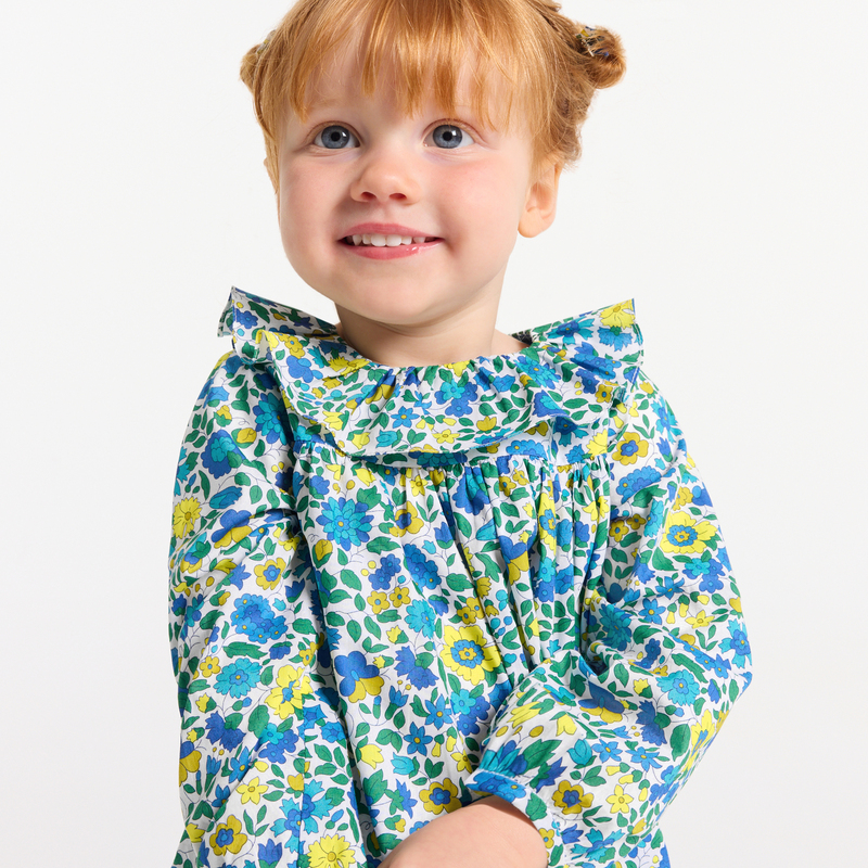 I pattern del tessuto Liberty Jacadi sono quasi poesie in sé. Prendete il tempo di dettagliare i diversi motivi e le loro variazioni di colore: a volte bastano piccole sfumature per creare un mondo a sé stante. Un universo ludico e poetico, che Jacadi fa suo e vi offre, sul sito abiti da cerimonia per bambine Liberty, abiti estivi Liberty per bambine, gonne Liberty per bambine; ma anche pantaloncini per ragazze e ragazzi in tessuto Liberty, o per un matrimonio o un'occasione speciale, in un papillon Liberty, in un cerchietto per bambine delicatamente fiorito, o sul bavero di una camicia stile Liberty per ragazzi.