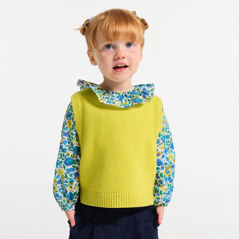Dai maglioni con messaggi ai maglioni sobri a punto riso, passando per i nostri graziosi modelli con colletto Claudine stampato Liberty, nulla manca nella nostra collezione per rendere la tua bambina la più bella. E perché non un maglione con motivi floreali adatto per una gita nella natura? Jacadi offre anche una vasta collezione di cardigan e gilet, da abbinare a mille e una tenute.