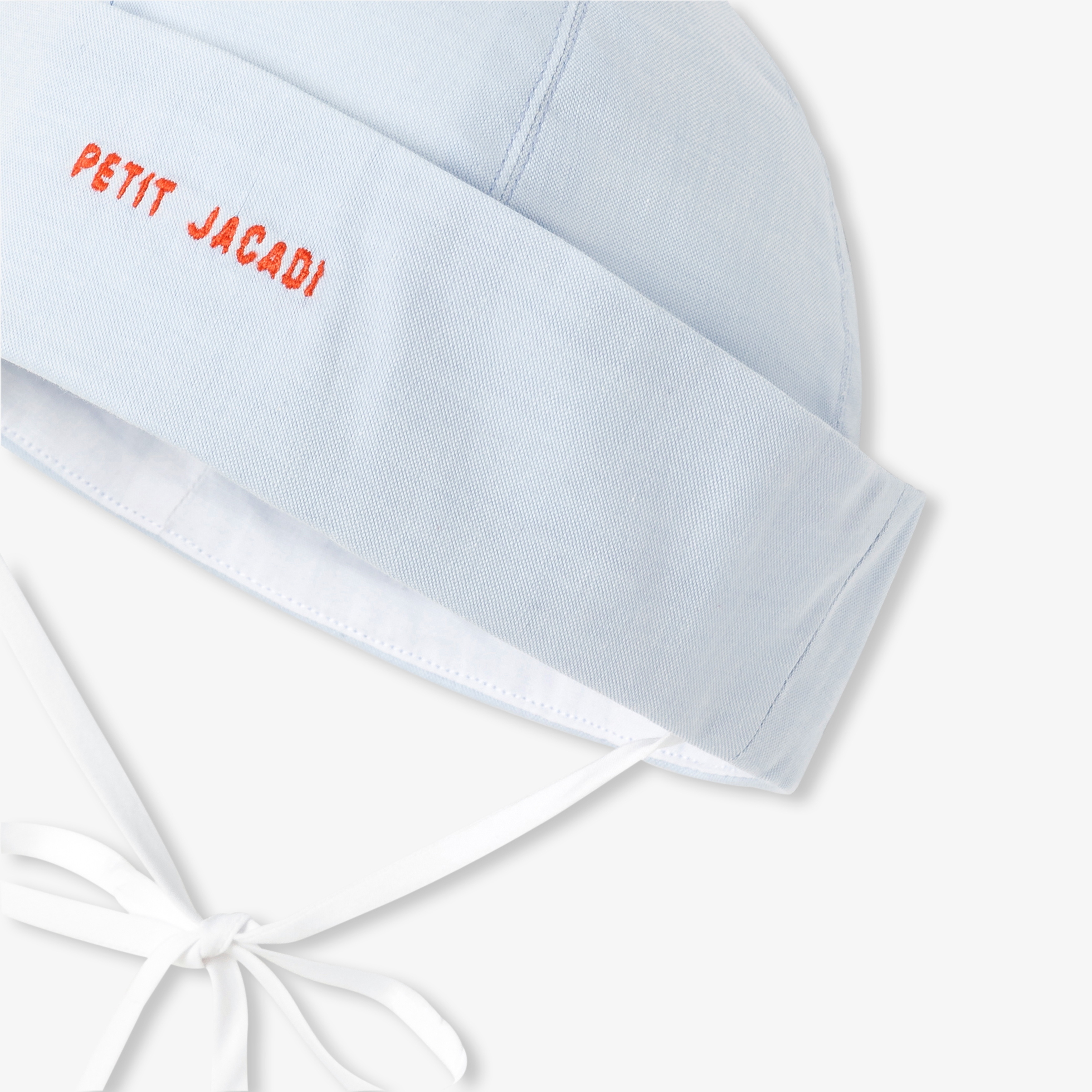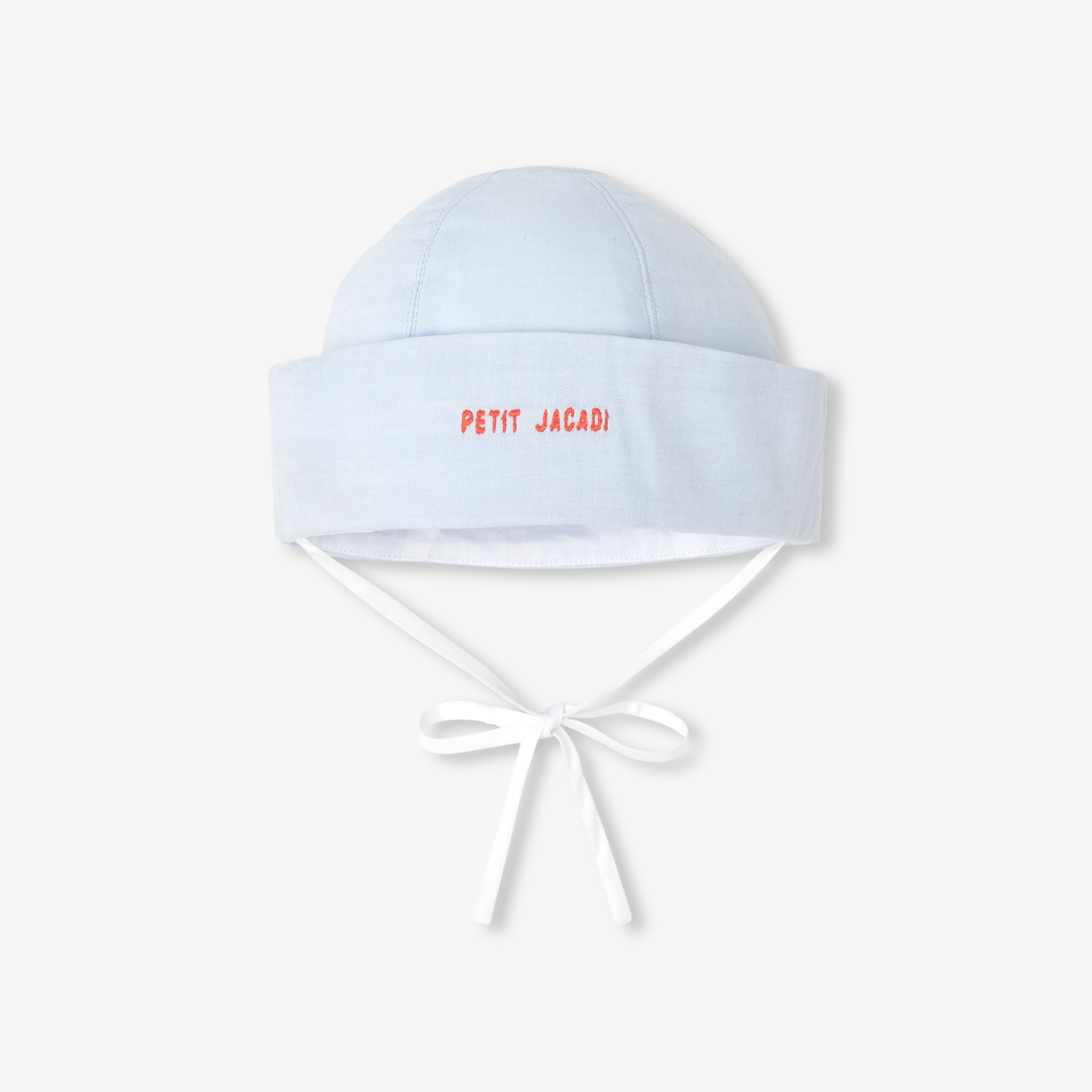 Un must-have del guardaroba estivo, questo cappellino bimbo da marinaio lo accompagnerà durante la sua prima estate. Realizzato in cotone Oxford, con laccetti da annodare, ricamo fluo sul risvolto e fodera in voile di cotone, questo modello è ricco di fascino e autenticità.