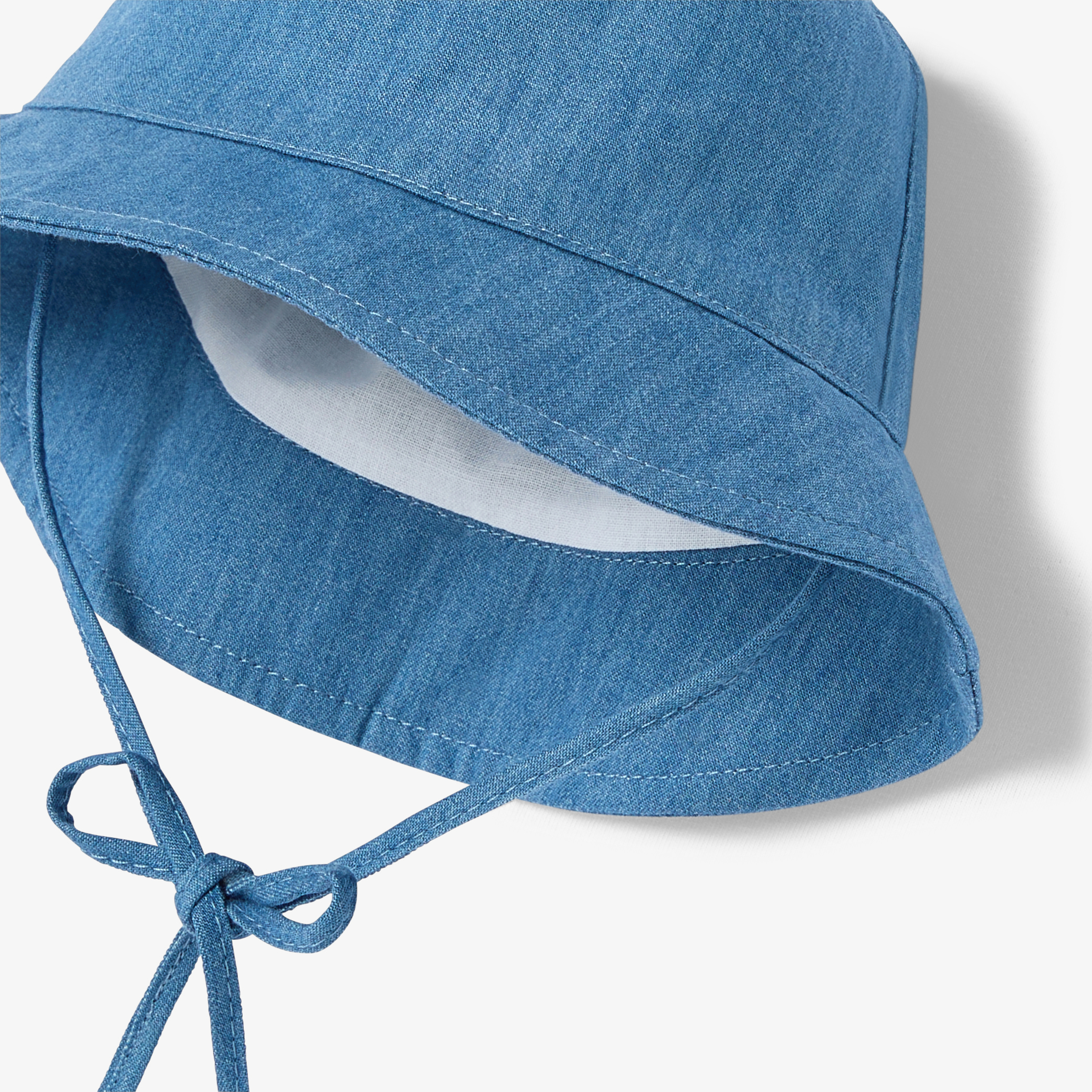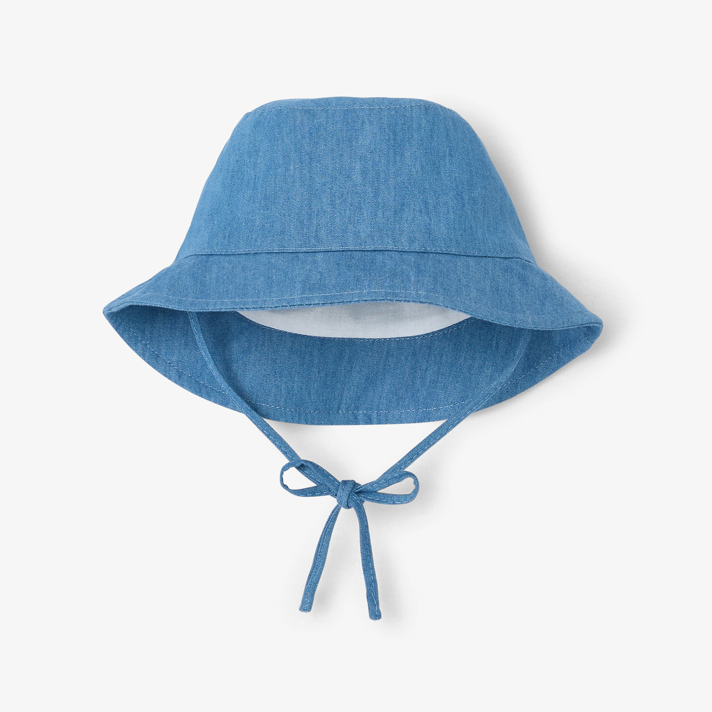 Questa stagione, il cappellino neonato prende la forma di un cappello da pescatore in denim per un look più urban. Per le passeggiate o le prime vacanze, questo cappellino non può mancare nella borsa per il cambio o in valigia e garantisce una buona protezione dai raggi del sole.