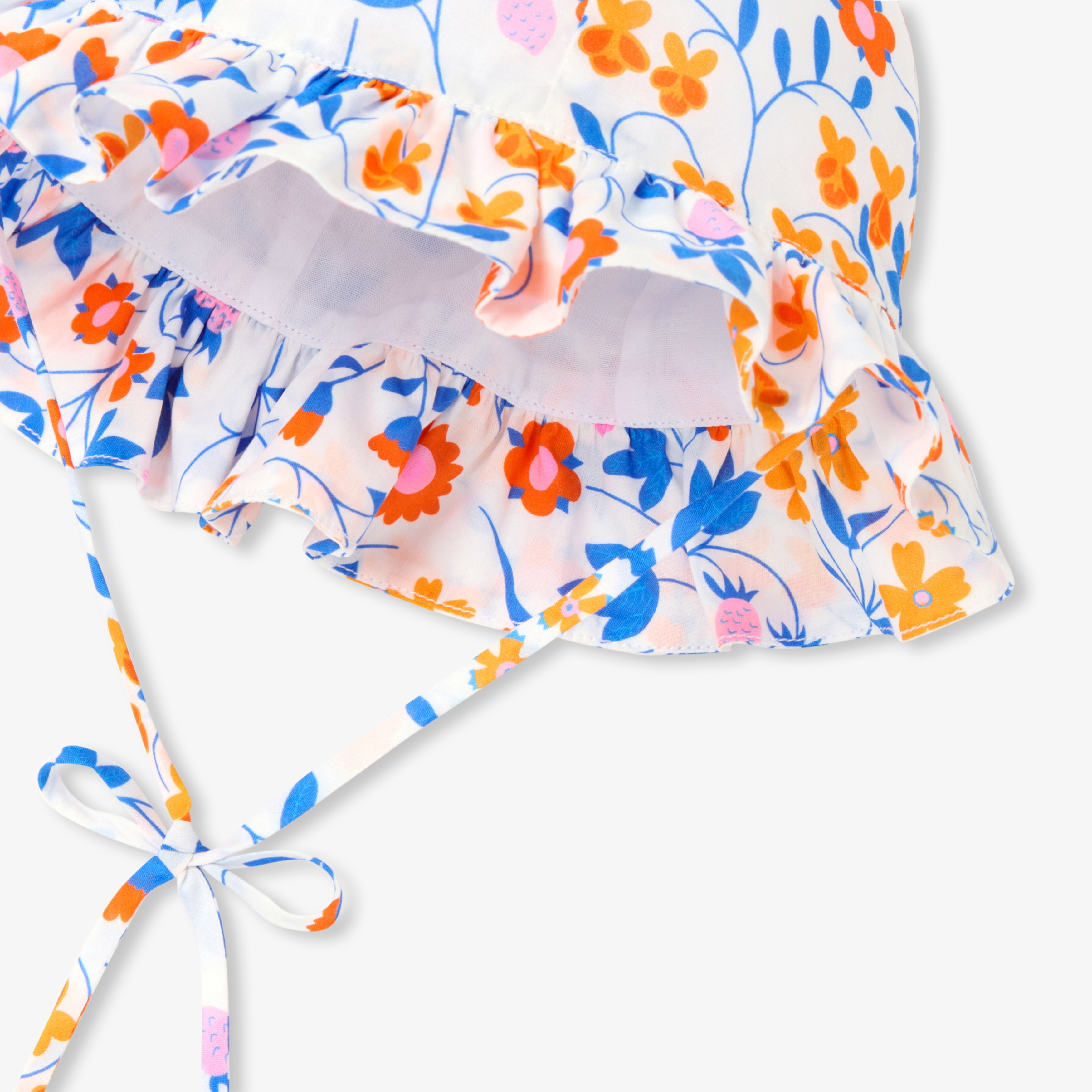 Le prime passeggiate e vacanze della tua bimba saranno eleganti e floreali con questo delizioso cappello in tessuto Liberty. Questo tessuto estivo aggiungerà un tocco di originalità e freschezza al look della bambina e si abbinerà perfettamente ai capi in tessuto Liberty coordinati.