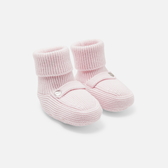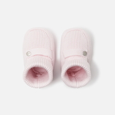 Accogli la tua bimba offrendole la morbidezza e il calore di queste eleganti scarpine. In cotone biologico e facili da infilare, abbinale a un berretto per proteggere la tua bimba sin dai primi giorni.