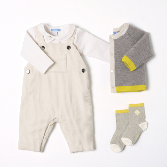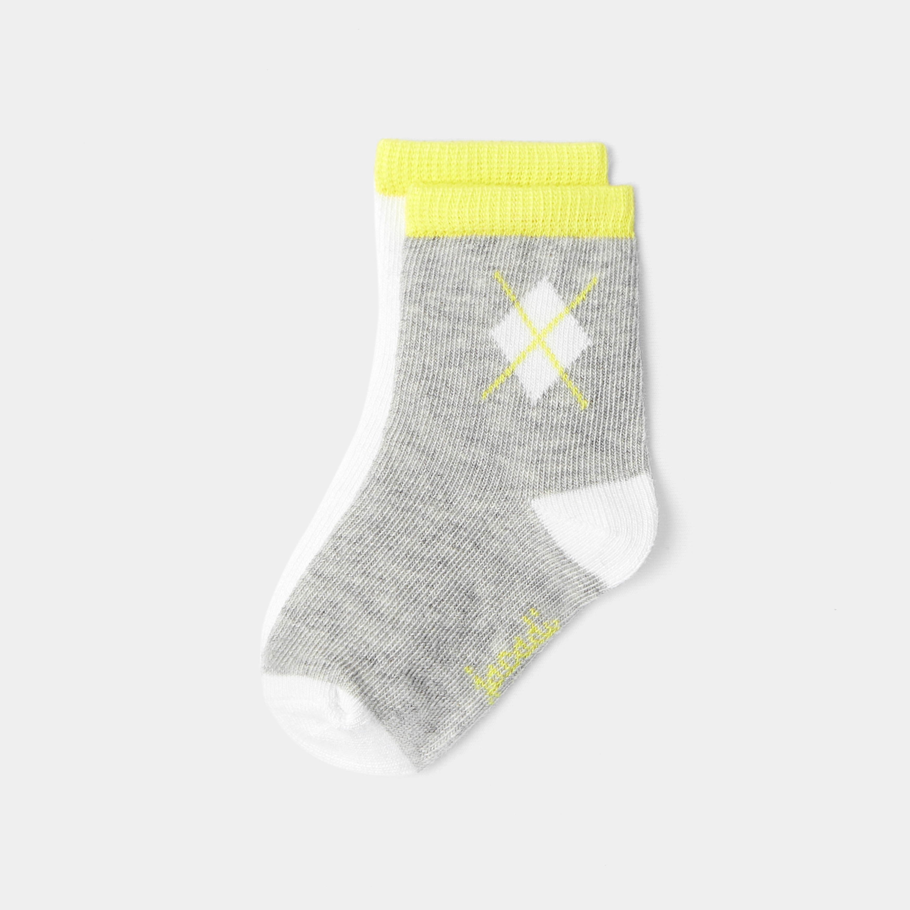 Coordinati alla collezione di abbigliamento, rombi e cagnolini dinamizzano questi incantevoli calzini bimbo. Facili da infilare, riscalderanno l'outfit autunnale.