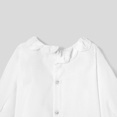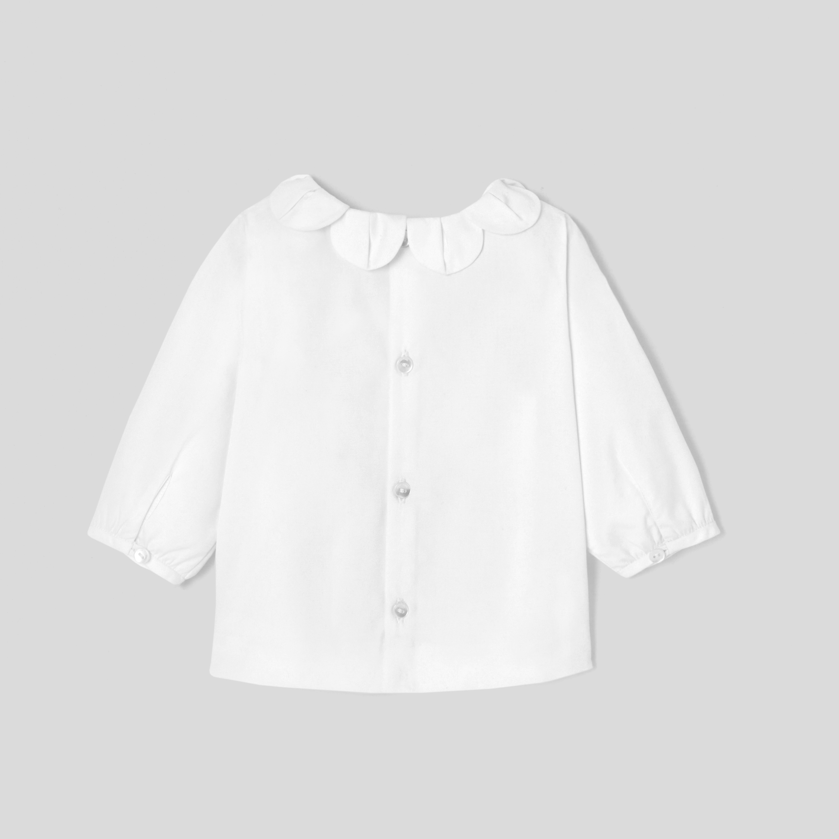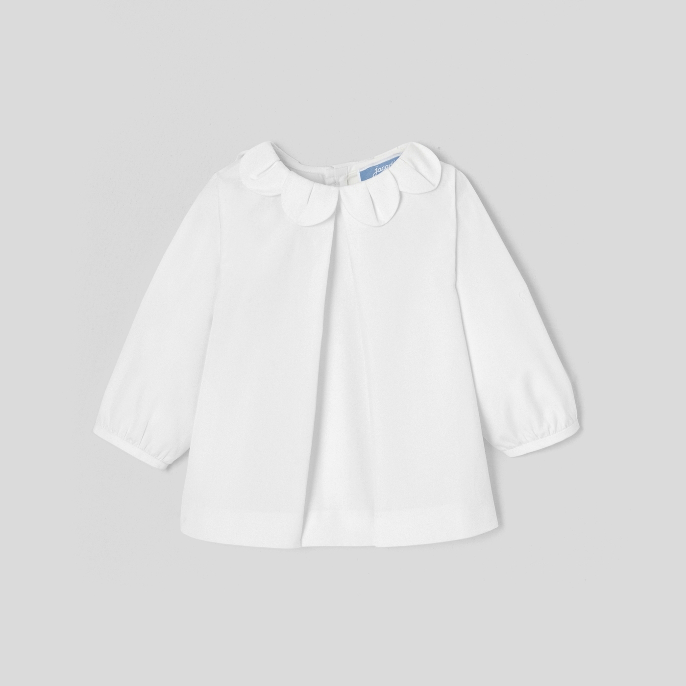 In cotone biologico, colletto a petalo e fondo manica con elastico strutturano questa blusa bimba dall'eleganza senza tempo. Abbinata a una salopette in jeans per l'outfit quotidiano, accompagnerà le bimbe con eleganza per tutta la stagione.