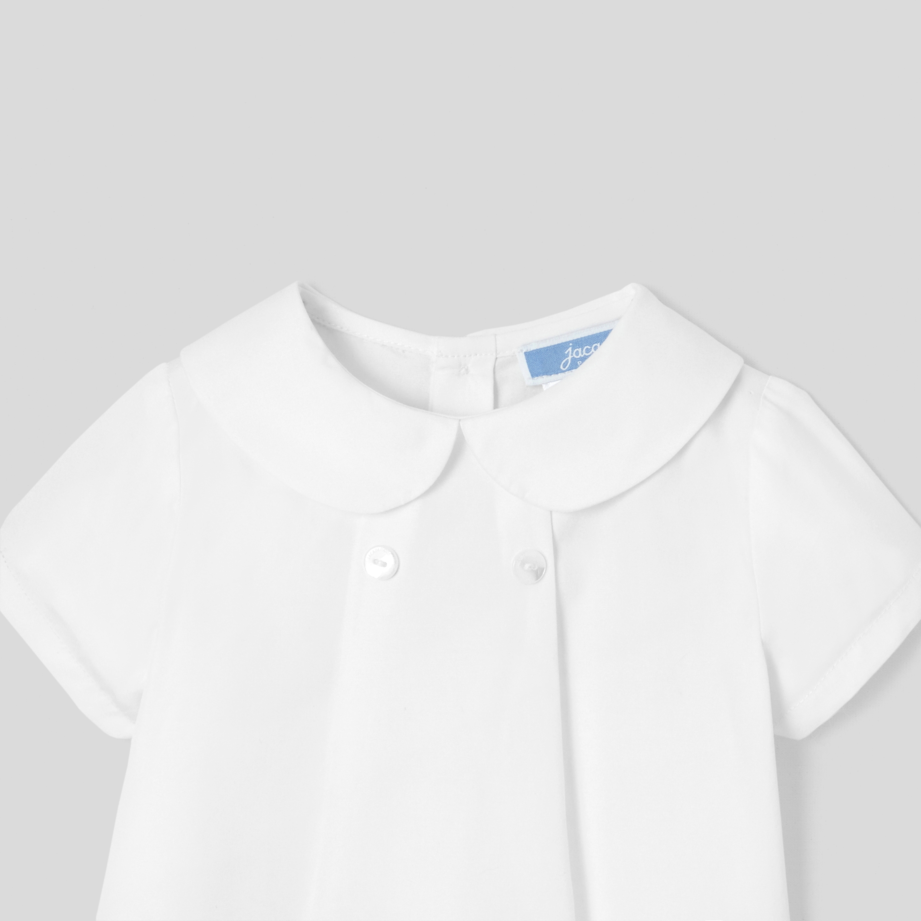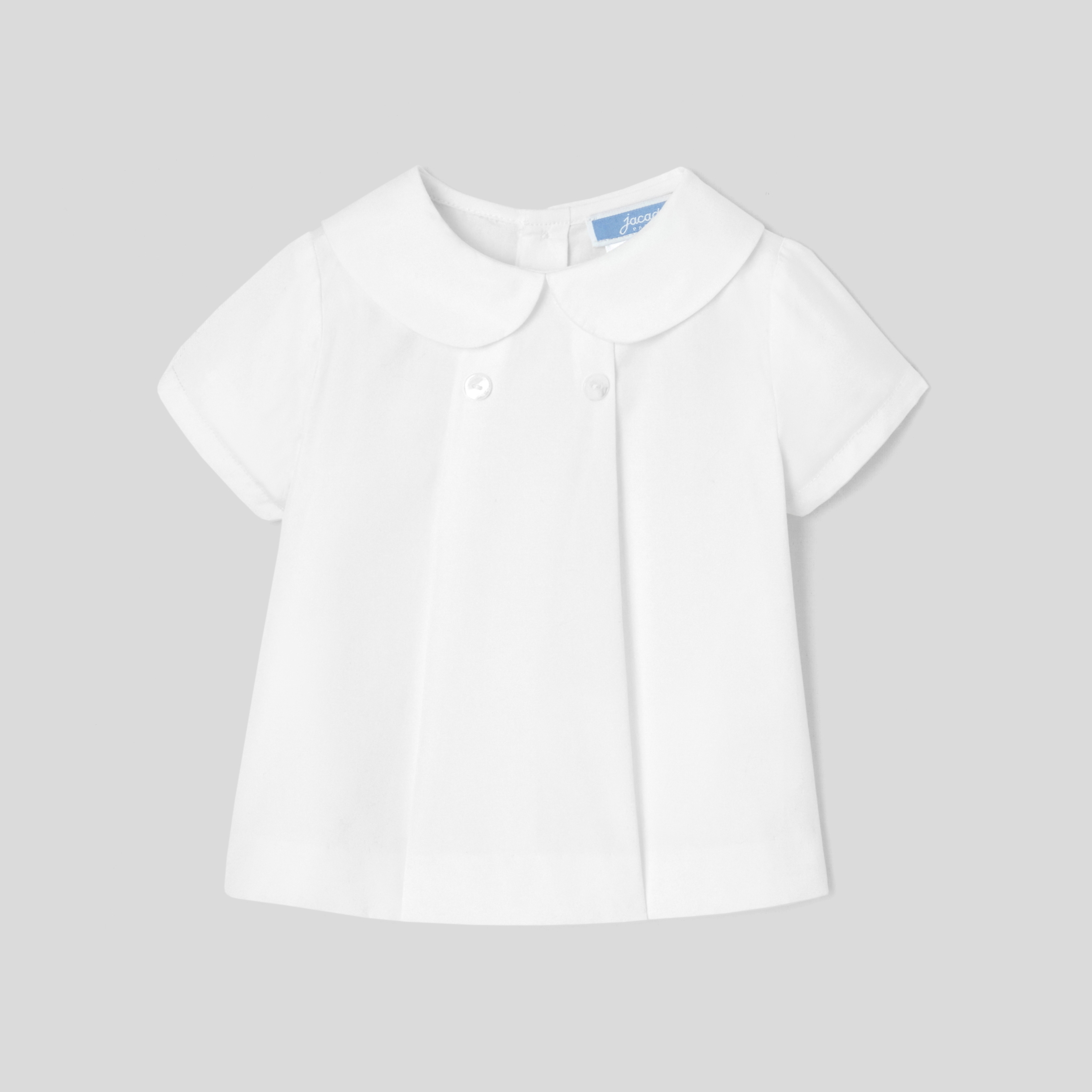 Un ritorno dalle vacanze all'insegna dell'eleganza con questa incantevole camicia bimbo. In popeline di cotone biologico, colletto, pieghe e bottoni decorativi in madreperla completano questo modello dall'eleganza essenziale che potrà essere abbinato a un paio di jeans e a un cardigan colorato della stessa collezione.